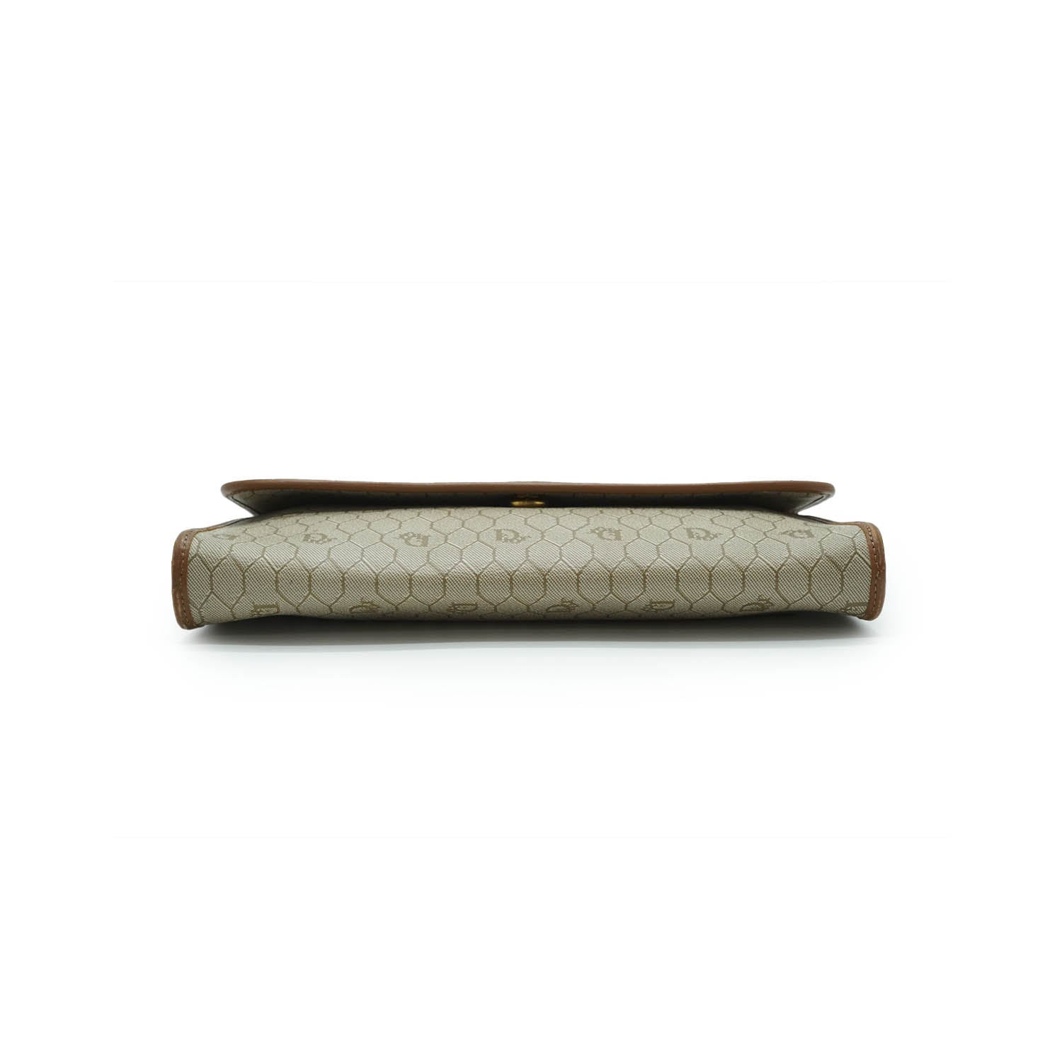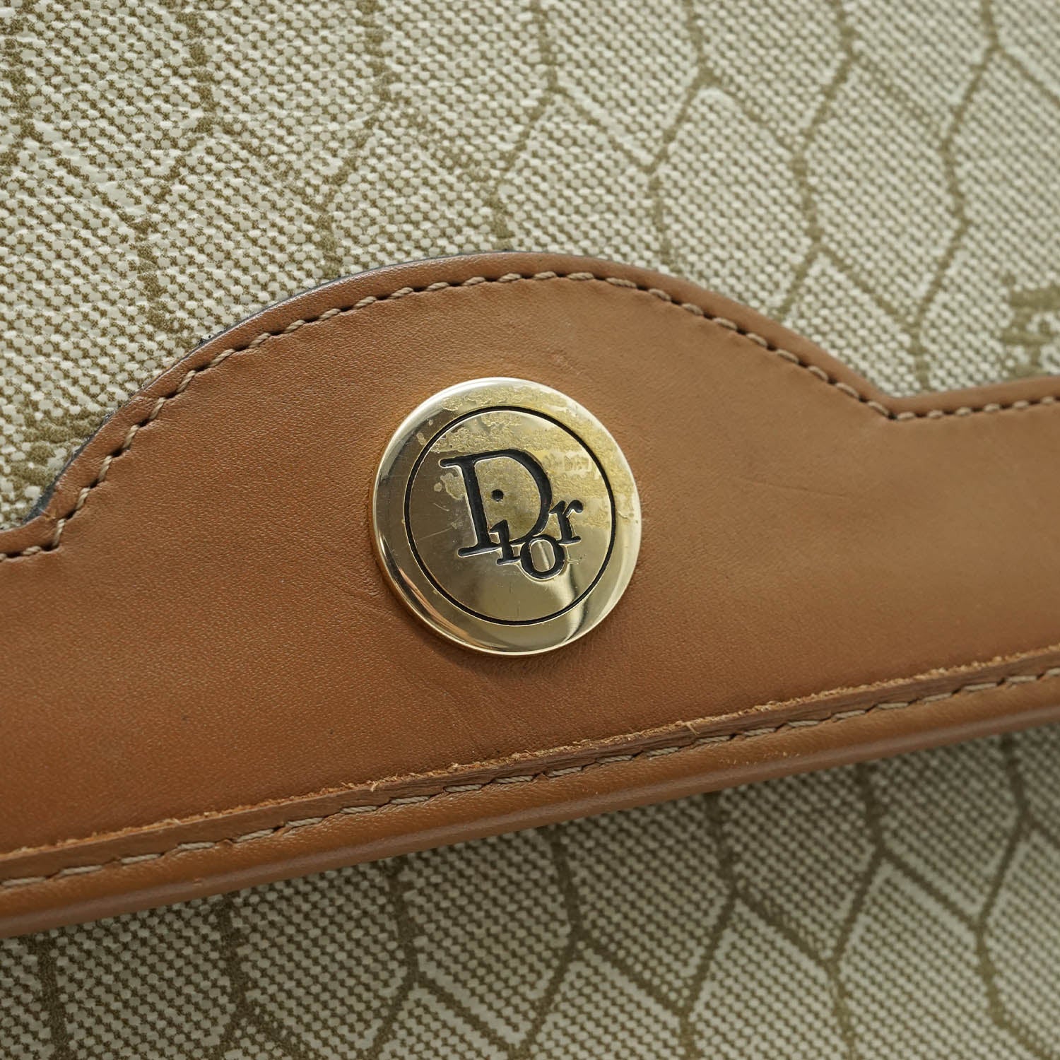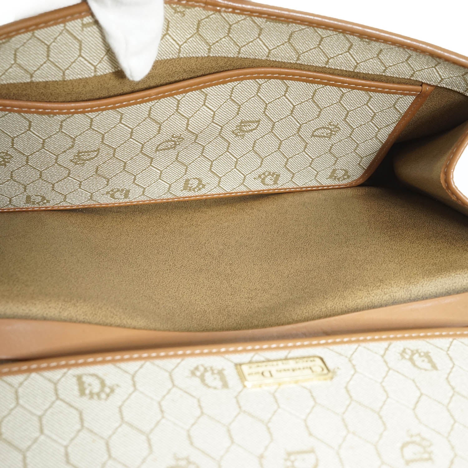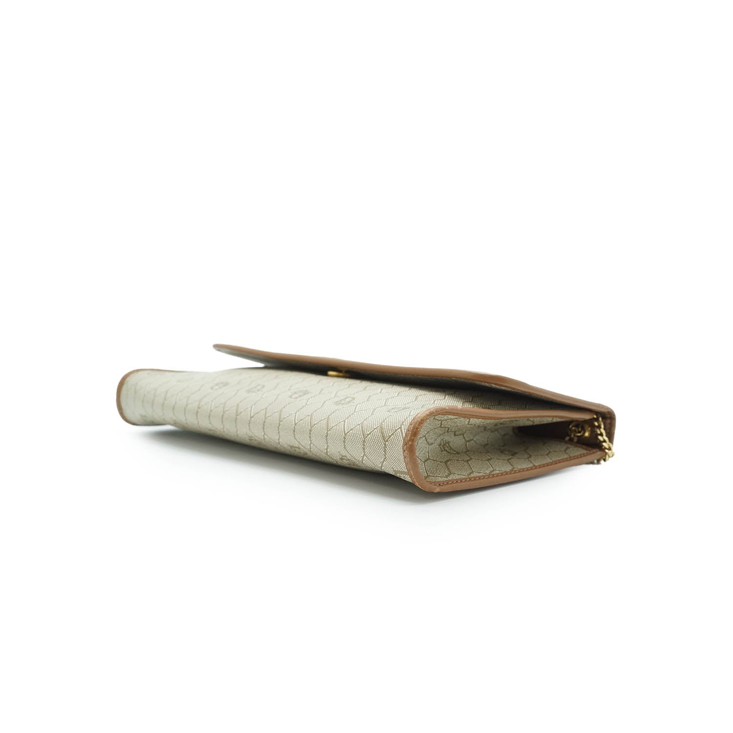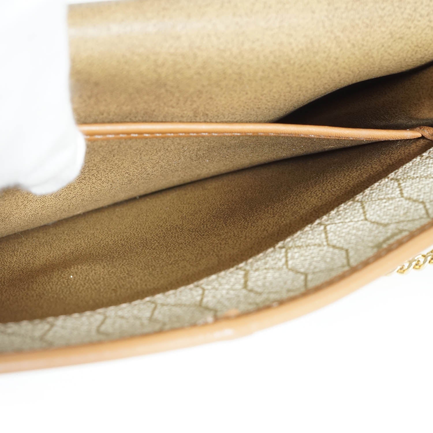 Honeycomb Chain Shoulder Bag Brown Canvas, Leather