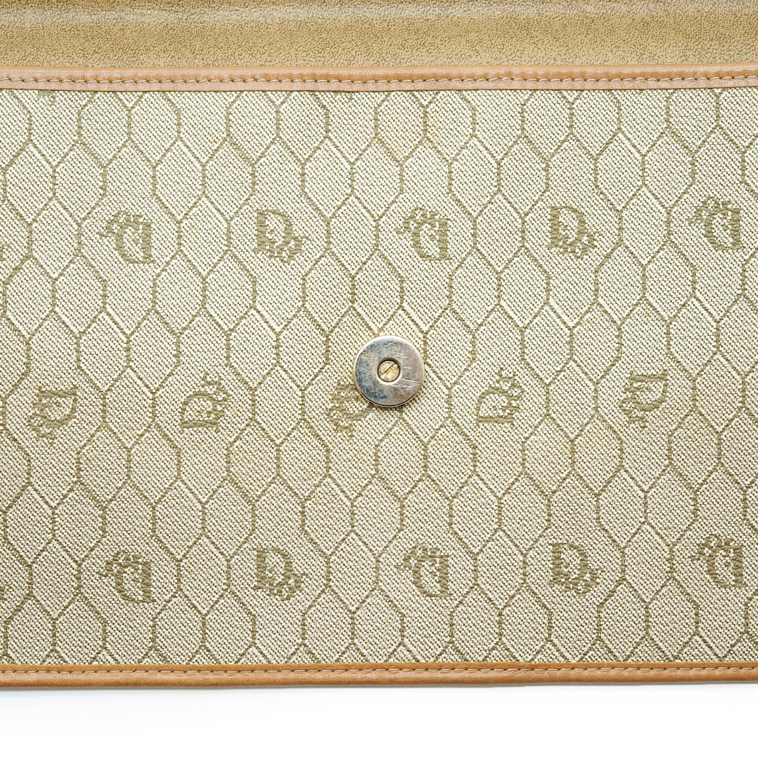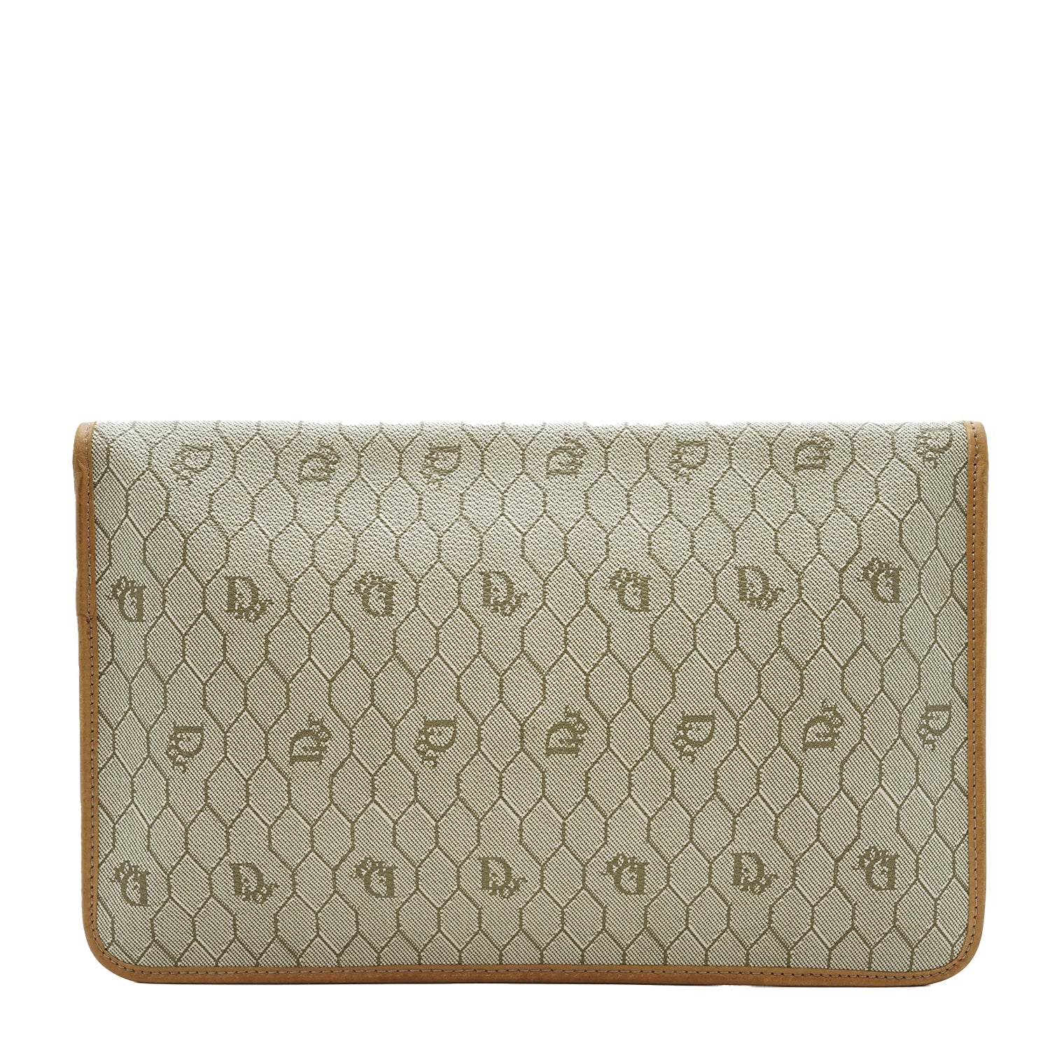 Honeycomb Clutch Bag Brown Canvas, Leather