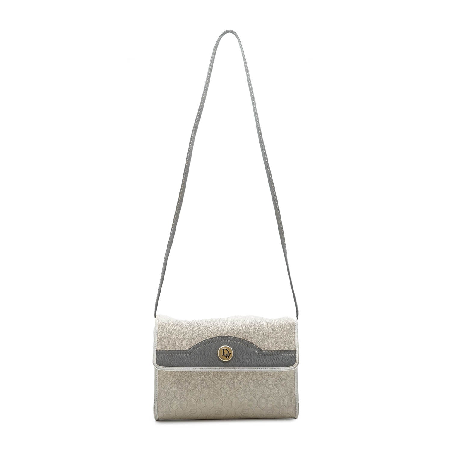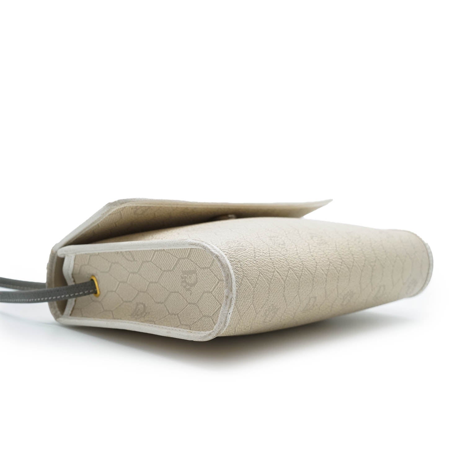 Honeycomb Crossbody Bag Cream White Canvas, Leather