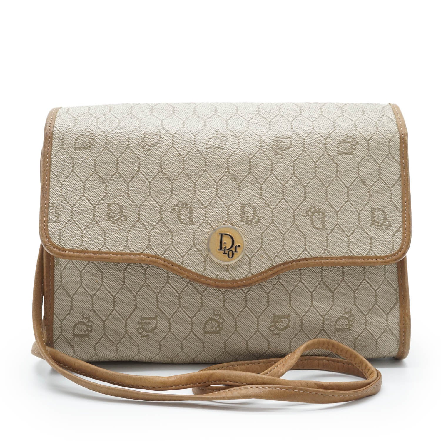 Honeycomb Crossbody Bag Brown Canvas, Leather