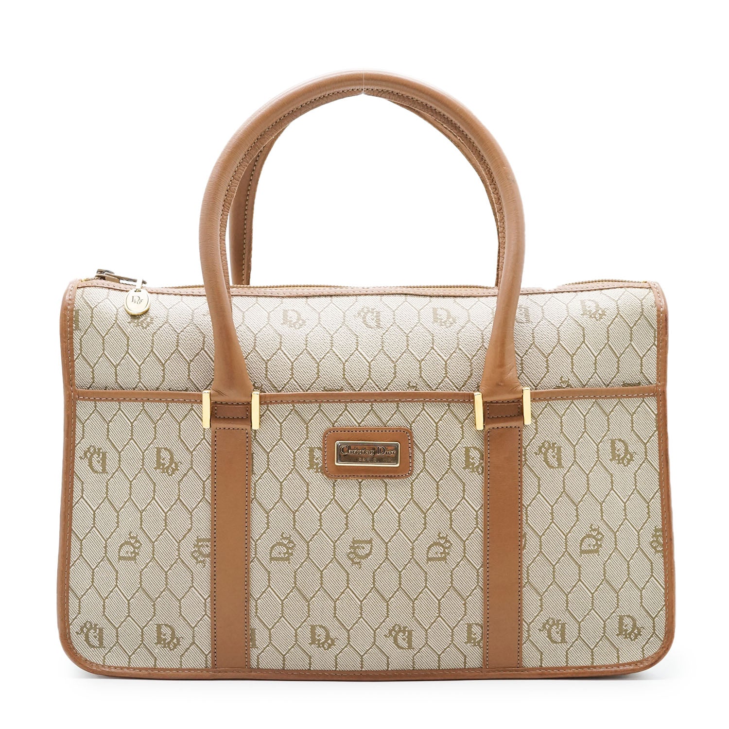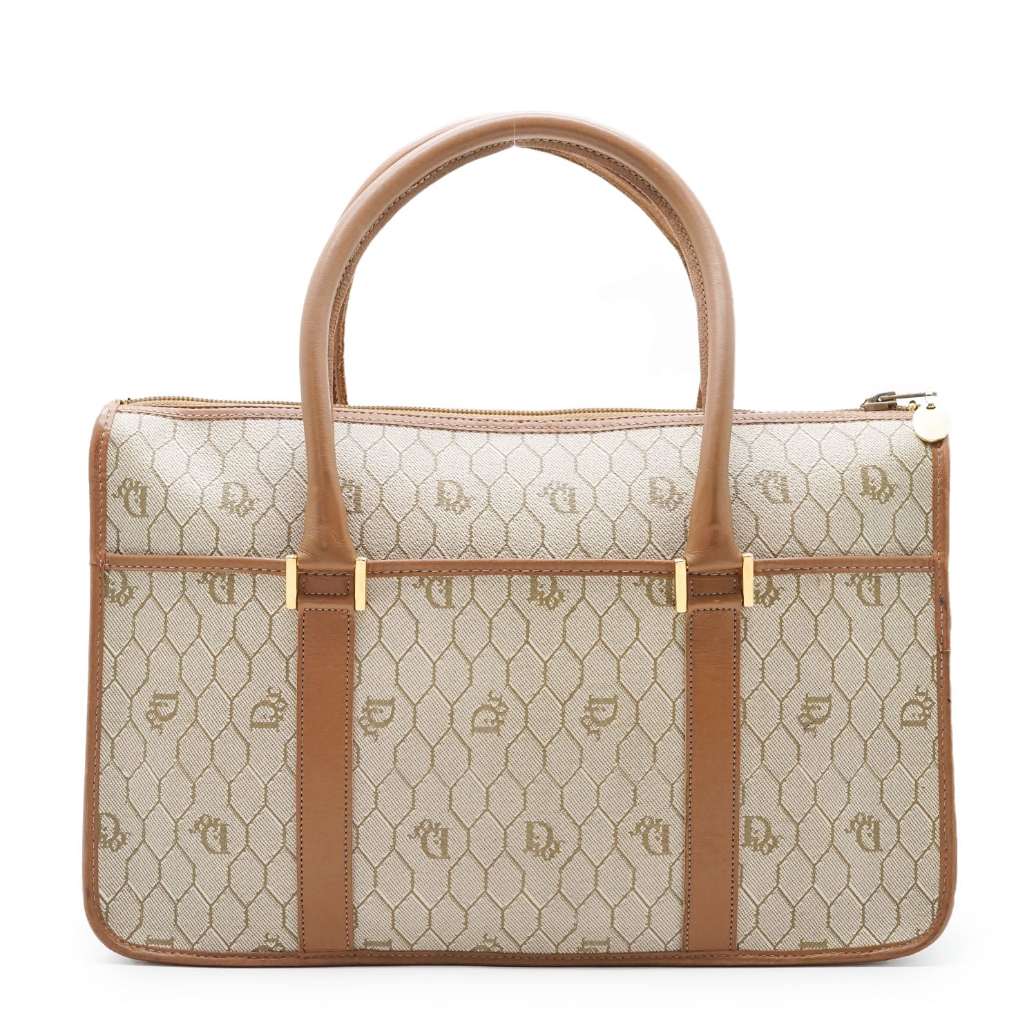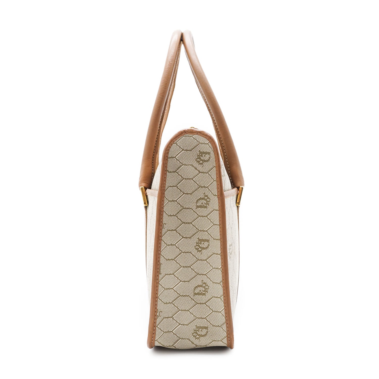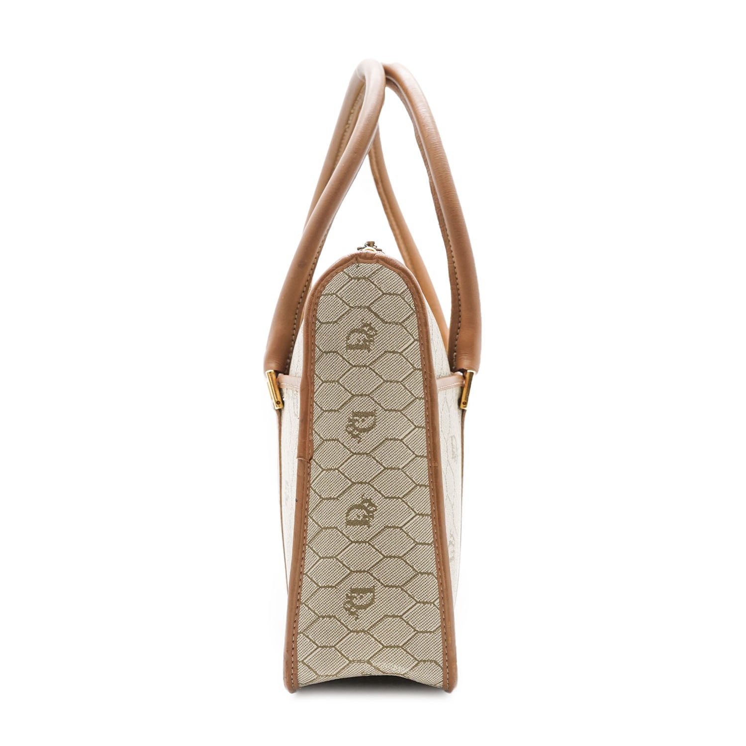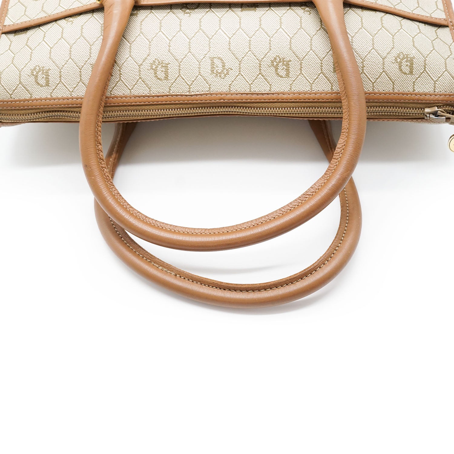 Honeycomb Top Handle Bag Brown Canvas, Leather