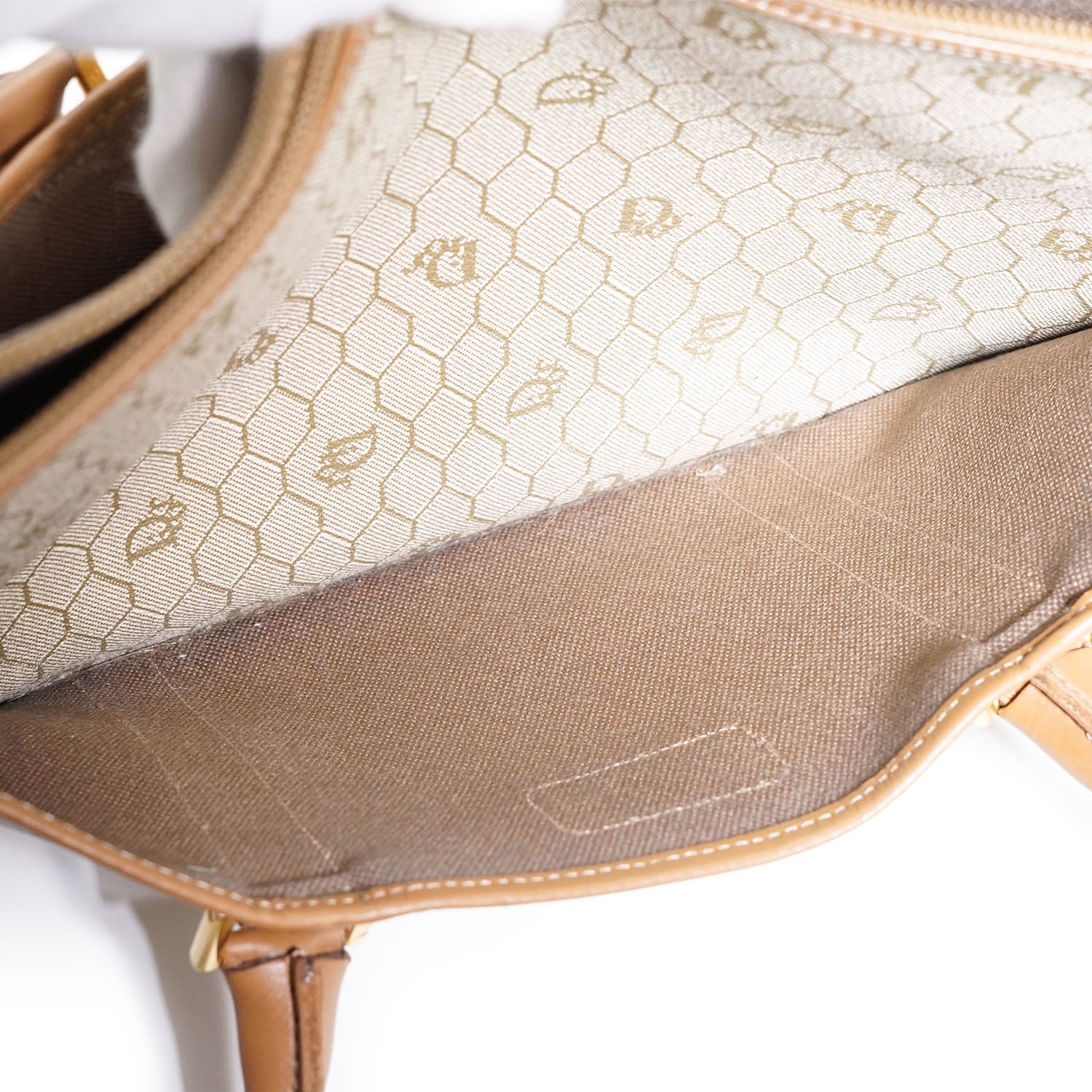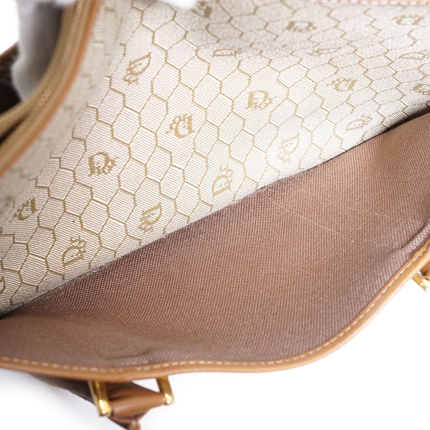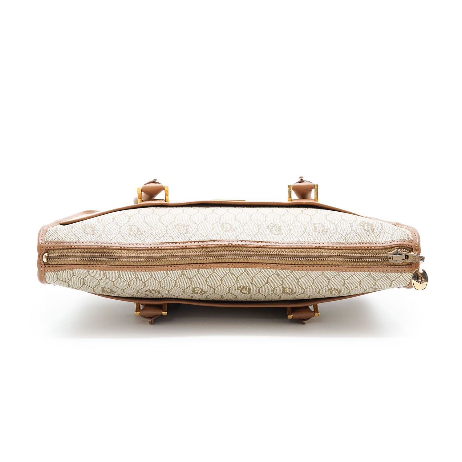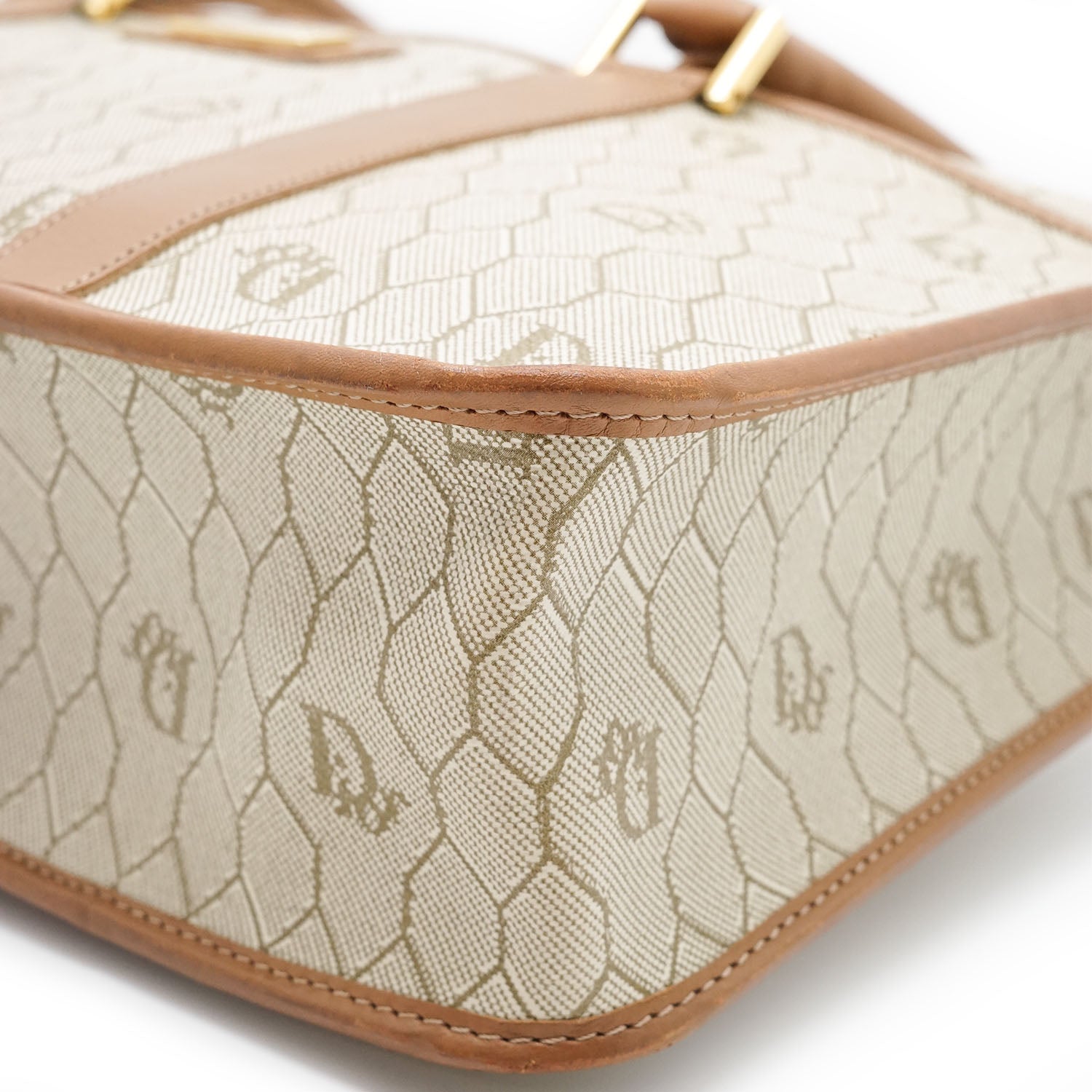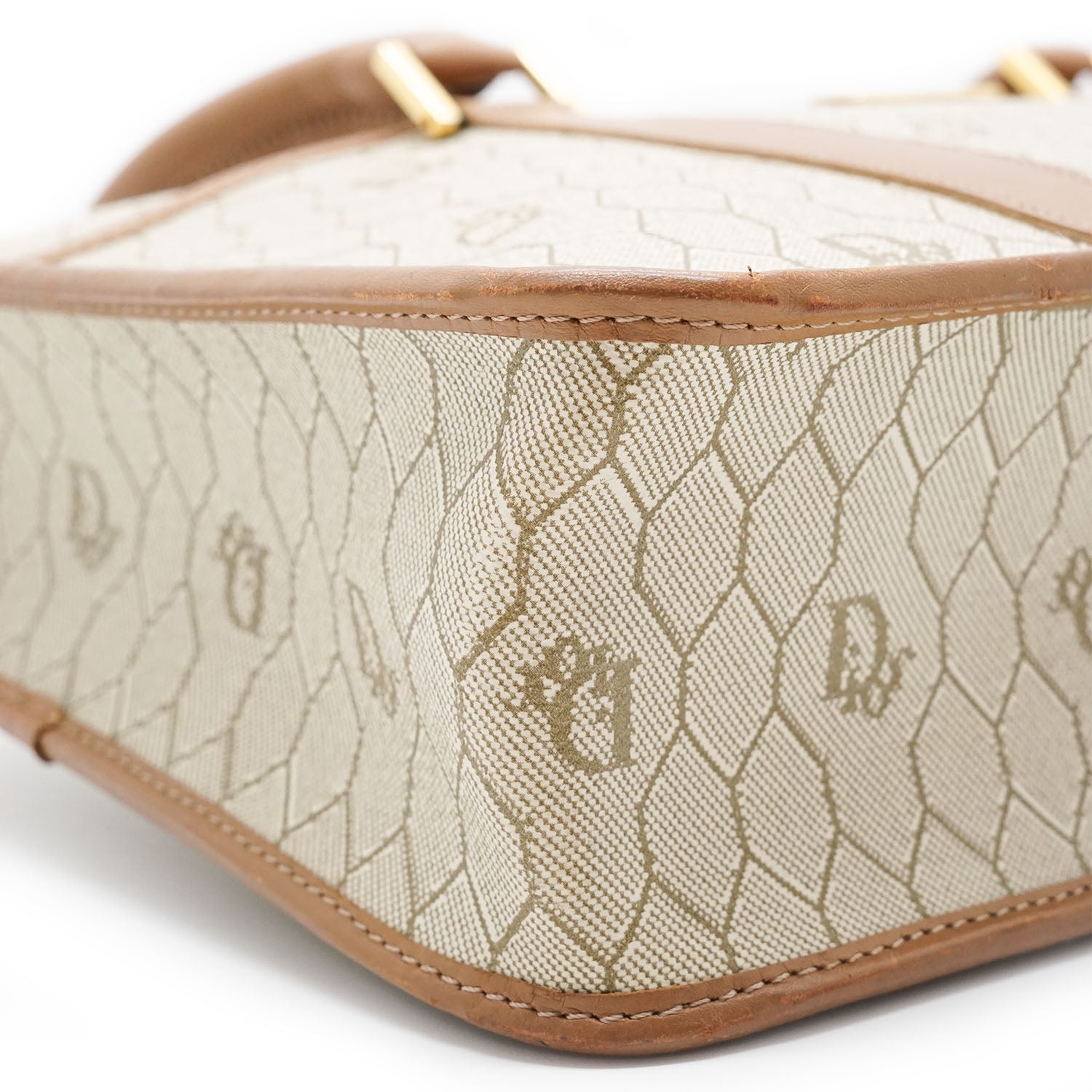 Honeycomb Top Handle Bag Brown Canvas, Leather