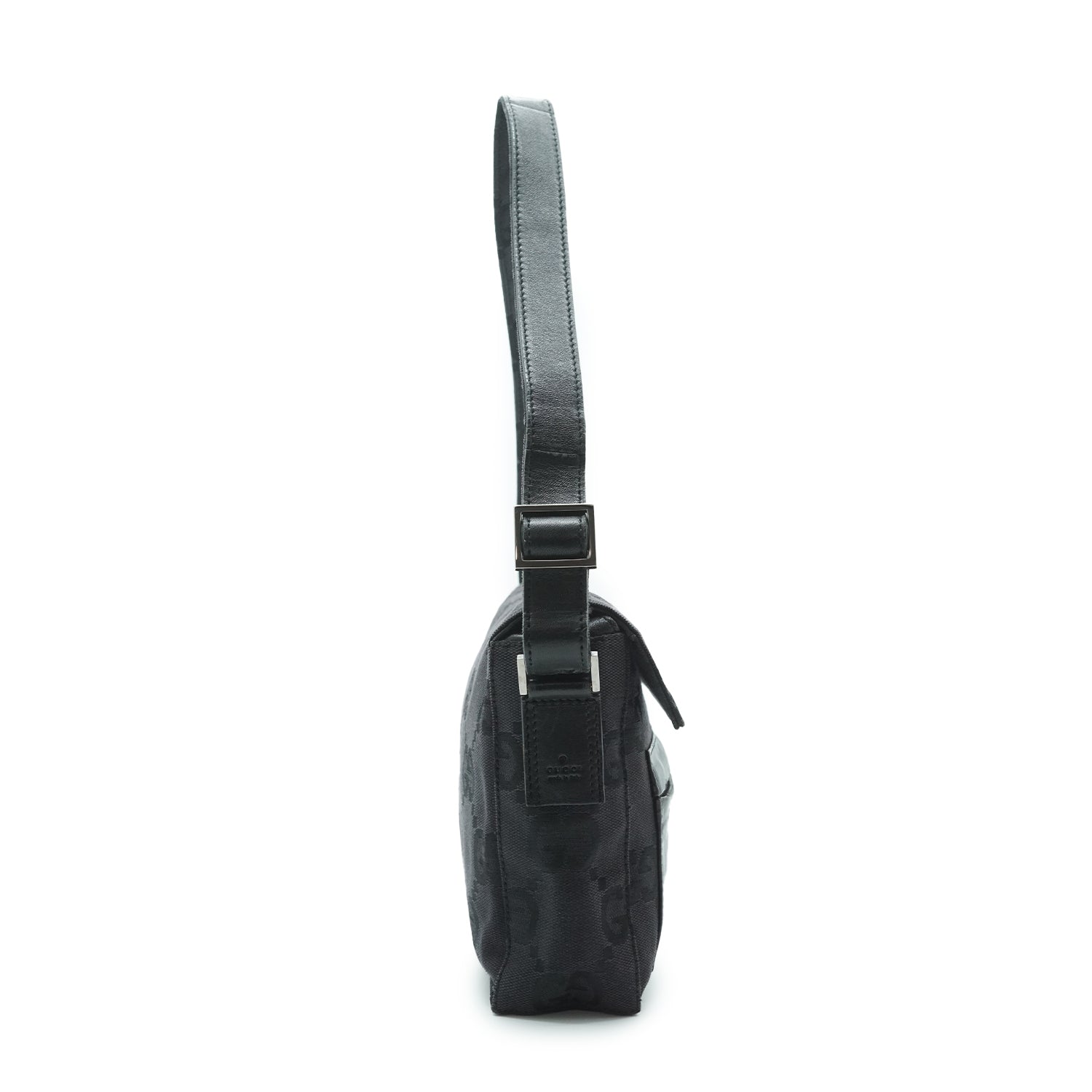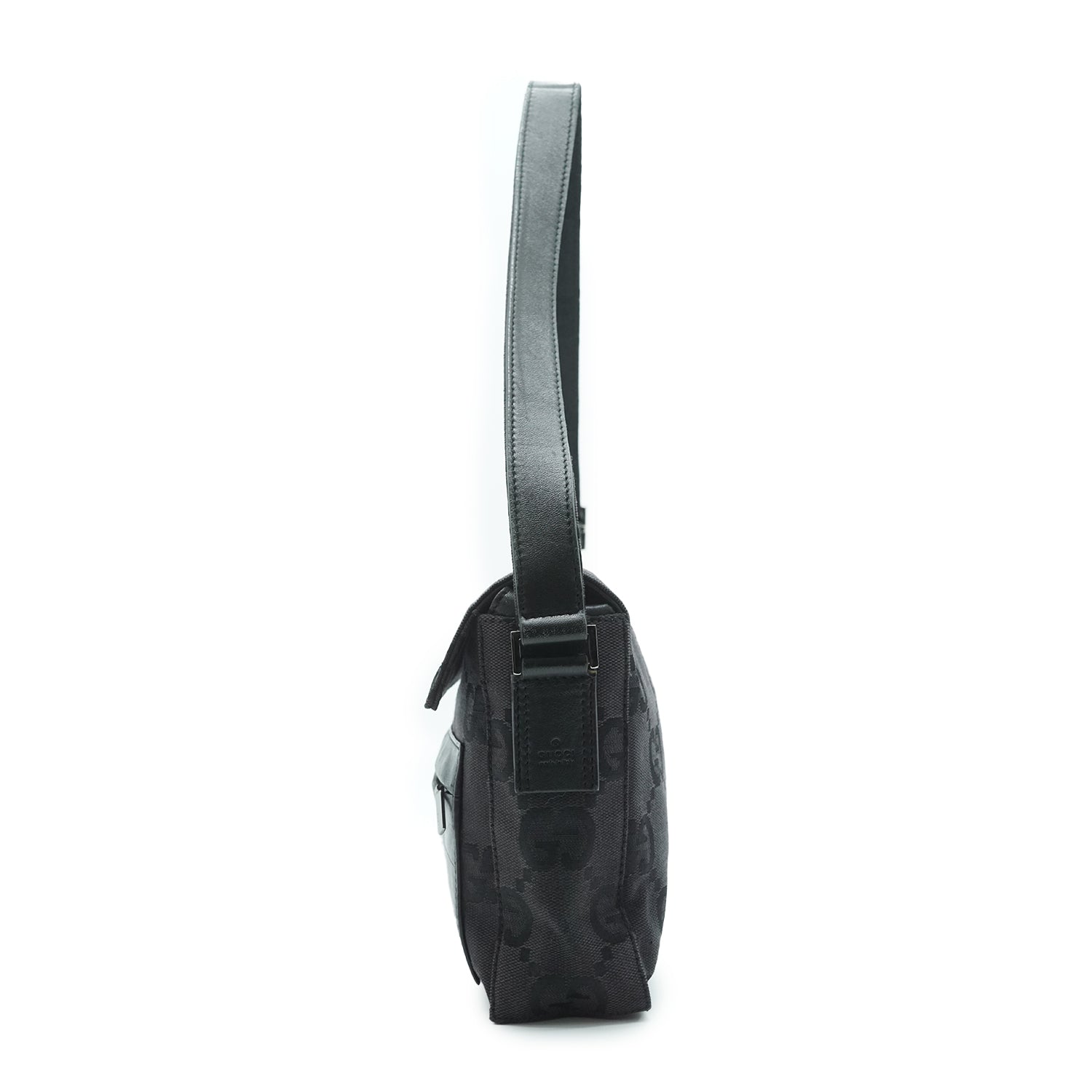 Jumbo GG Canvas Baguette Shoulder Bag Black Canvas, Leather