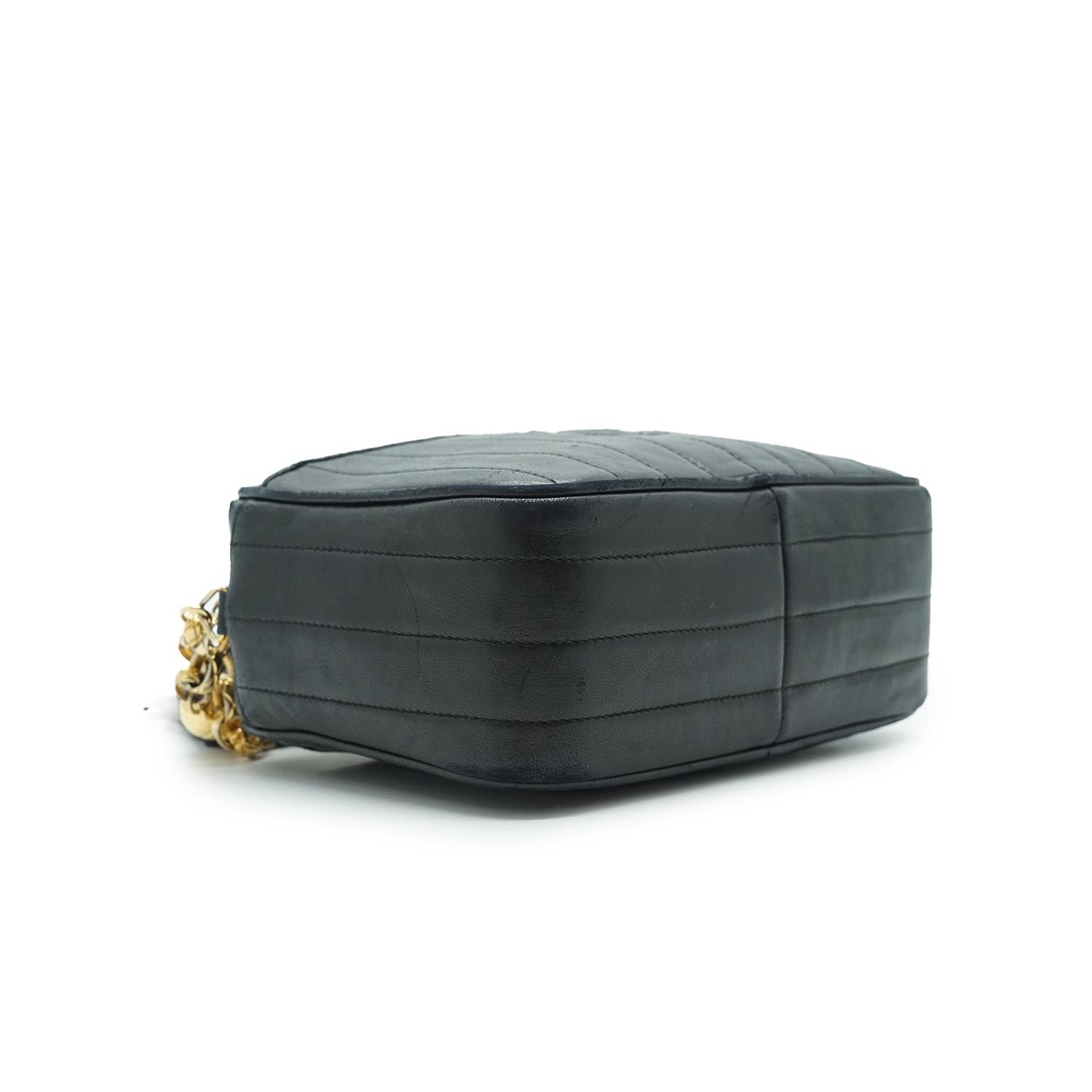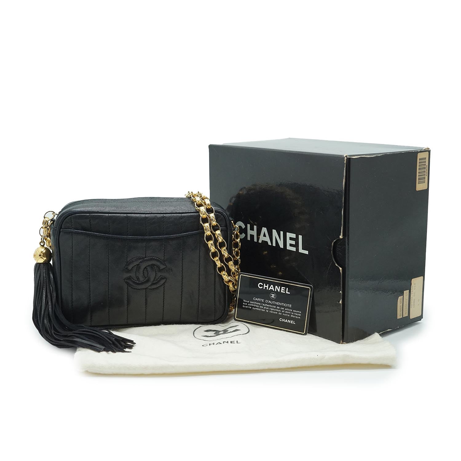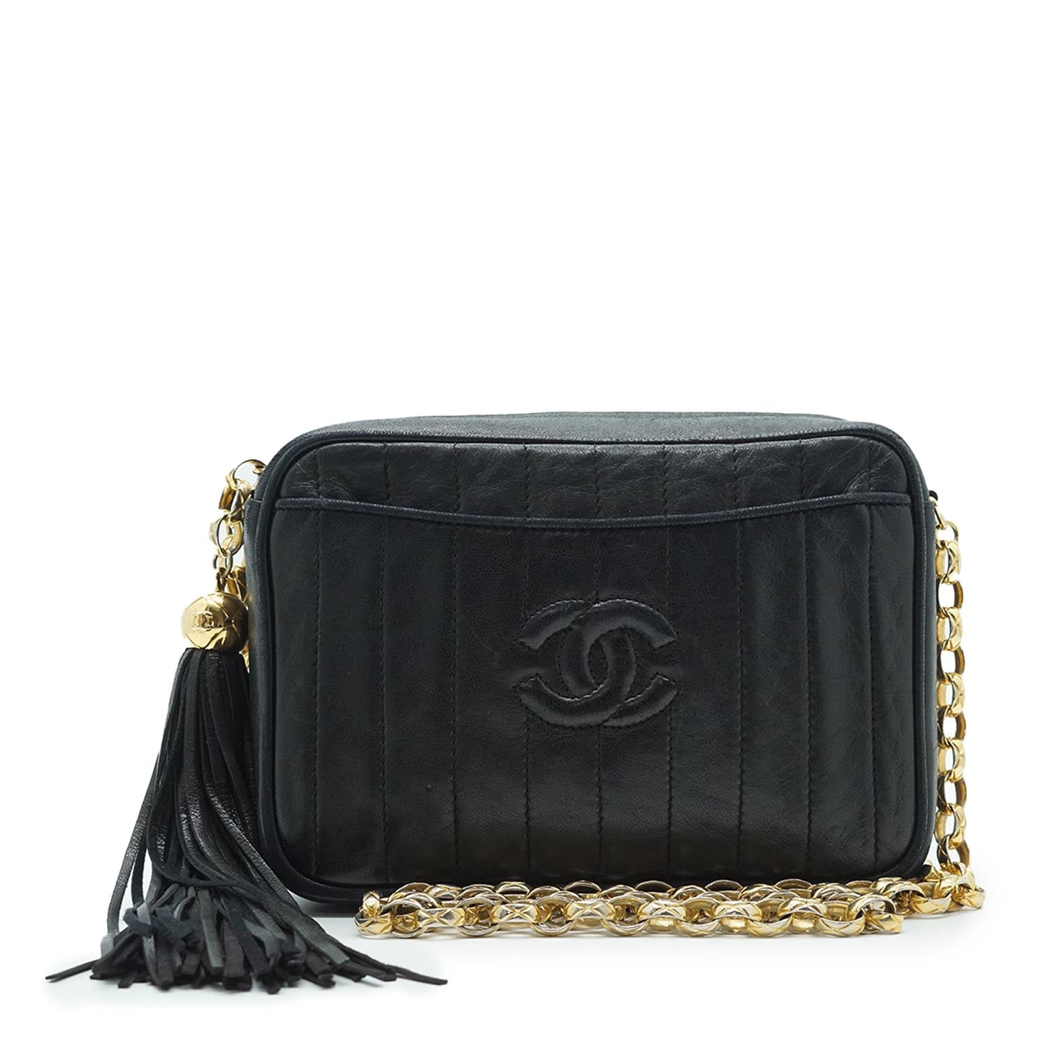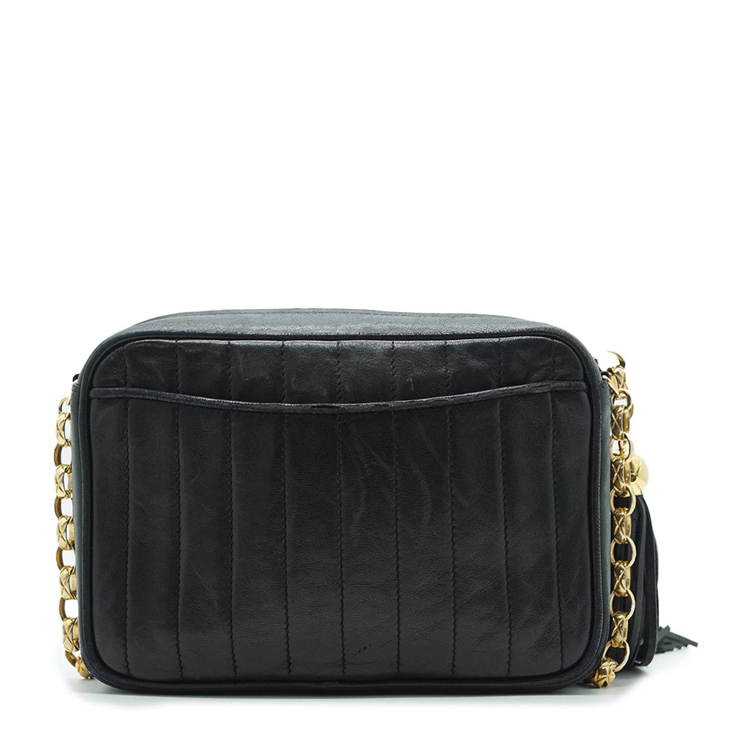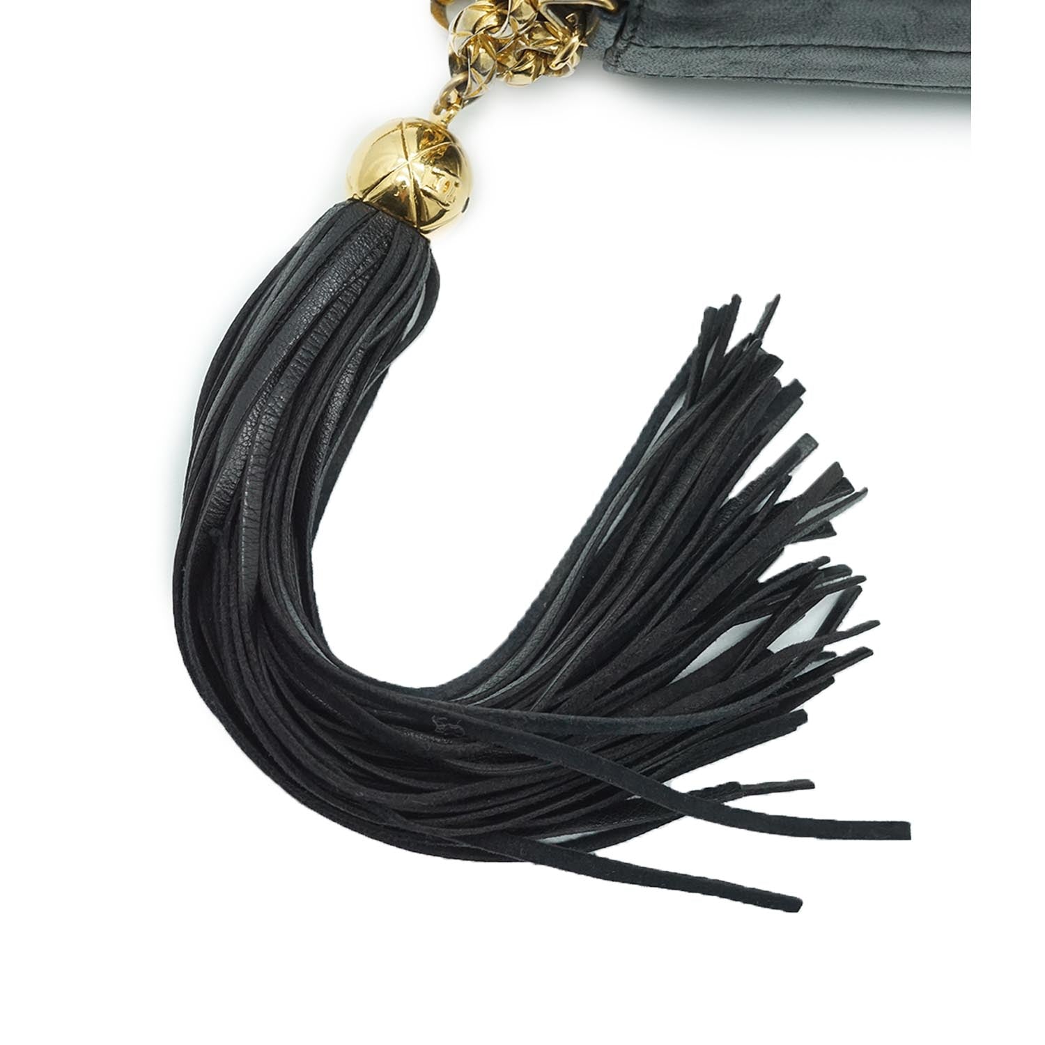 Lambskin Leather Tassel Chain Shoulder Black Leather