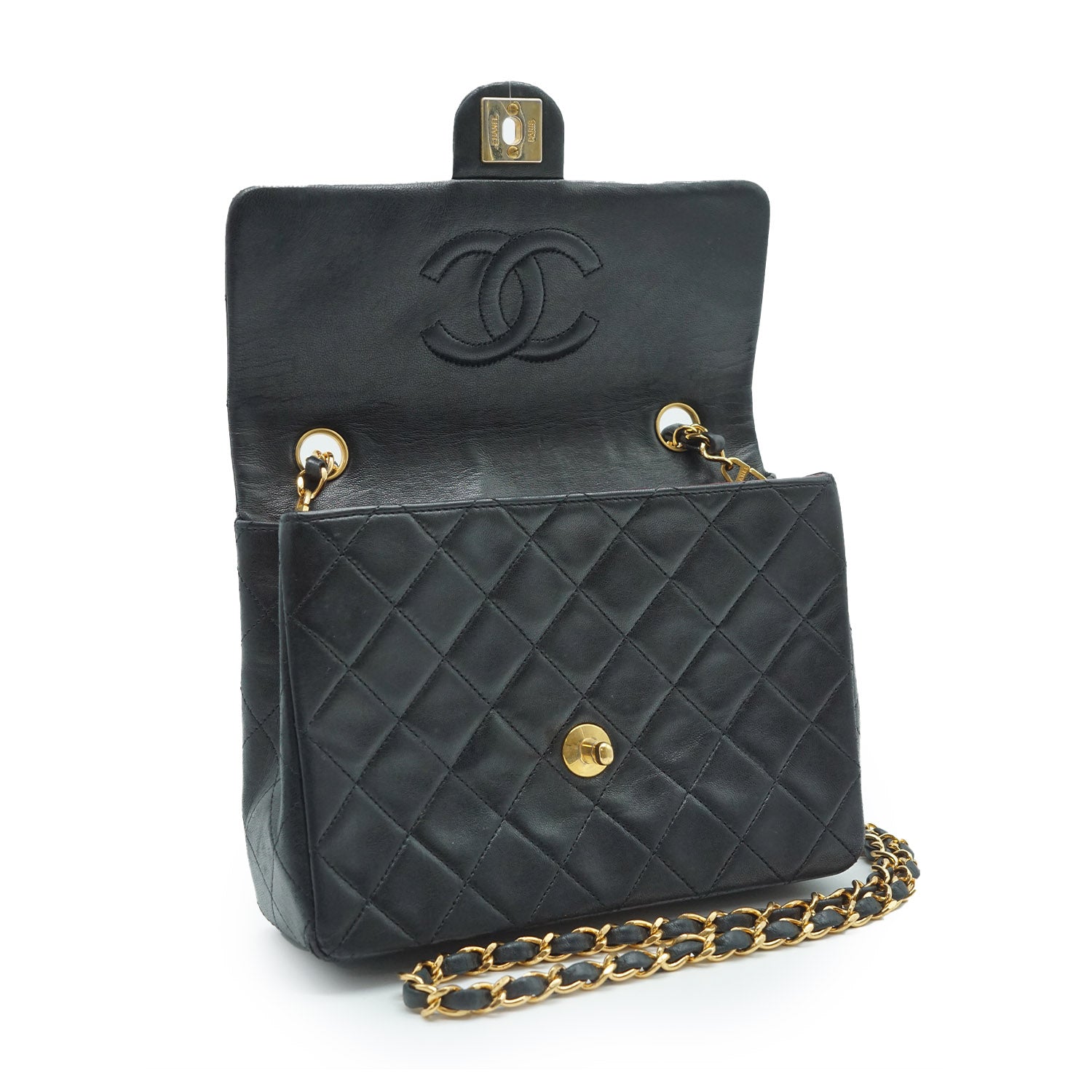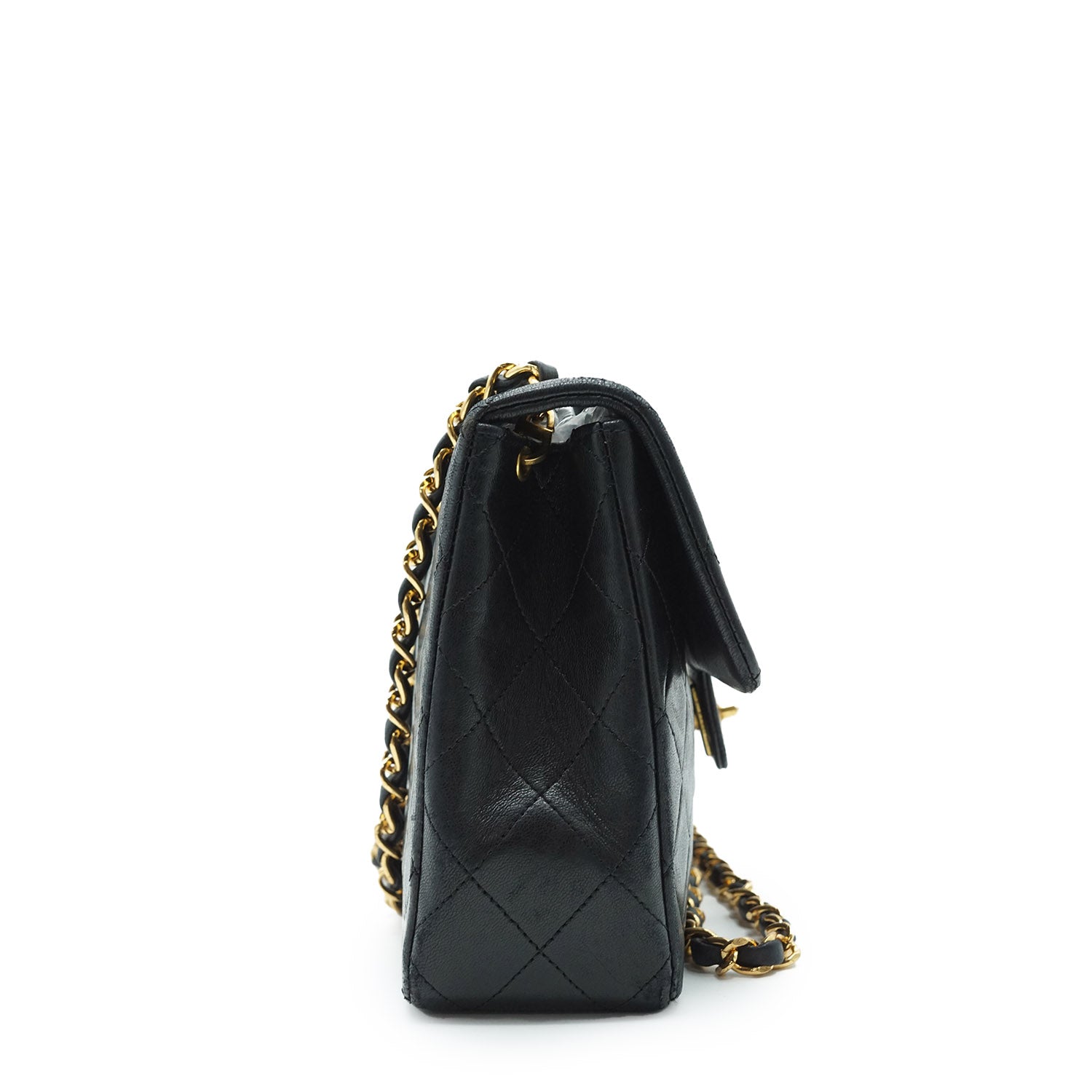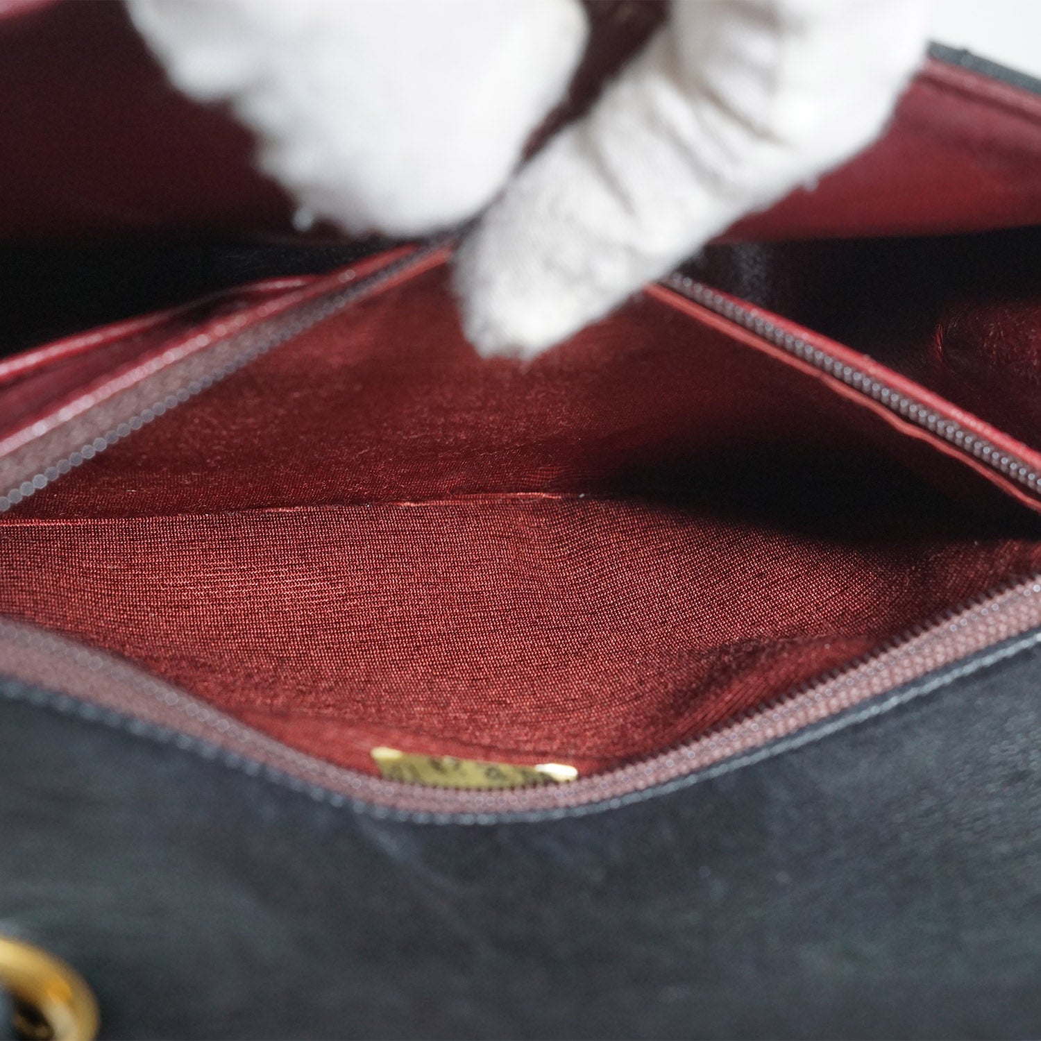 Lambskin Matelasse Single Chain Shoulder Bag Black Leather