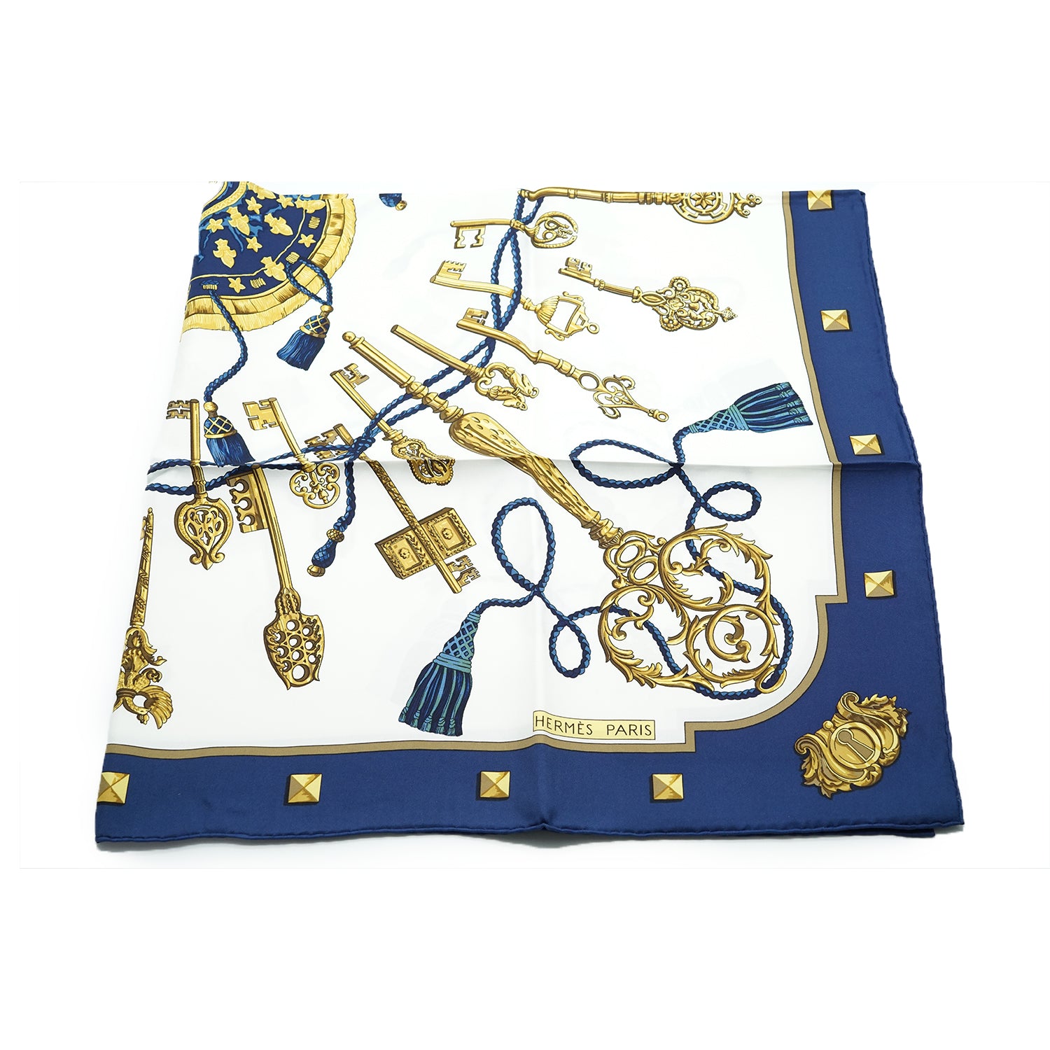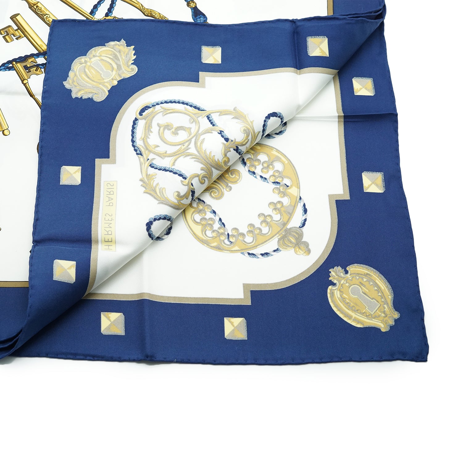Les Cles Silk Carre 90 Blue/Gold/White Silk