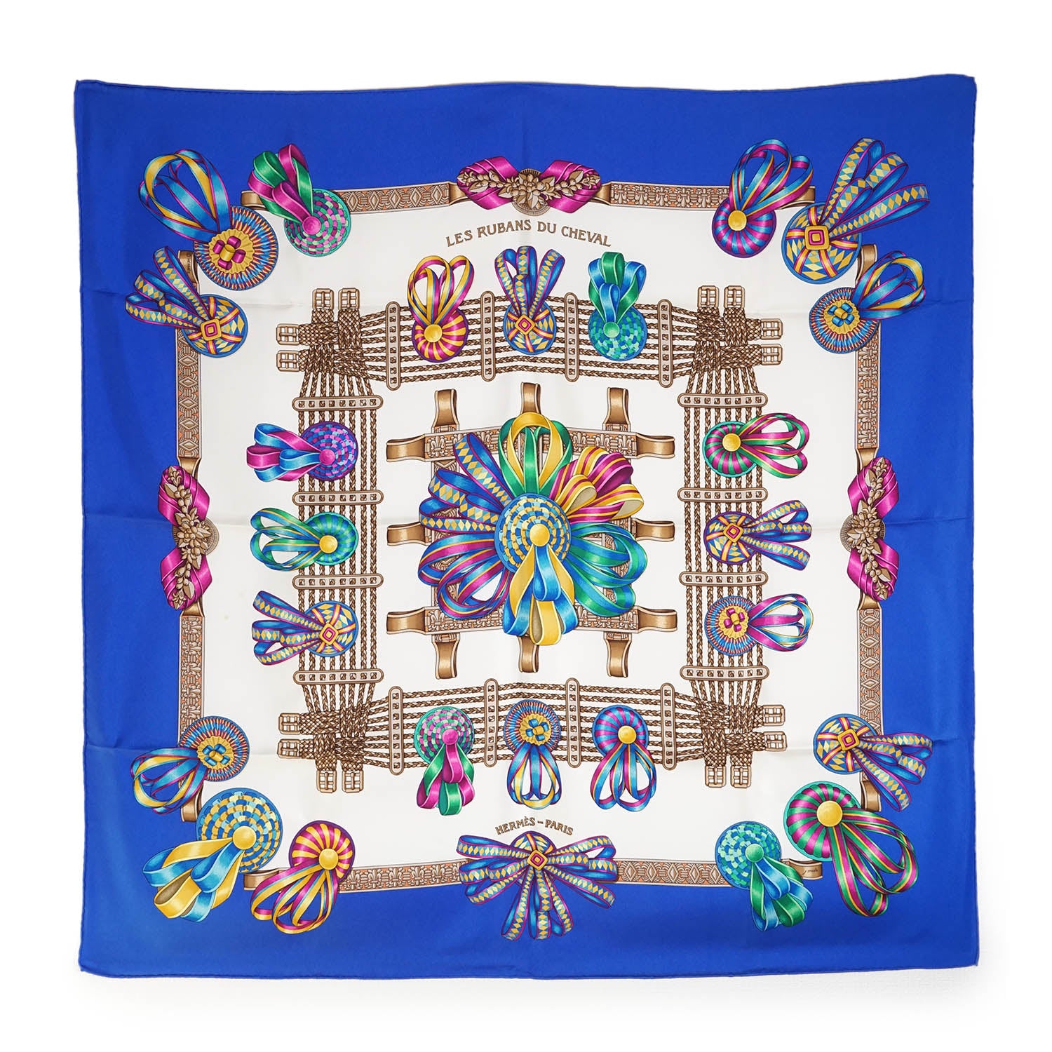 Les Rubans du Cheval Carre 90 Silk Scarf Blue Silk