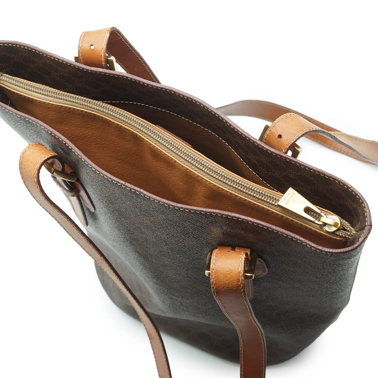 Macadam Bucket Tote Brown Canvas, Leather
