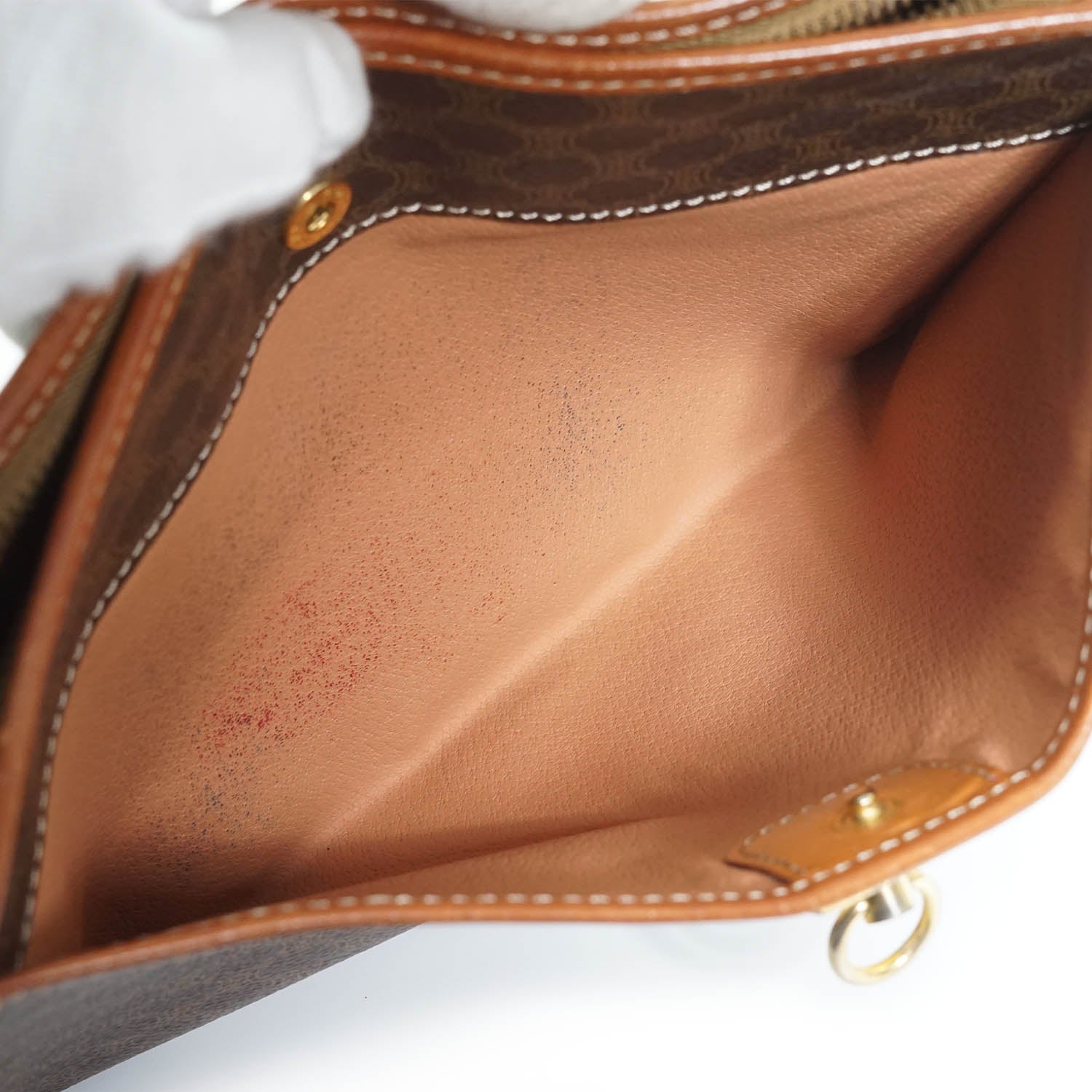 Stain: Some stains/mold residue on the hardware, some stains/discoloration marks on the inside