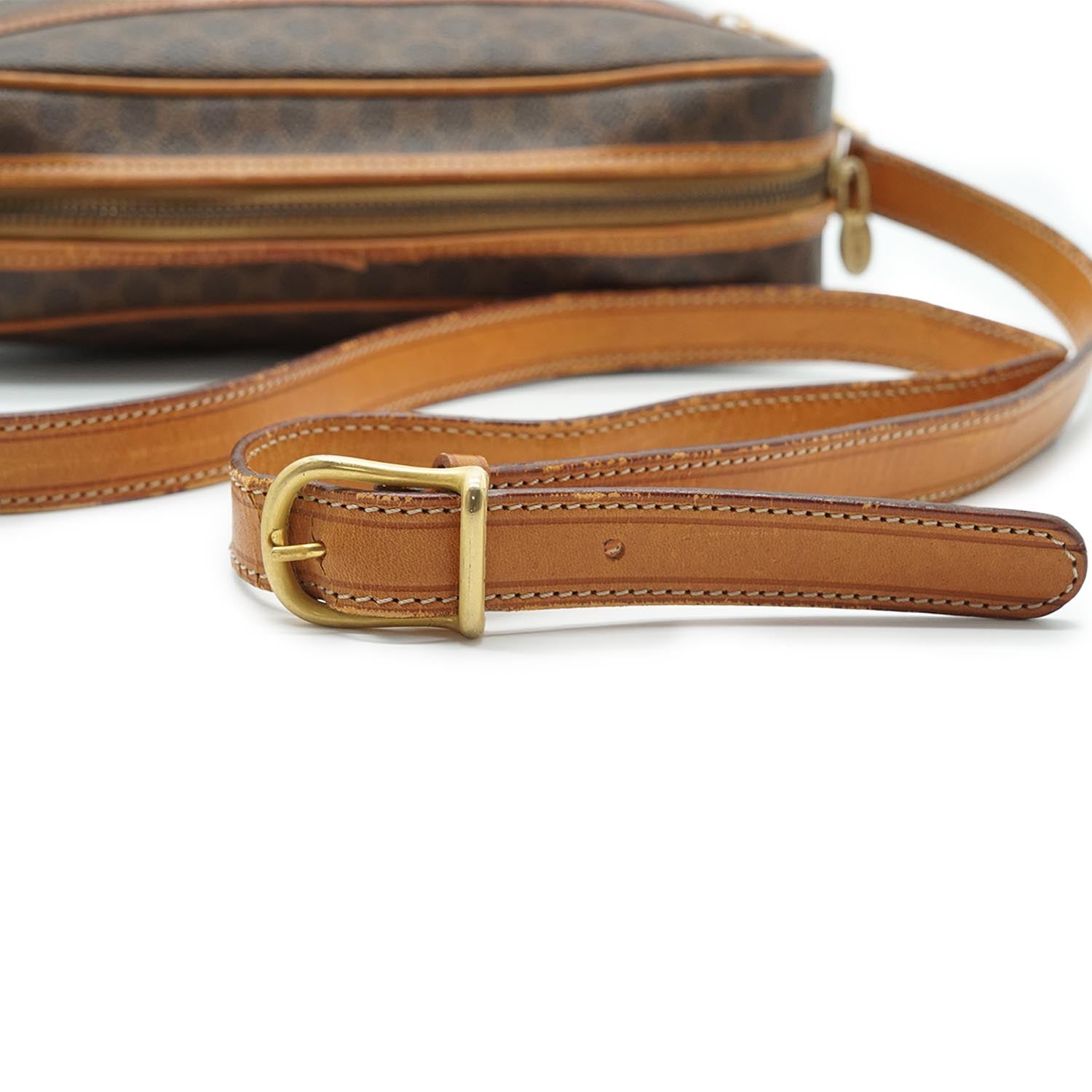 Peeling: Some leather cracking on the shoulder leather strap and near the zipper