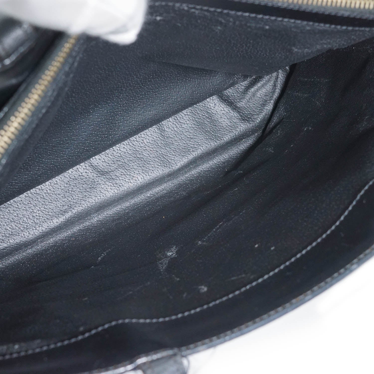 Peeling: Minor peeling on the inside fabric (on the sides and near the inside pocket)