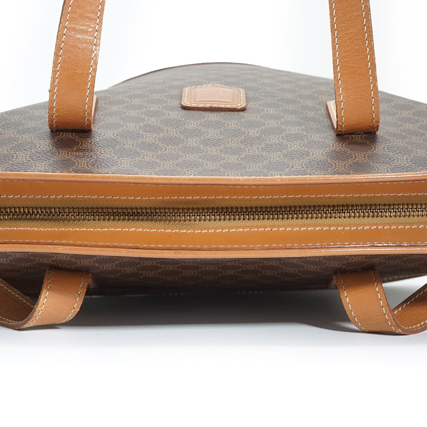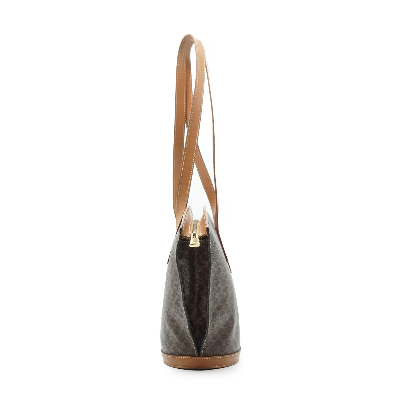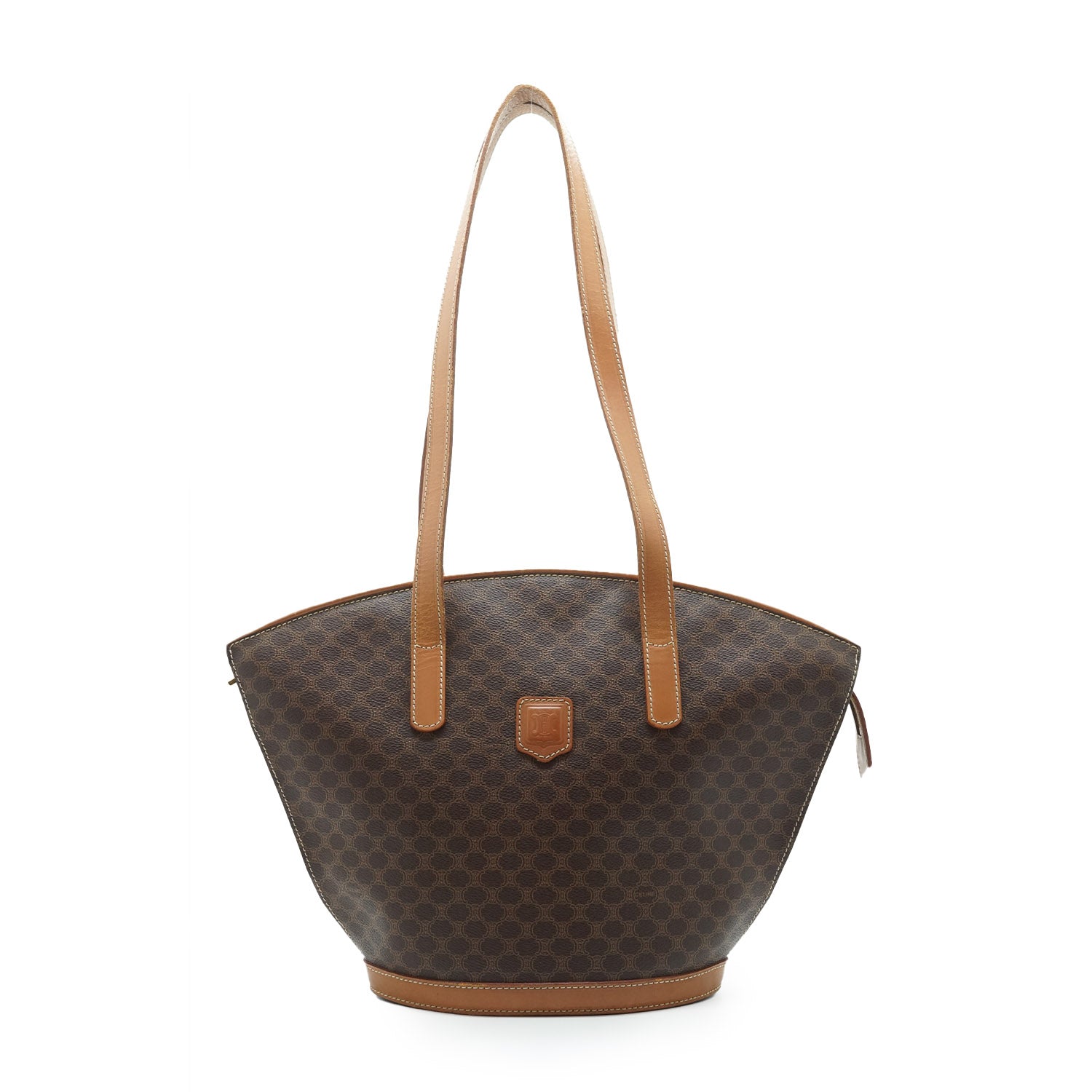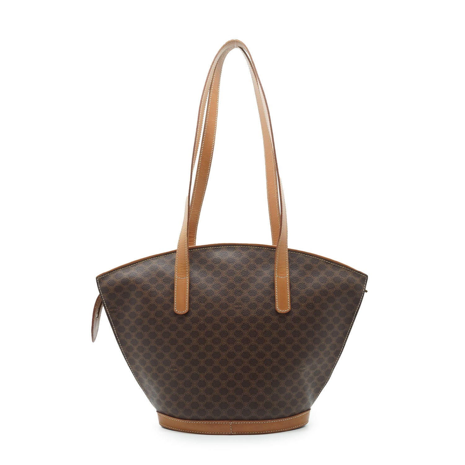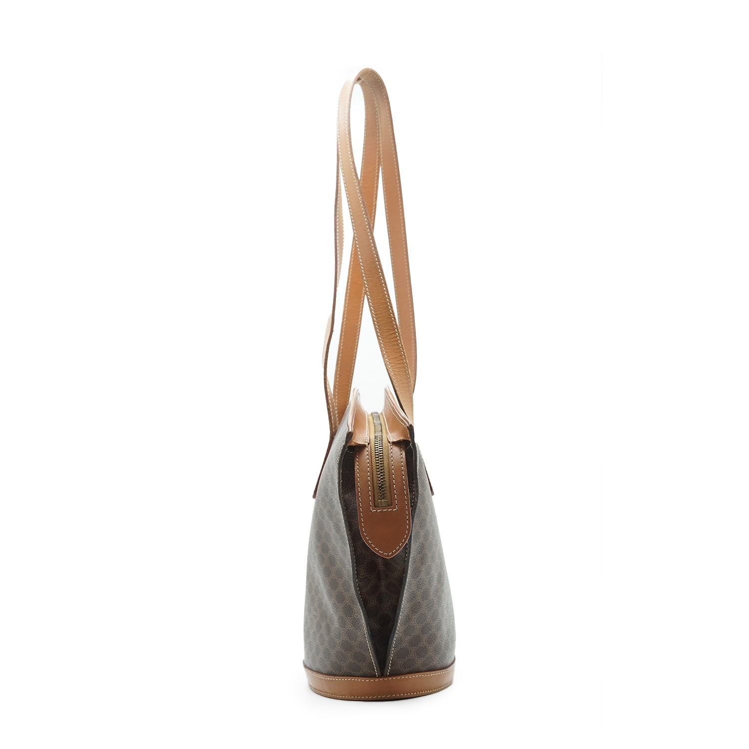 Macadam Trapeze Bucket Tote Brown Canvas, Leather