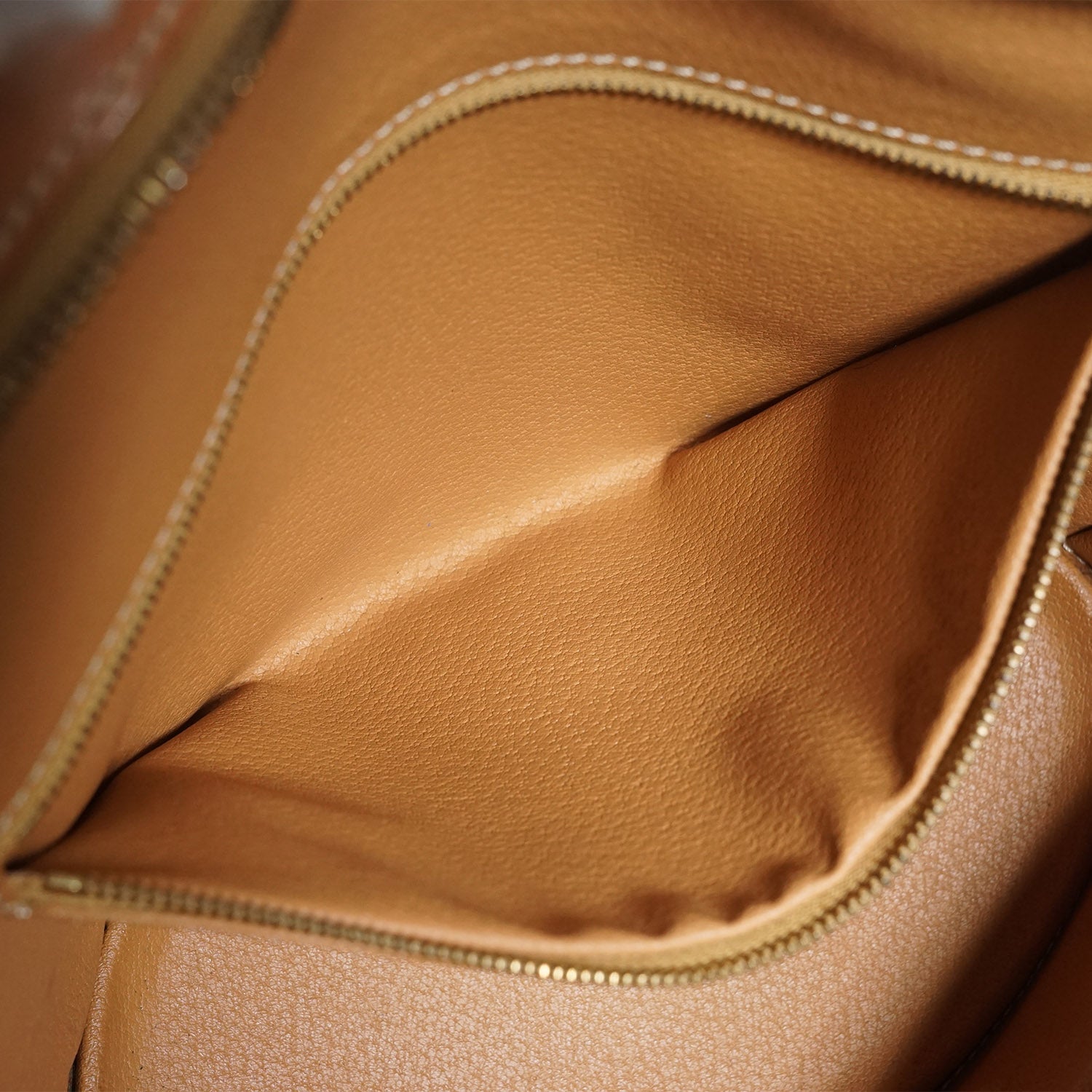 Peeling: Leather cracking on one of the the top handles and on one side (top corner near the zipper)