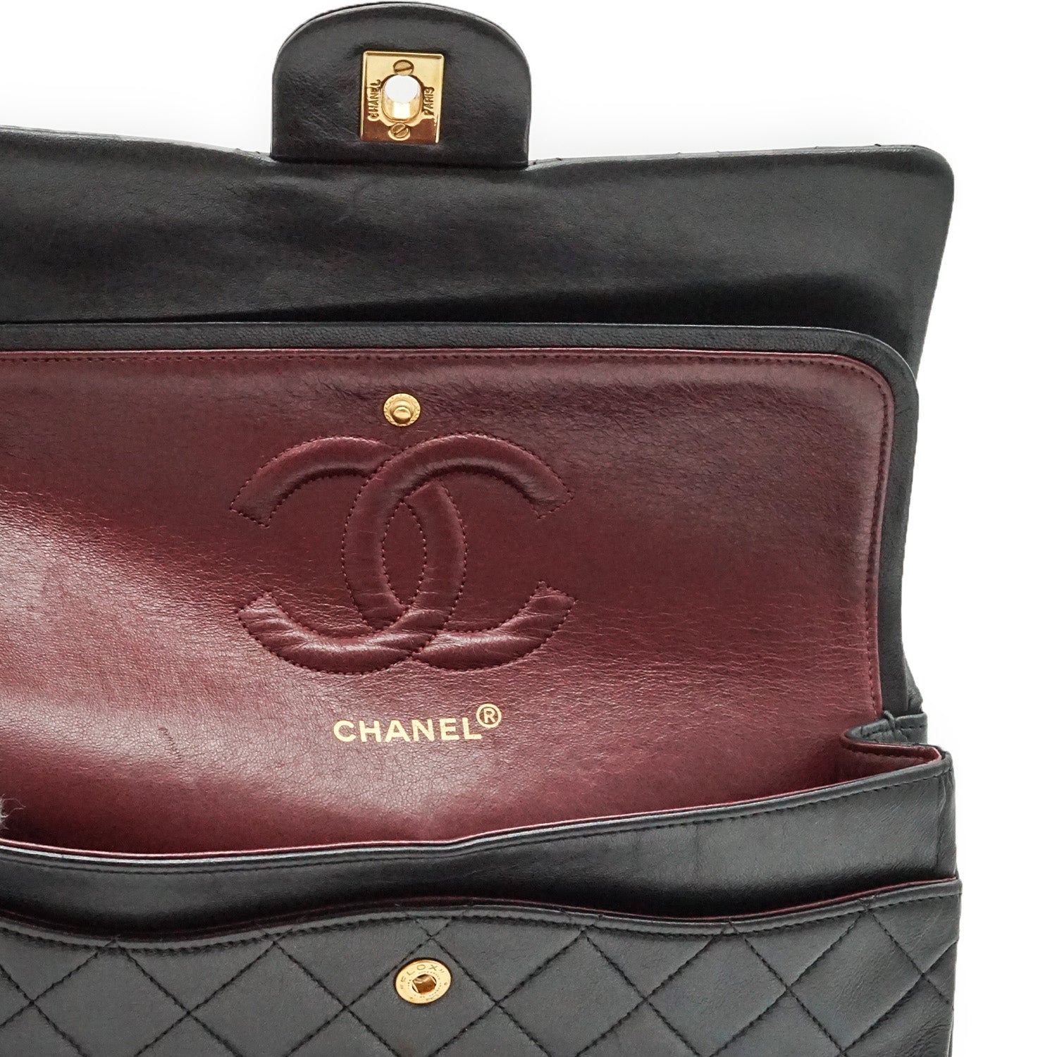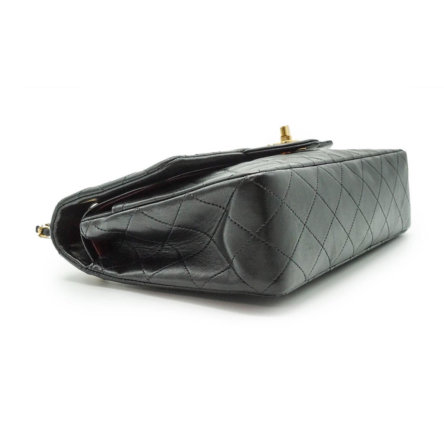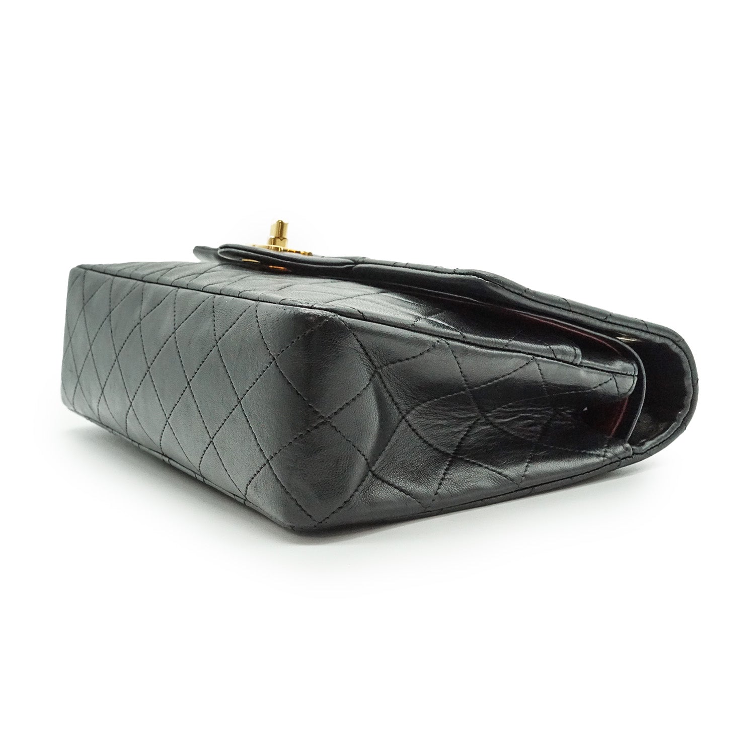 Matelasse Double Flap 25 cm Chain Shoulder Black Leather