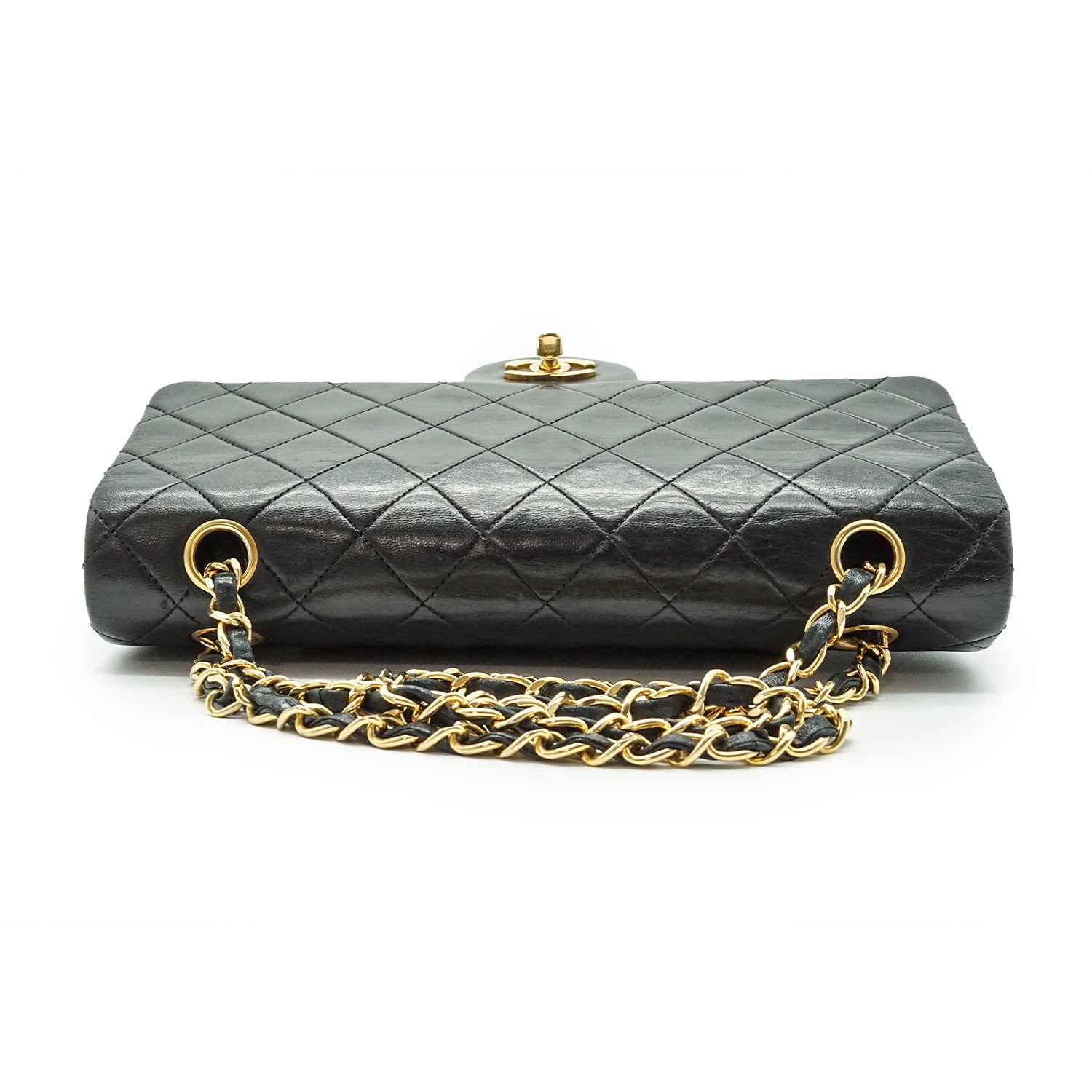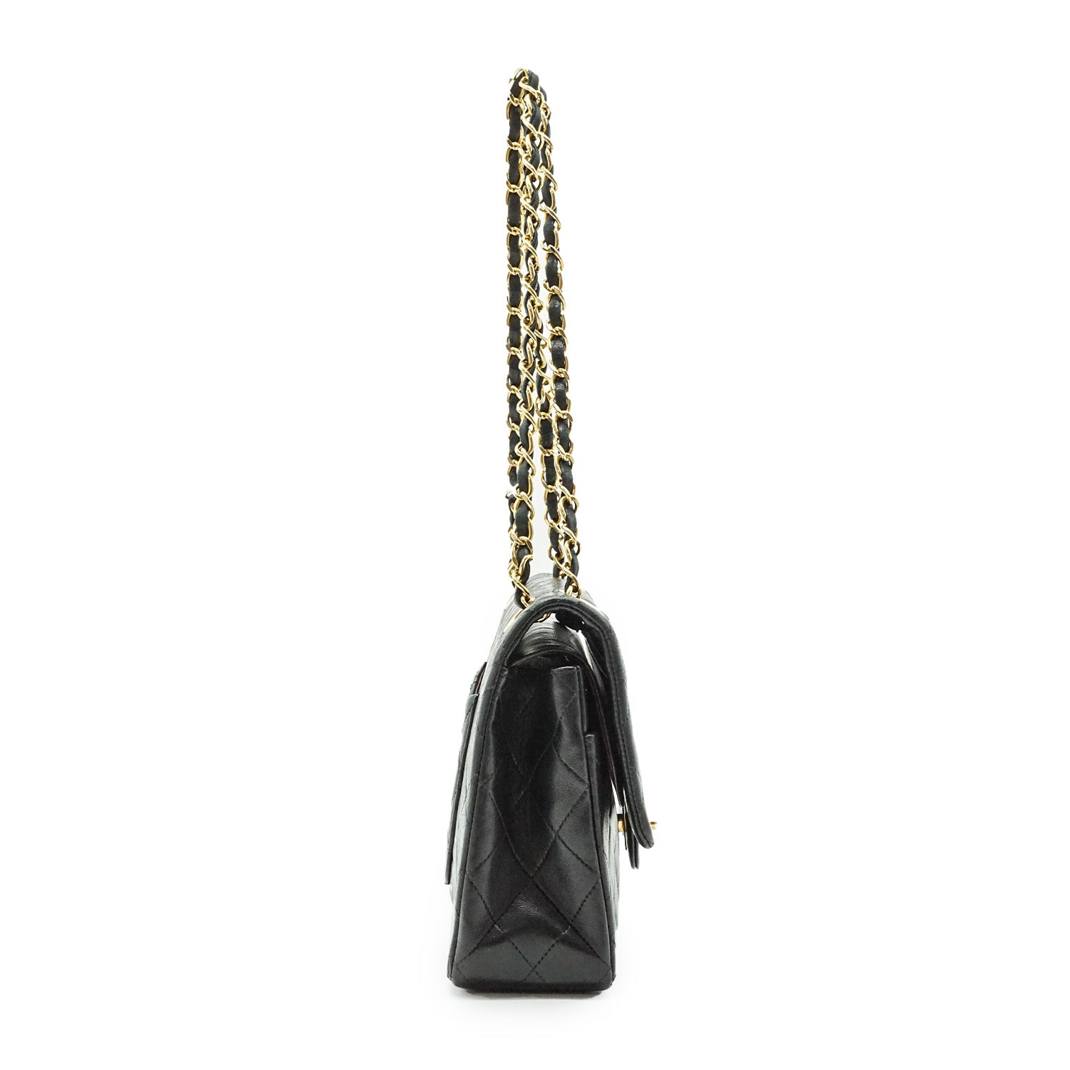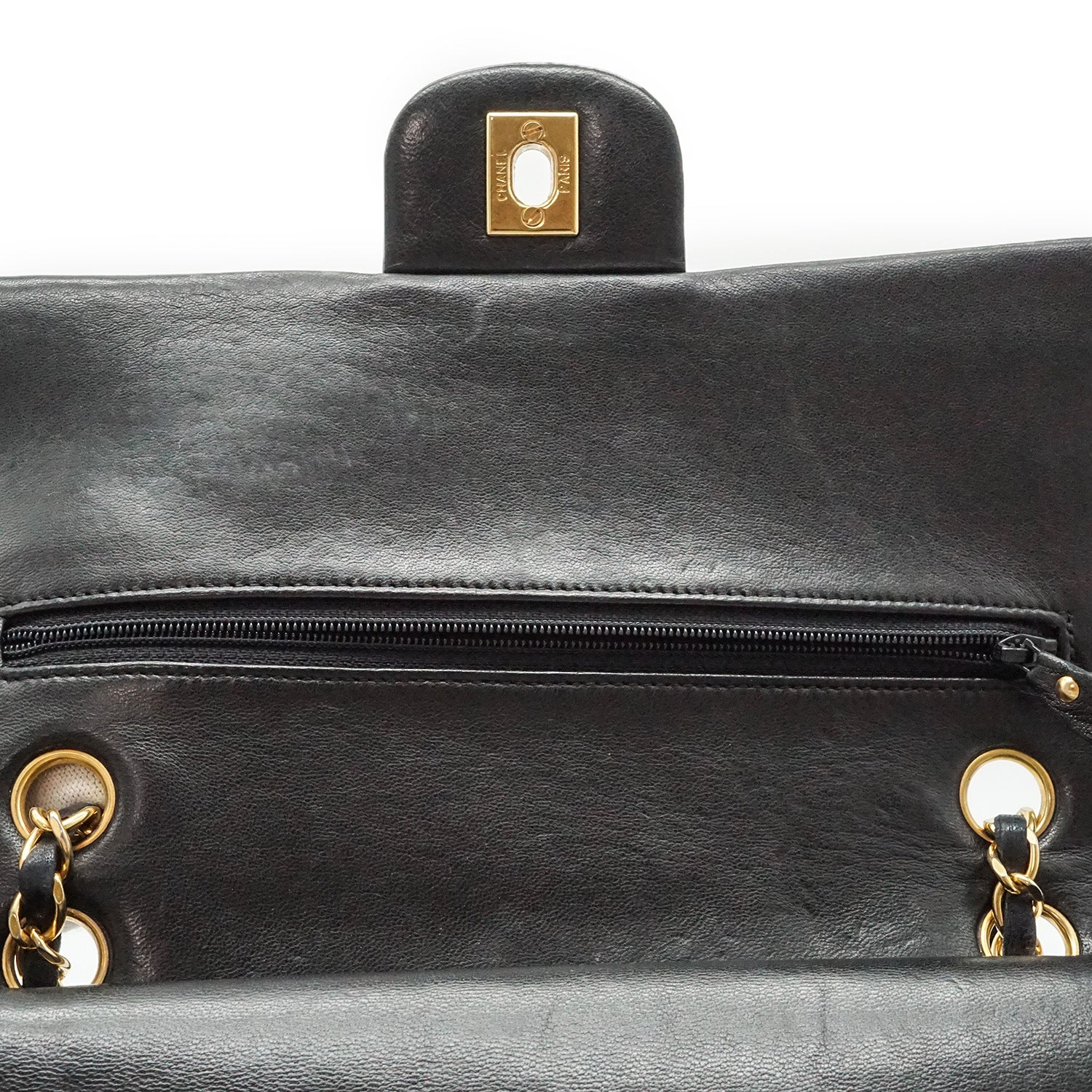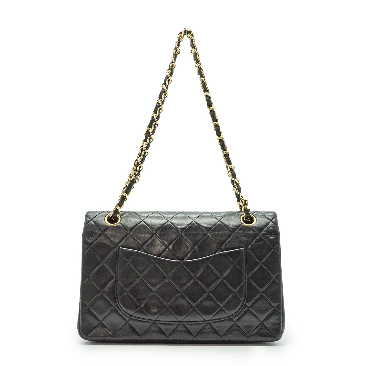 Matelasse Double Flap 25 cm Chain Shoulder Black Leather