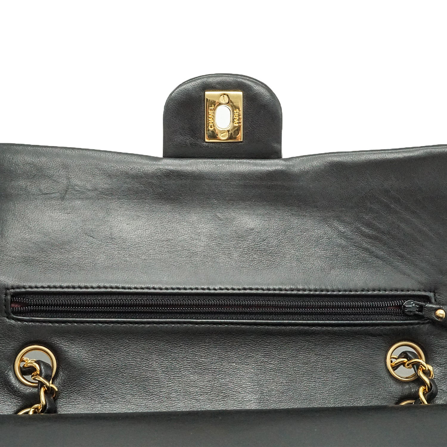 Matelasse Double Flap 25 cm Chain Shoulder Black Leather