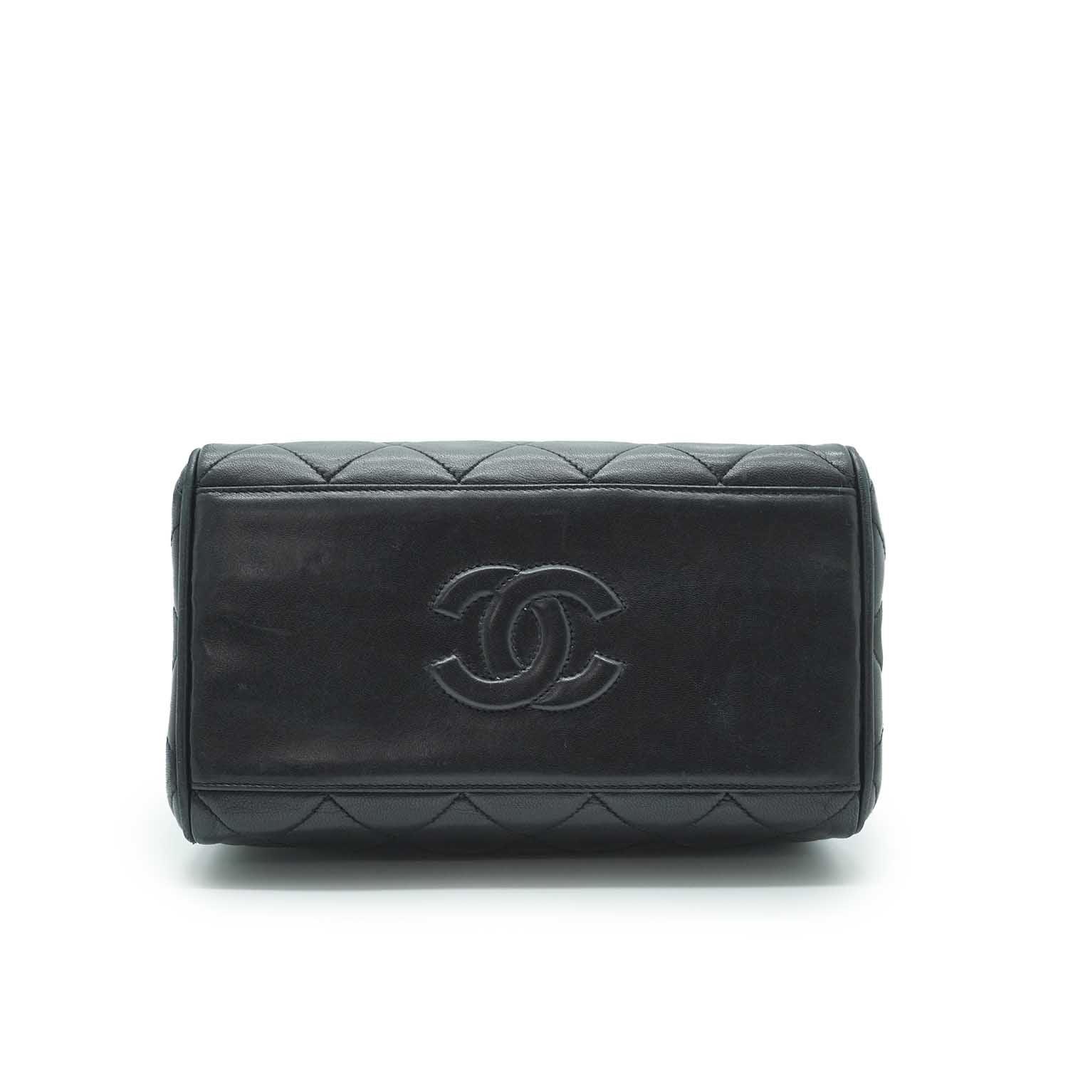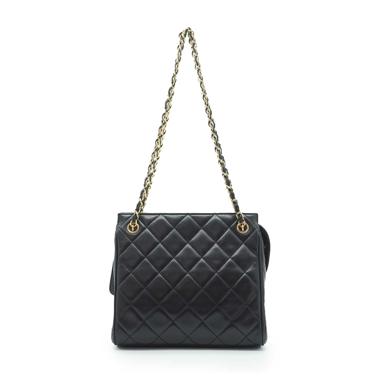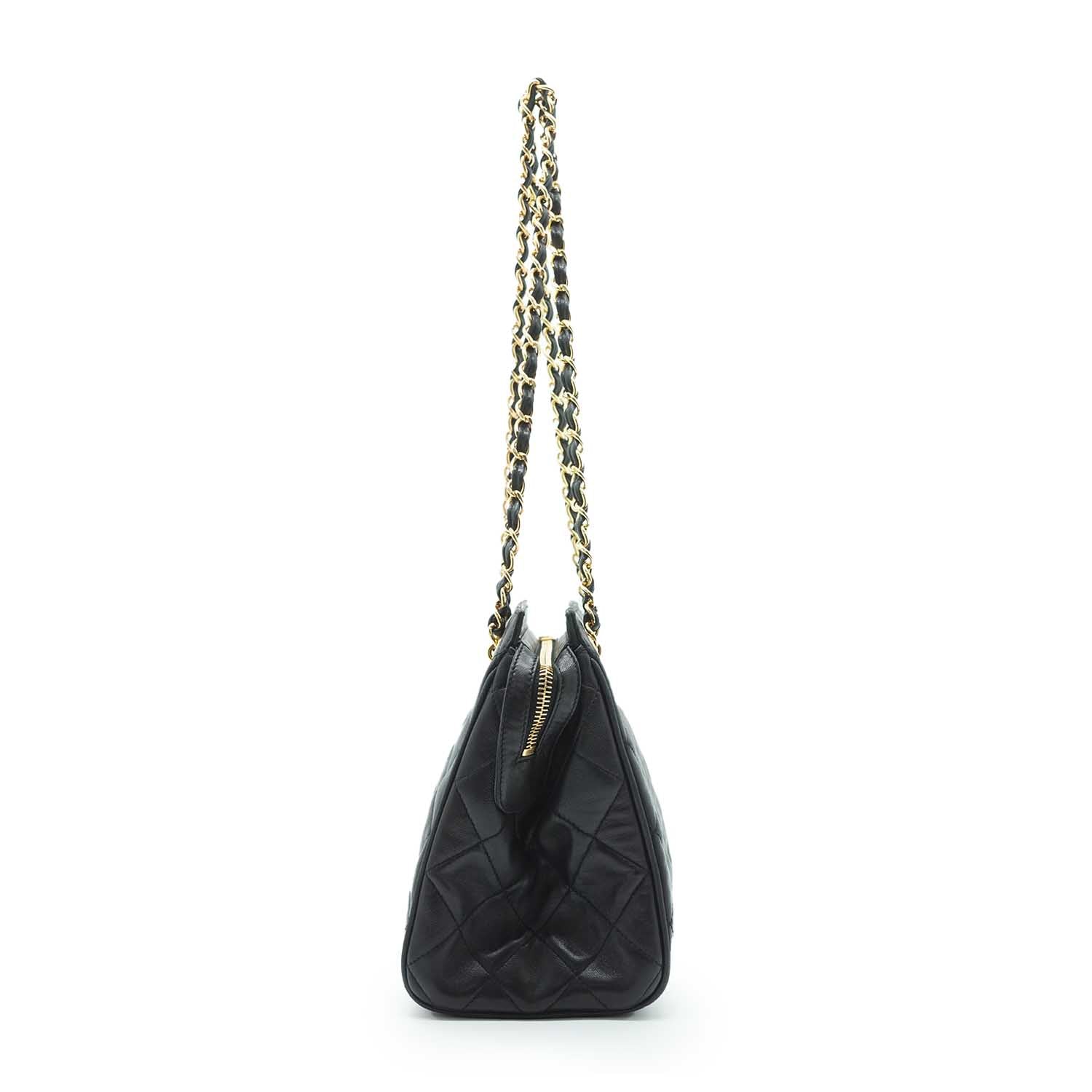 Matelasse Lambskin Chain Shoulder Tote Black Leather