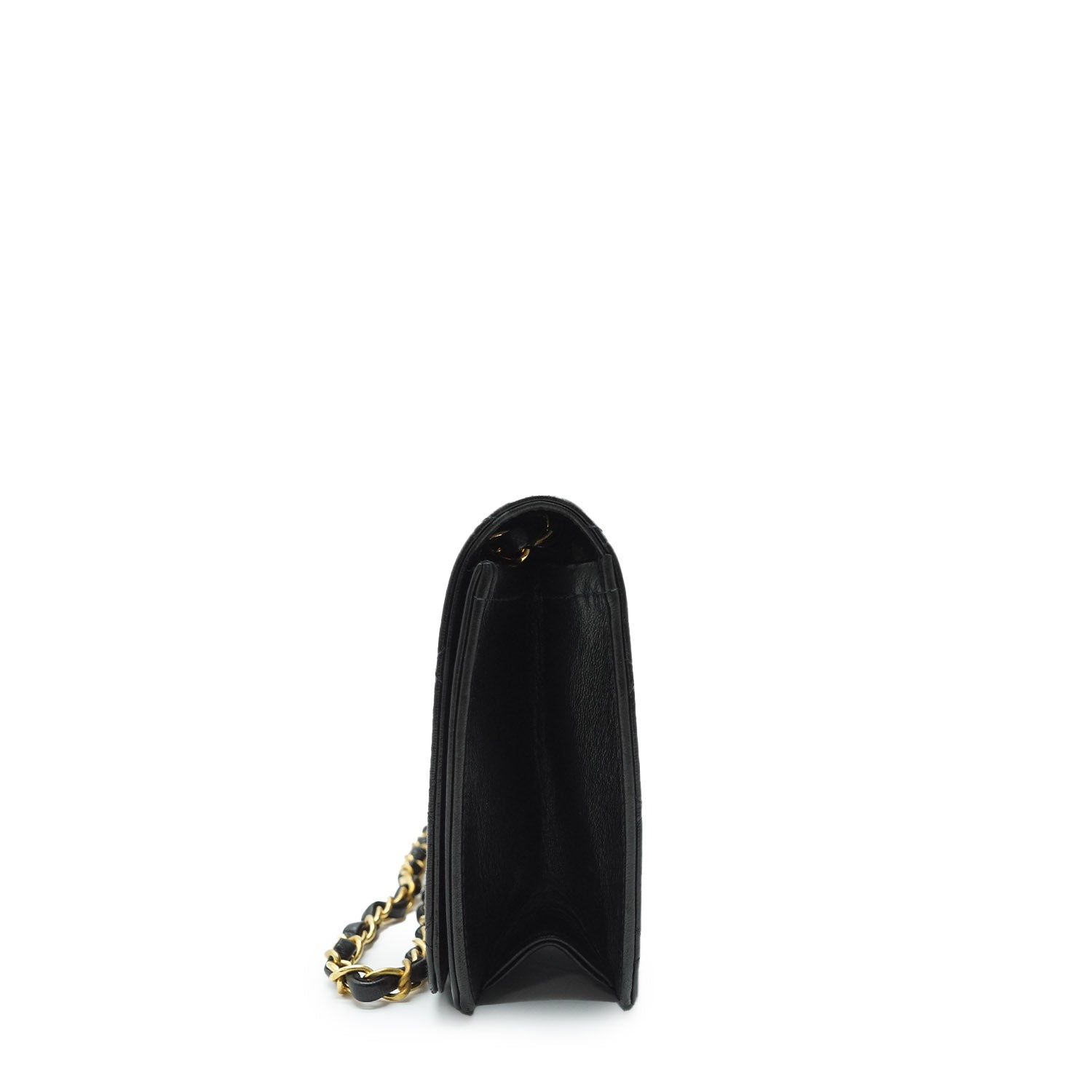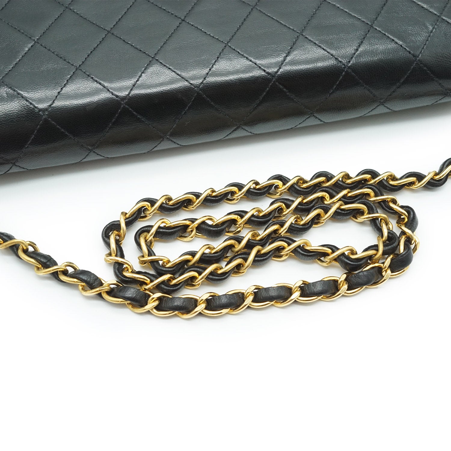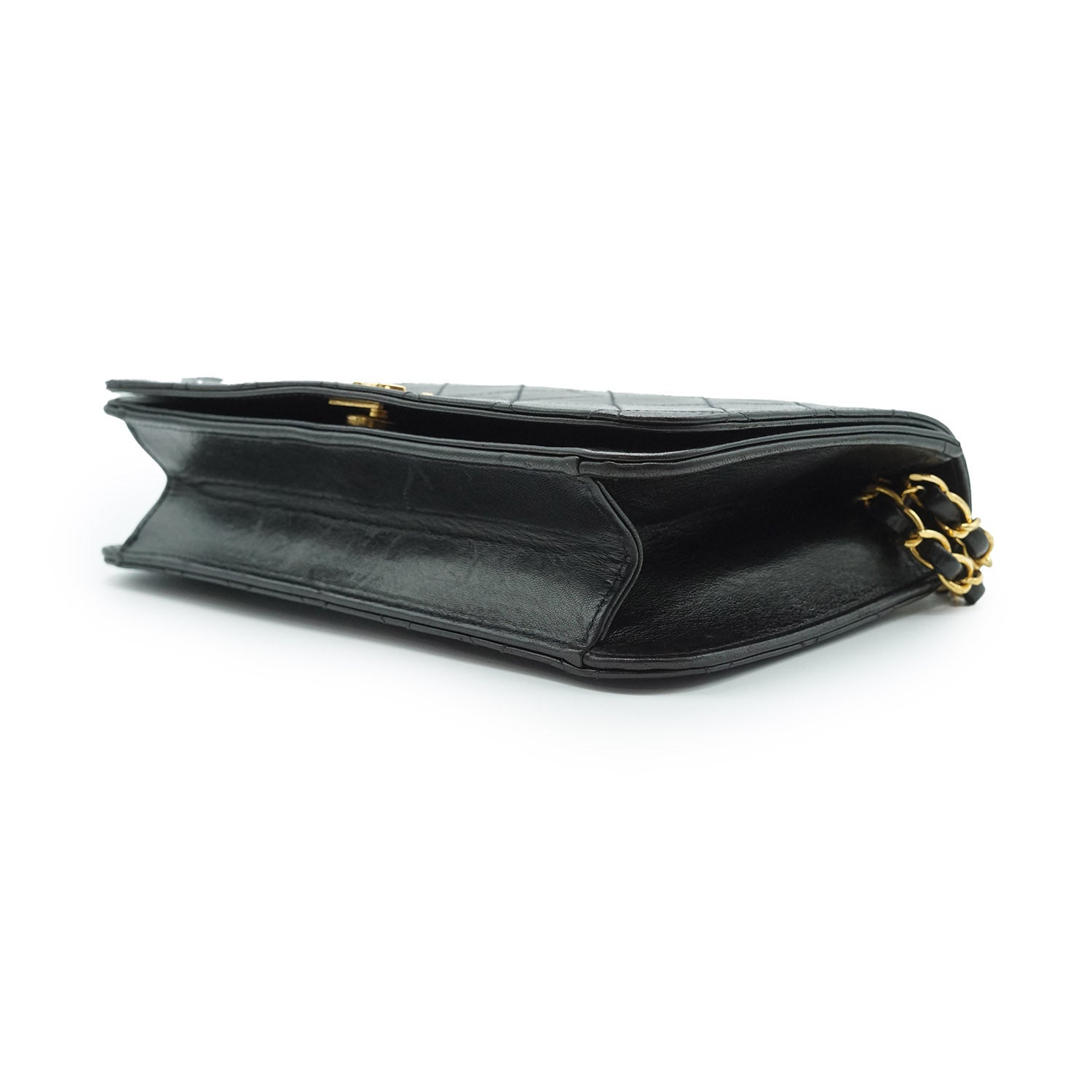 Matelasse Single Flap Push Lock Chain Shoulder Bag Black Leather