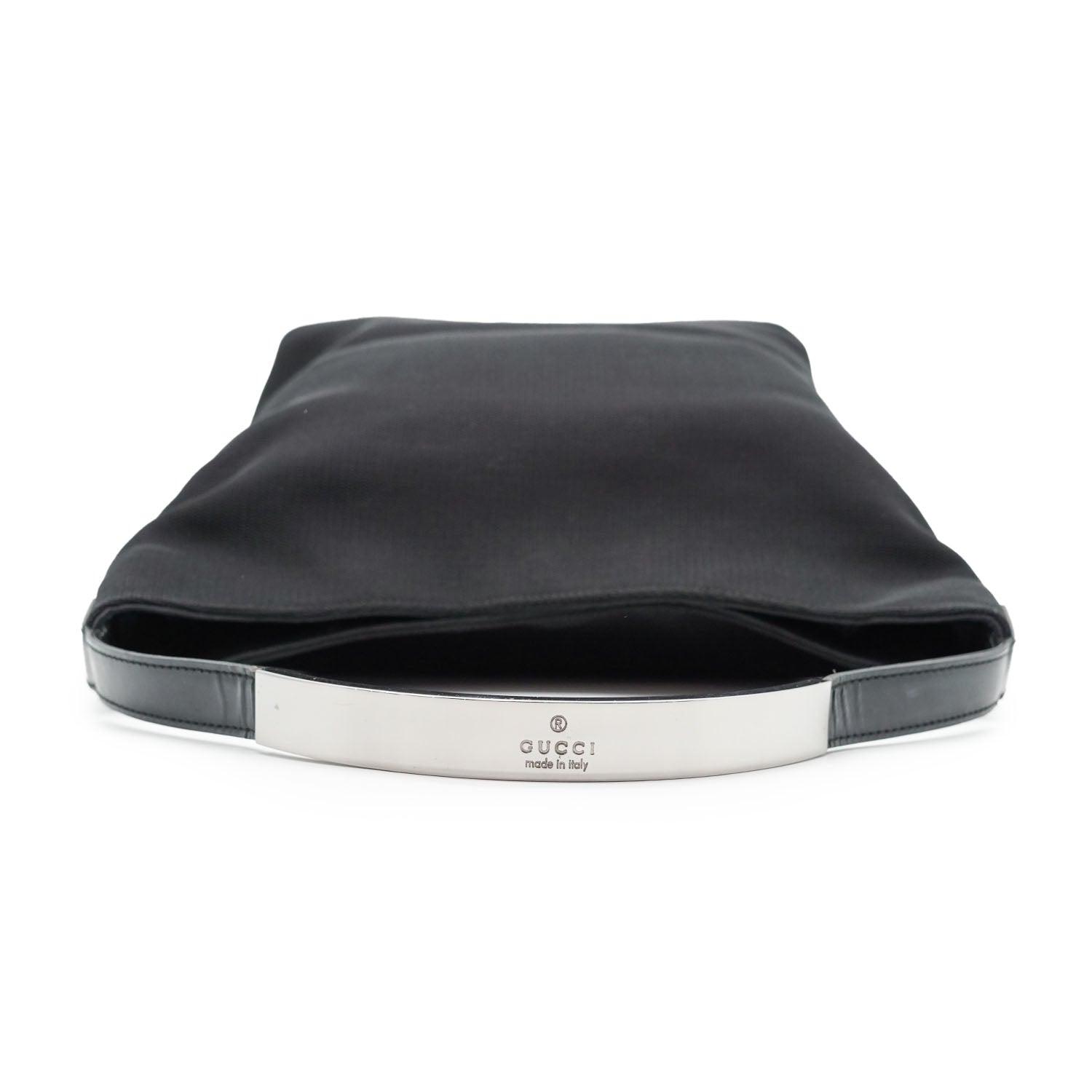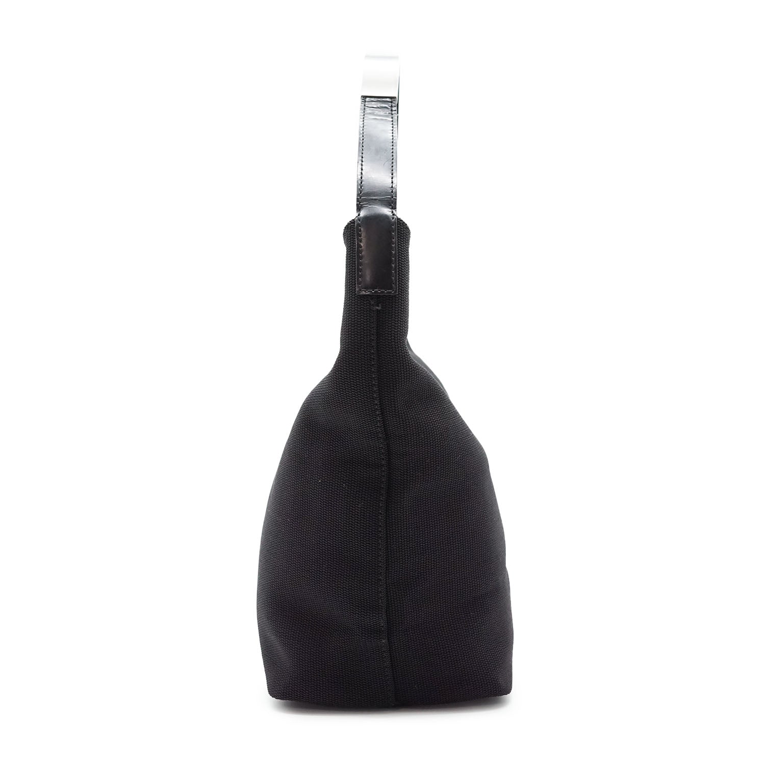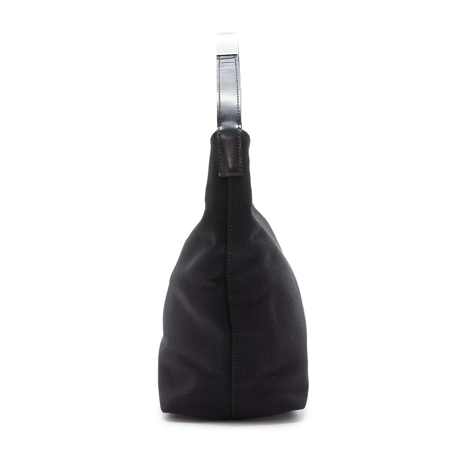 Metal Handle Nylon Hobo Bag Black Nylon, Patent leather