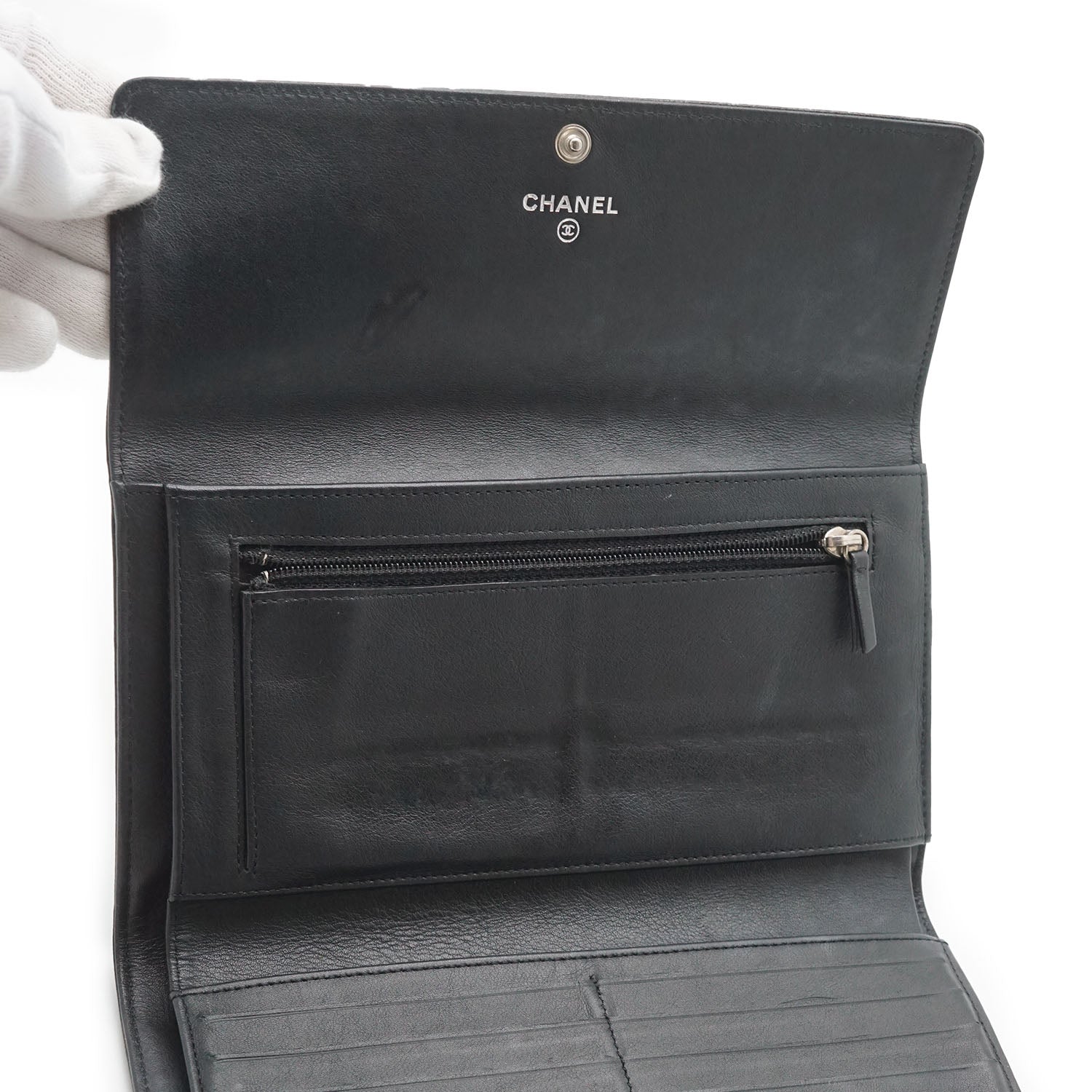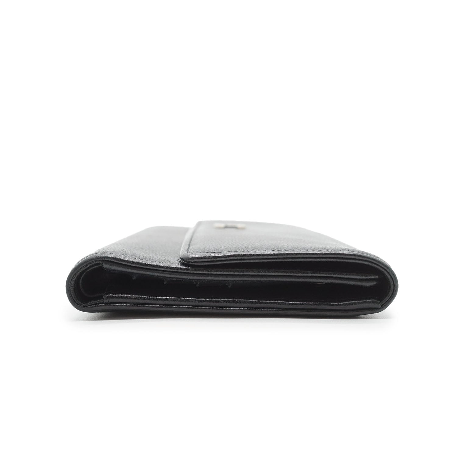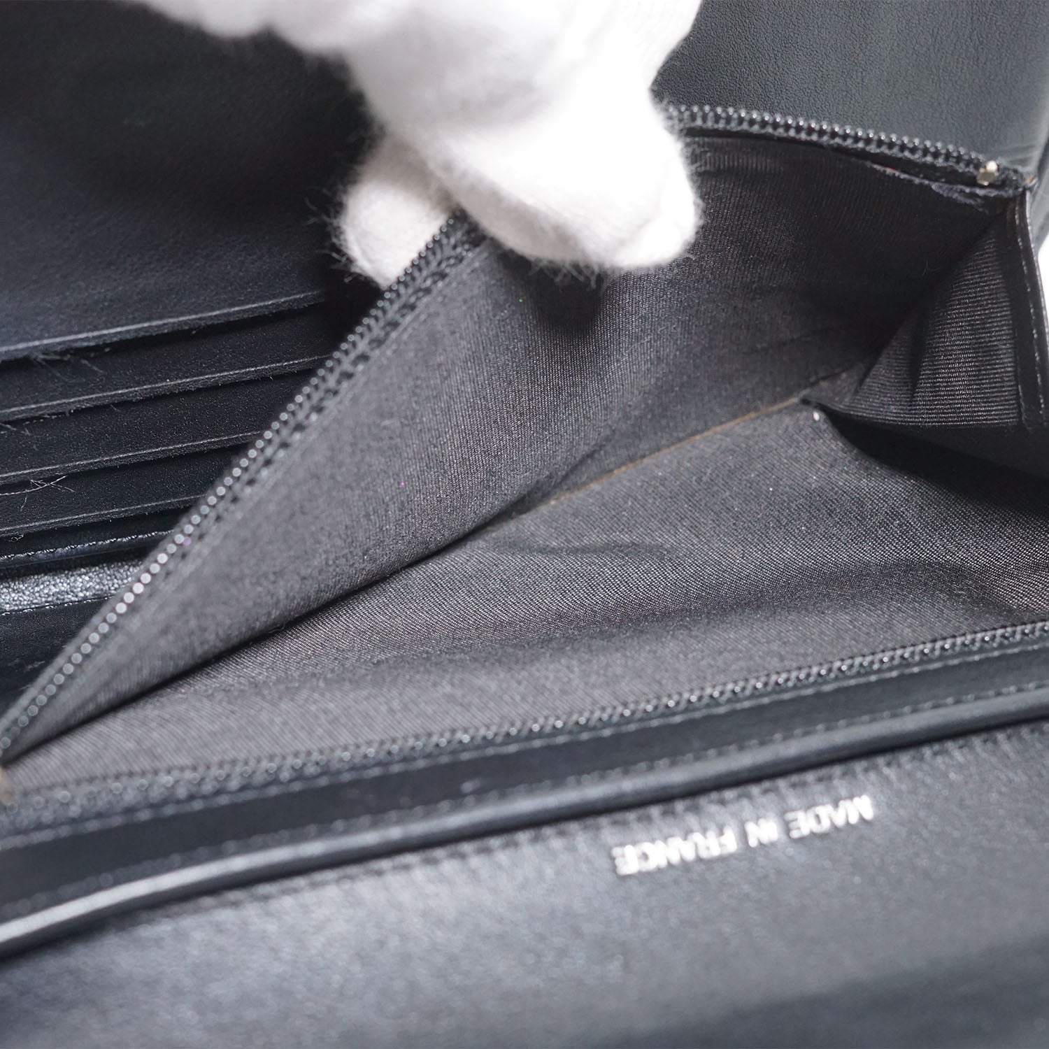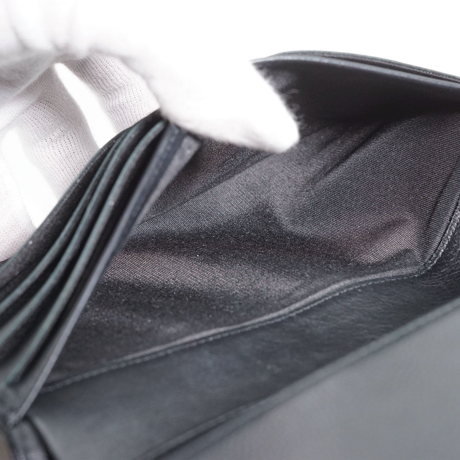 Metallic CC Logo Bi-fold Long Wallet Black Leather