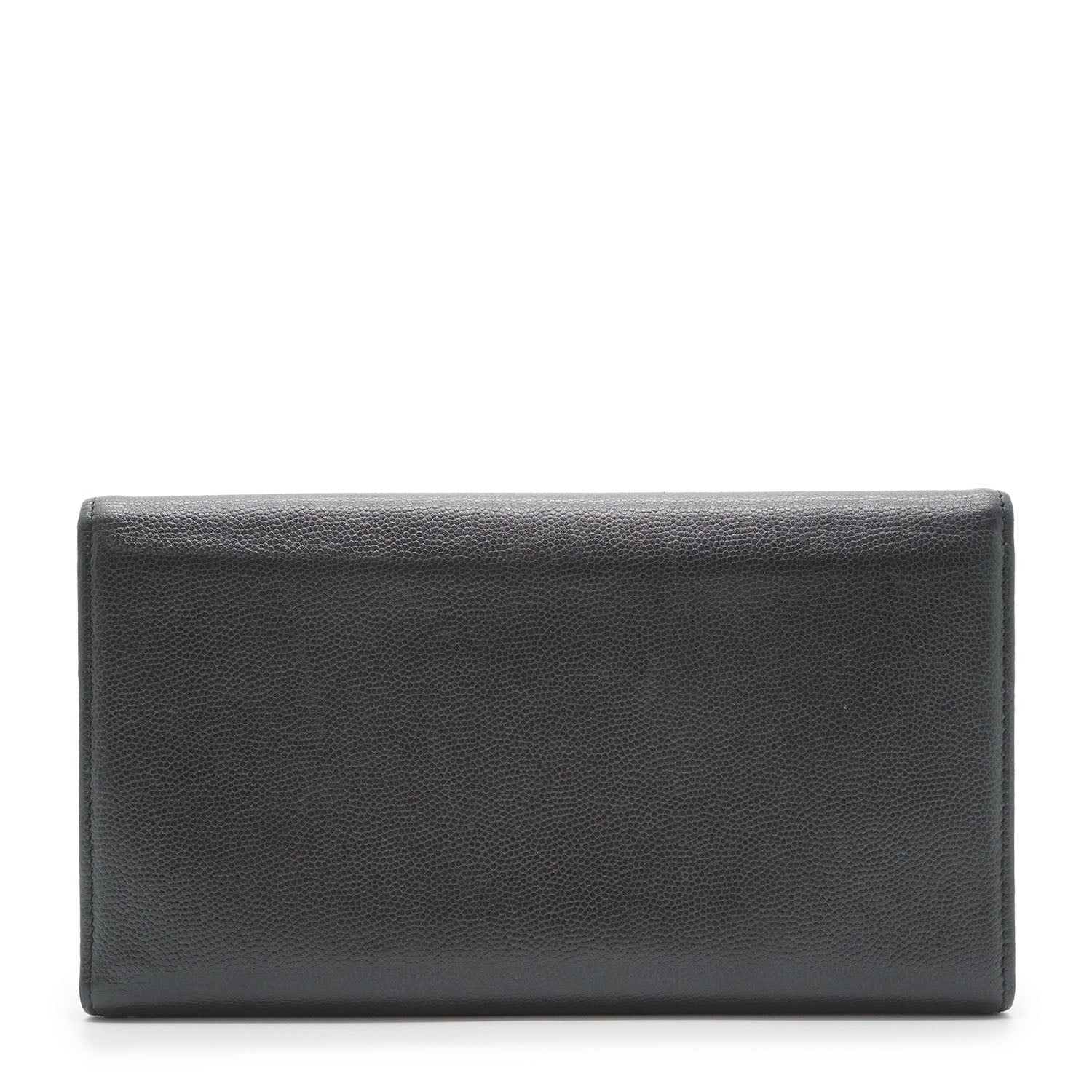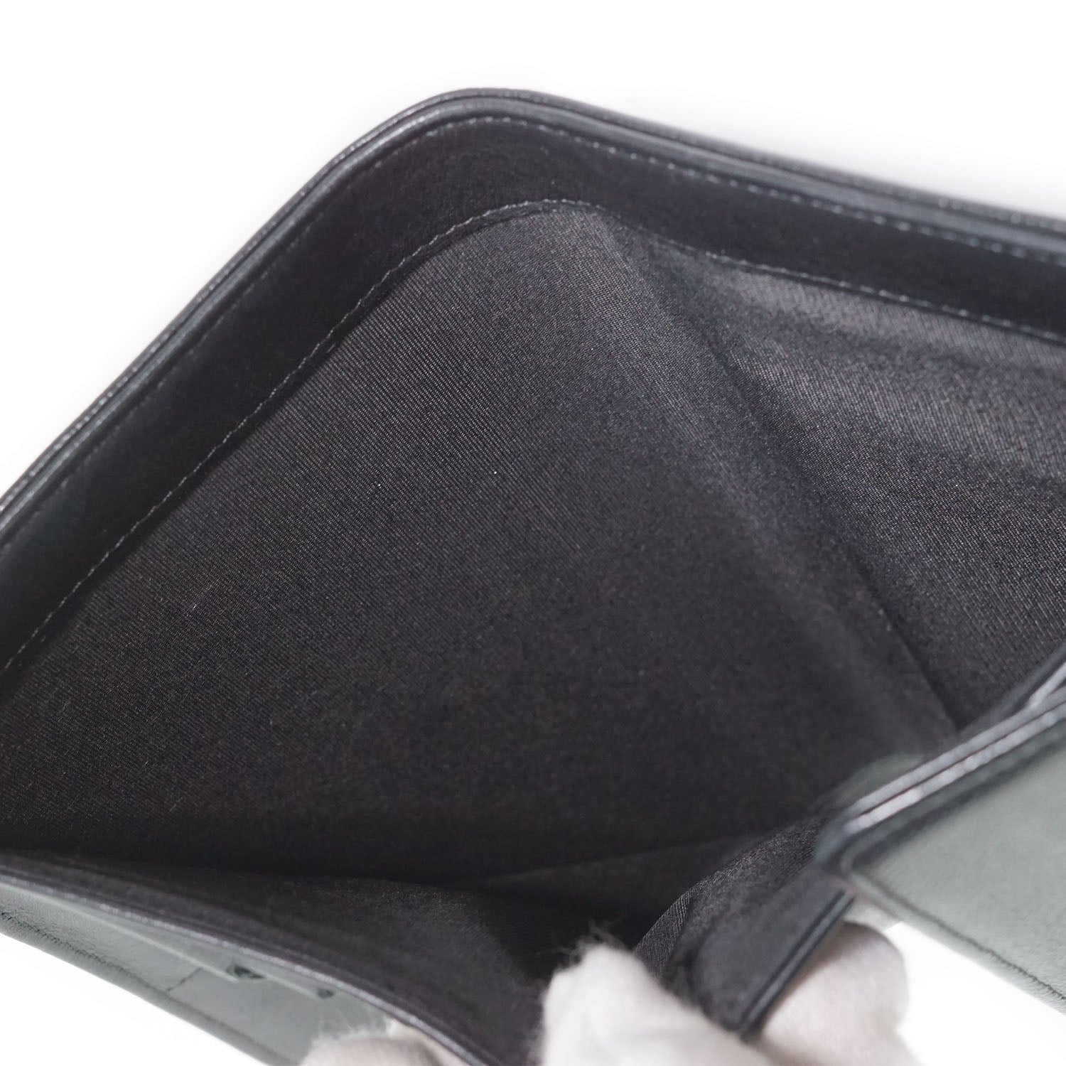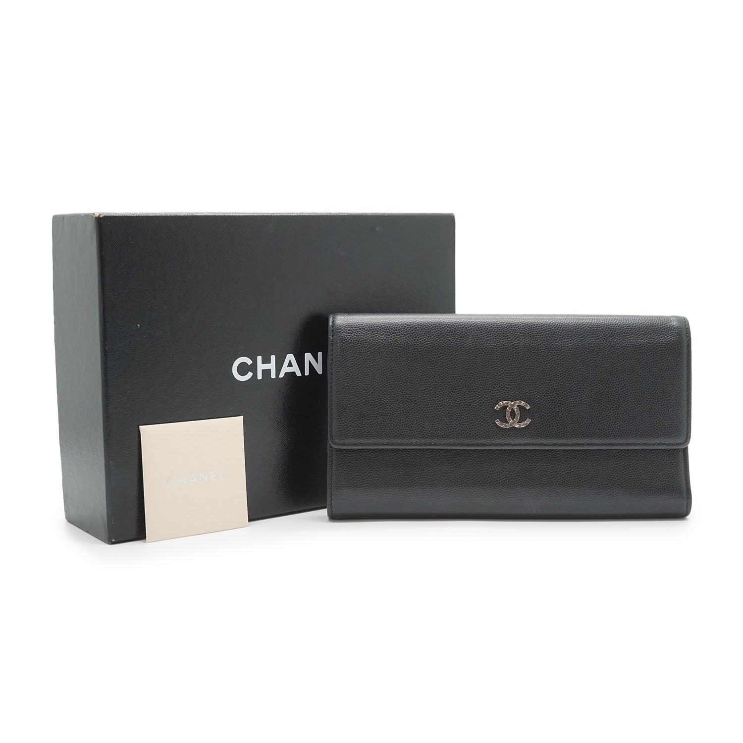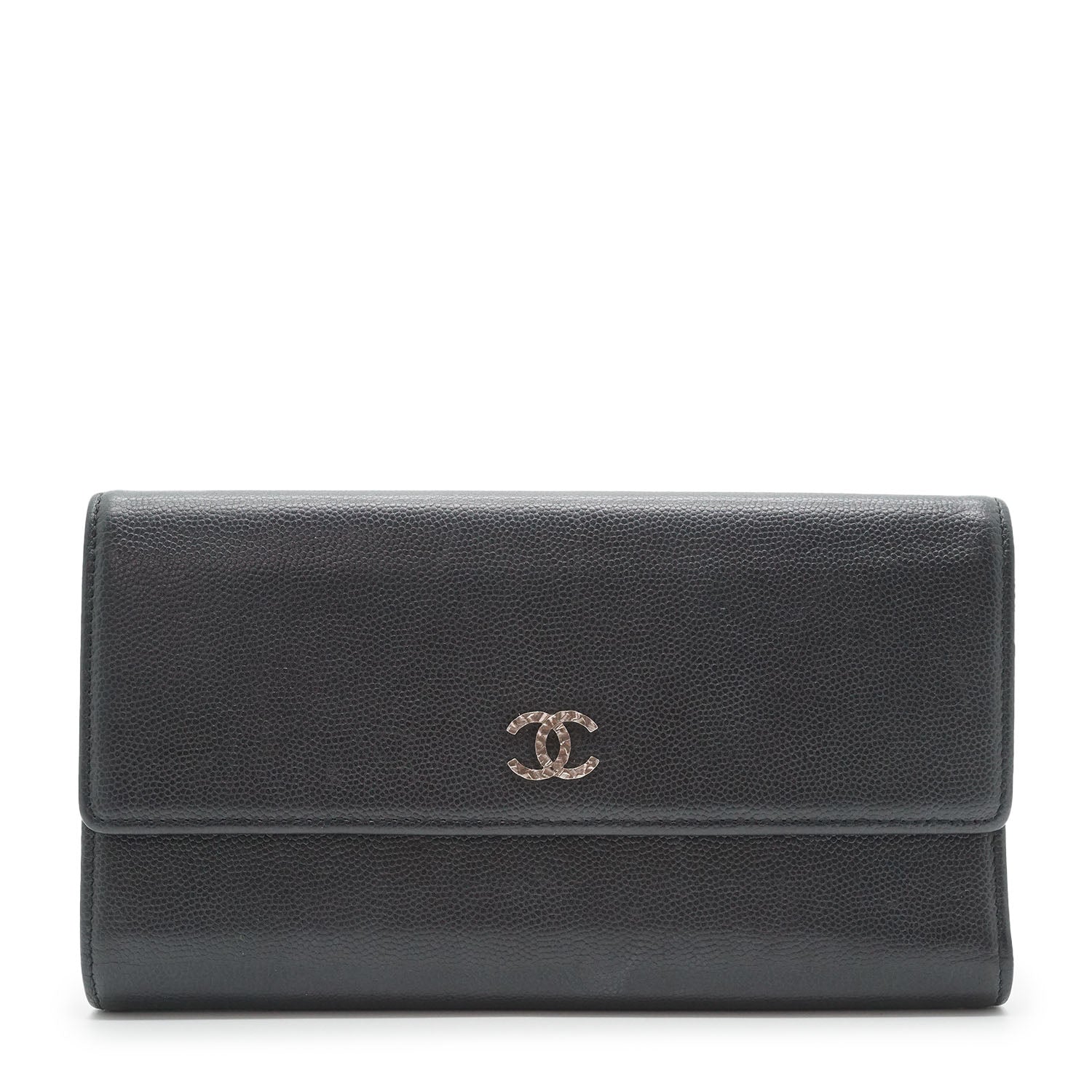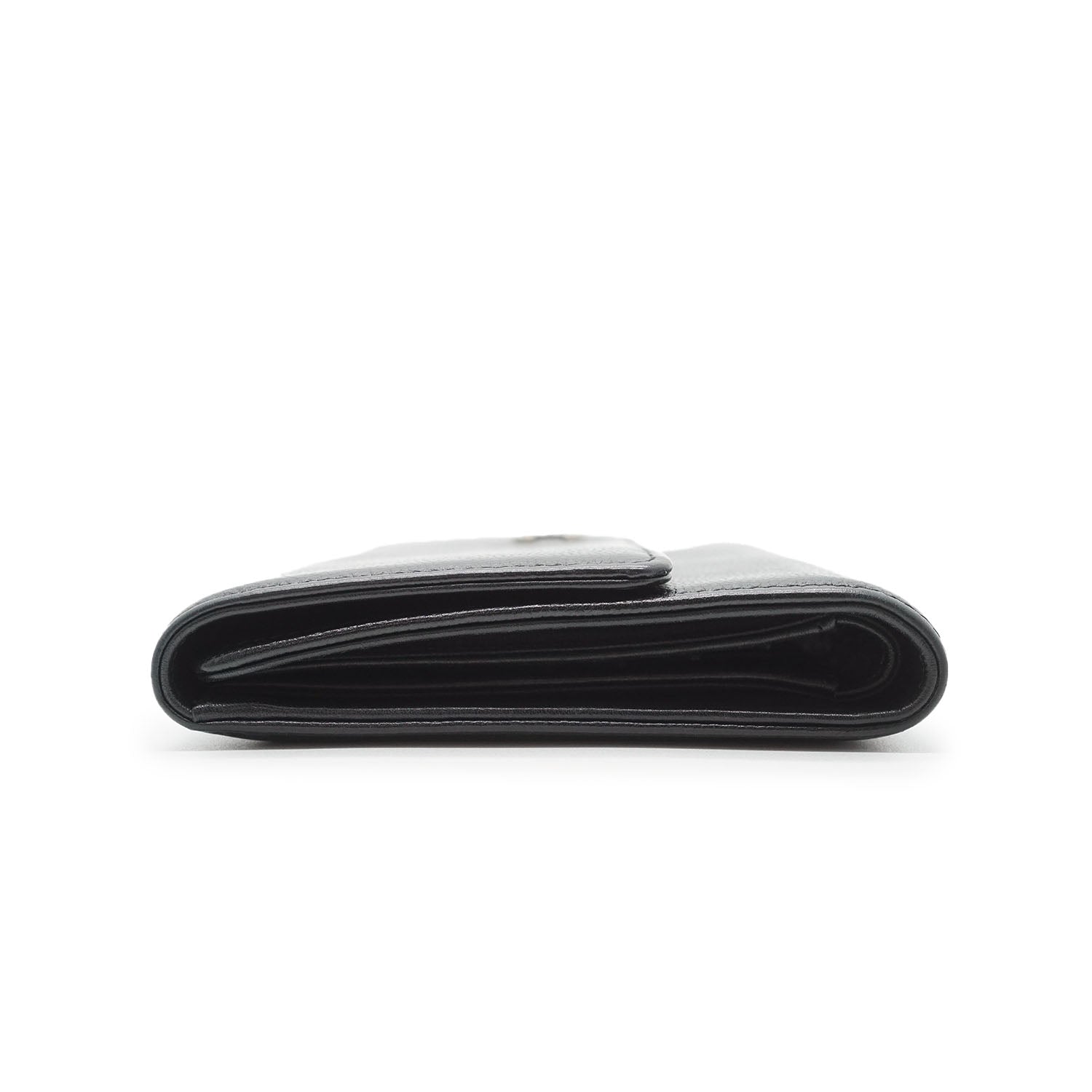 Metallic CC Logo Bi-fold Long Wallet Black Leather