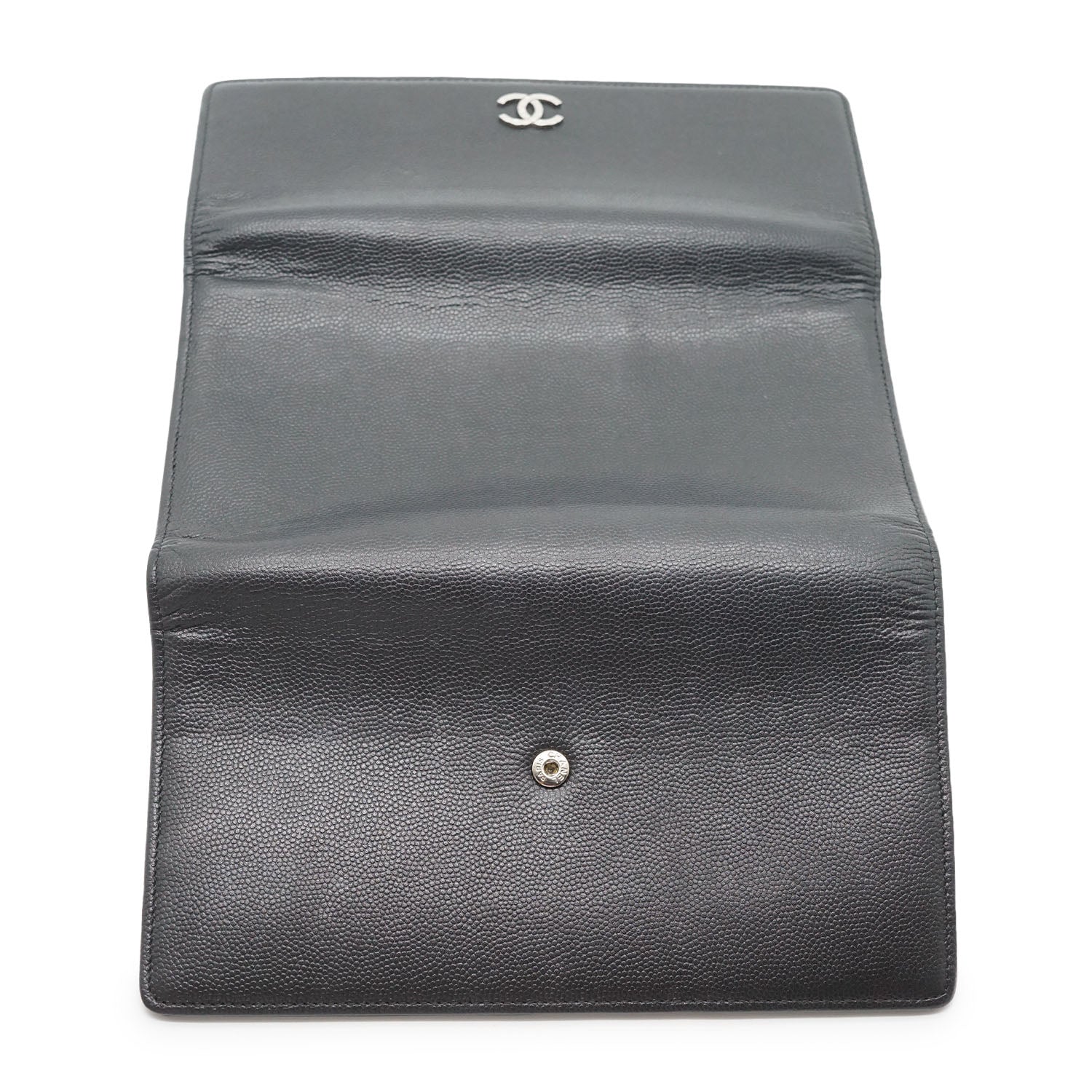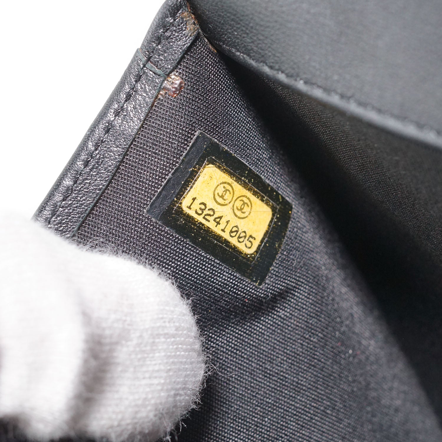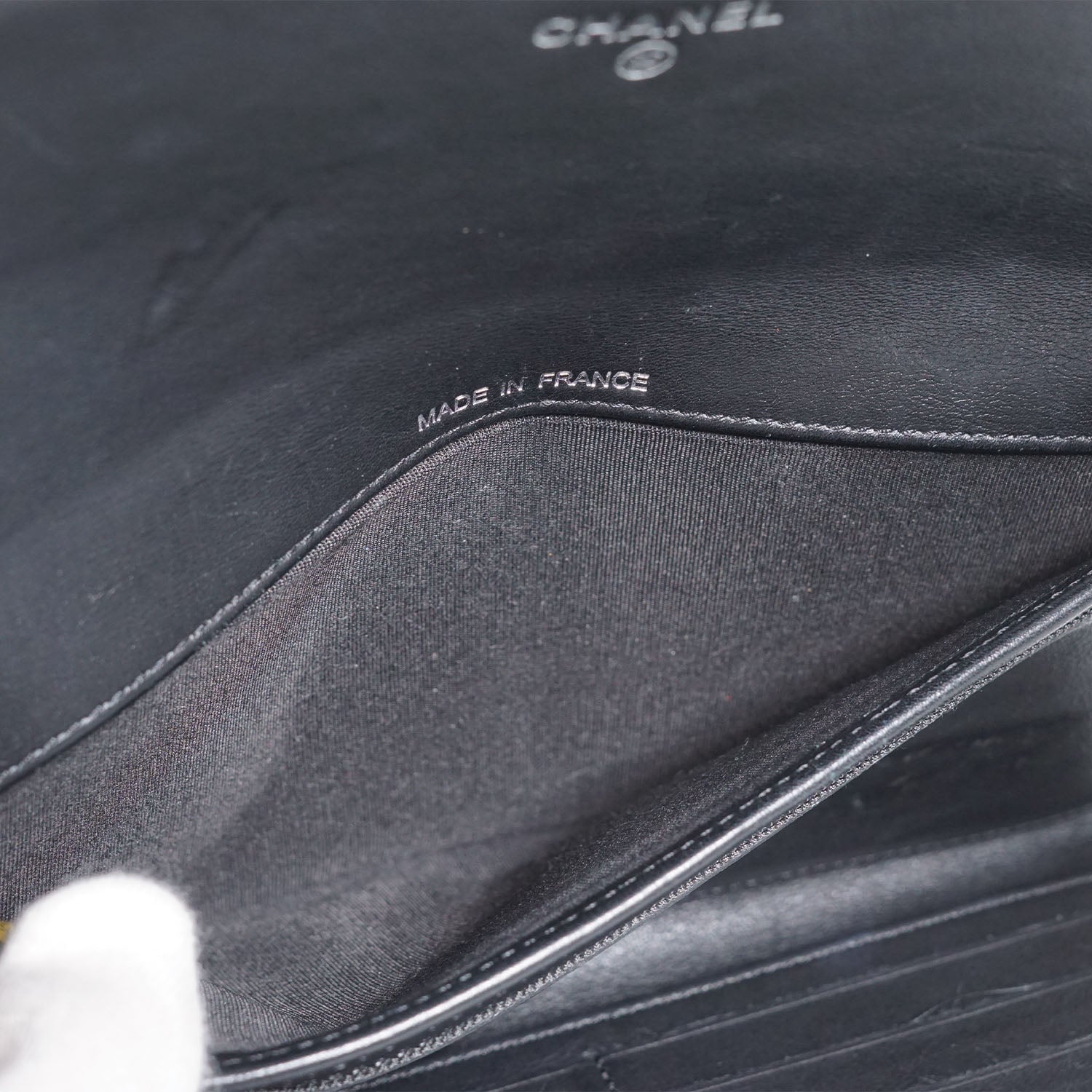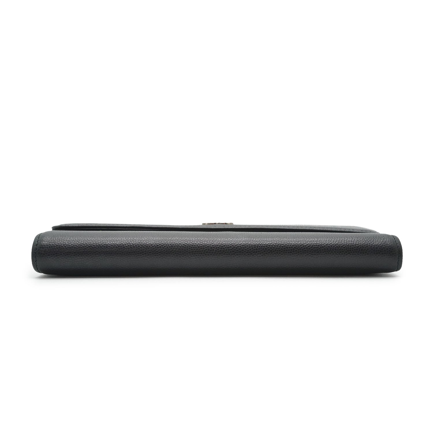 Metallic CC Logo Bi-fold Long Wallet Black Leather