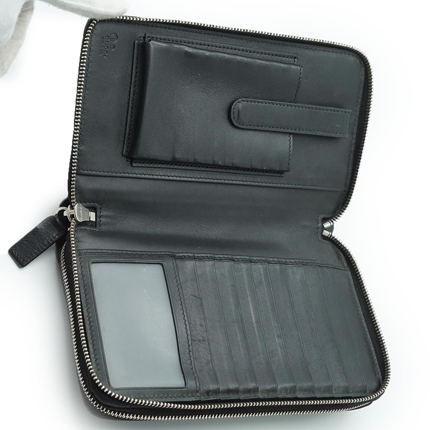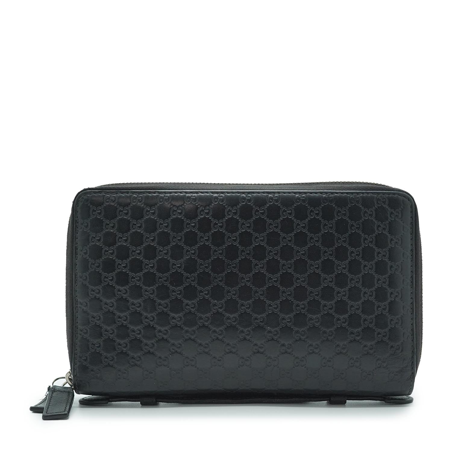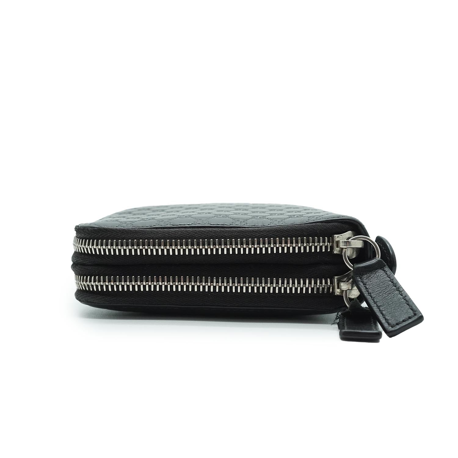 Microguccissima Signature Leather Long Zip Around Wallet Black Leather