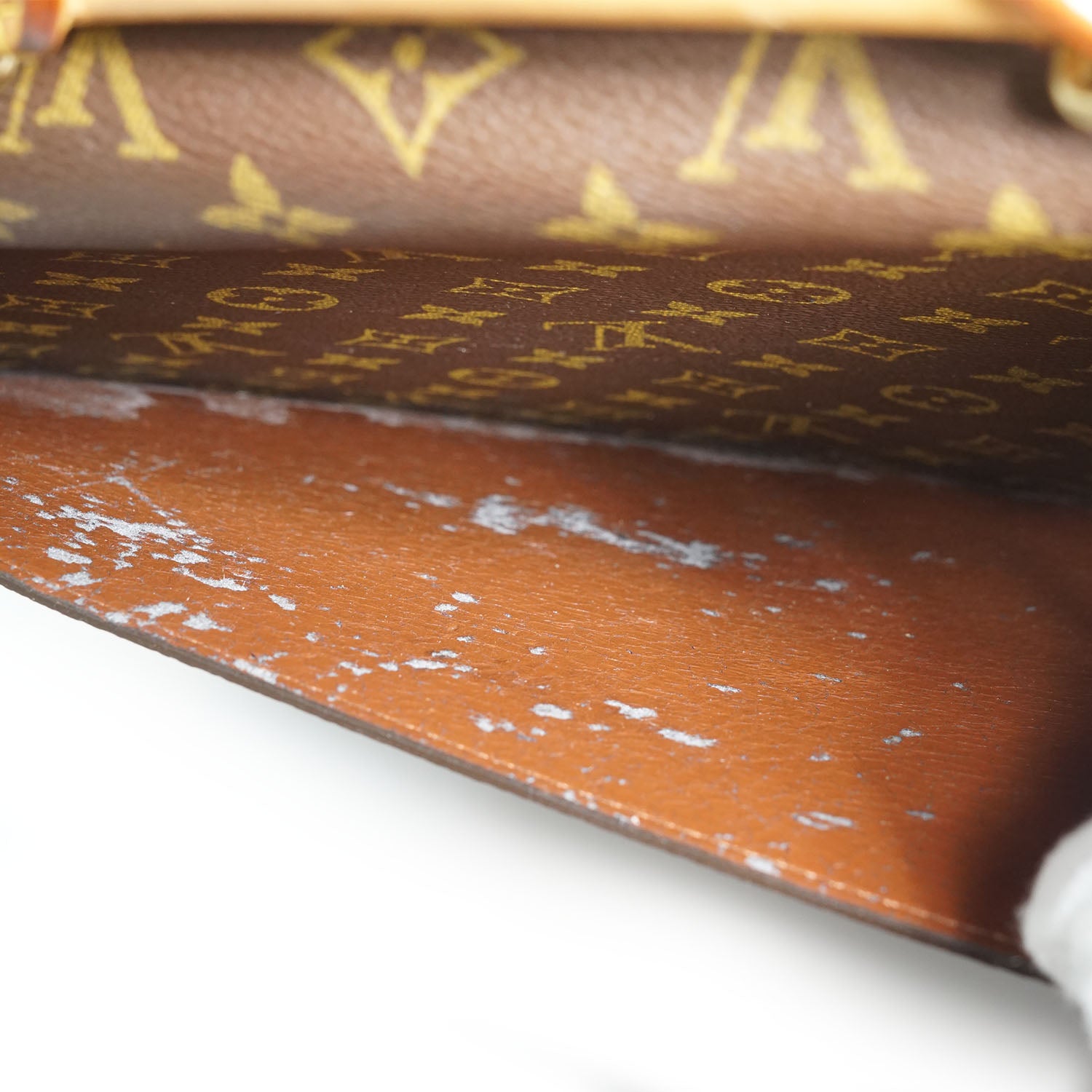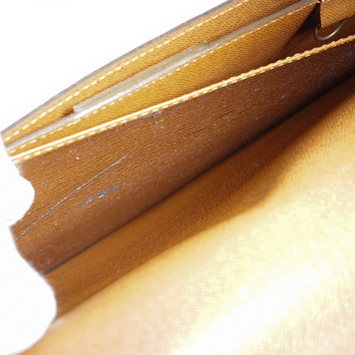 Peeling: Slight peeling on the corners, leather cracking throughout one of the inside pockets and the back pocket