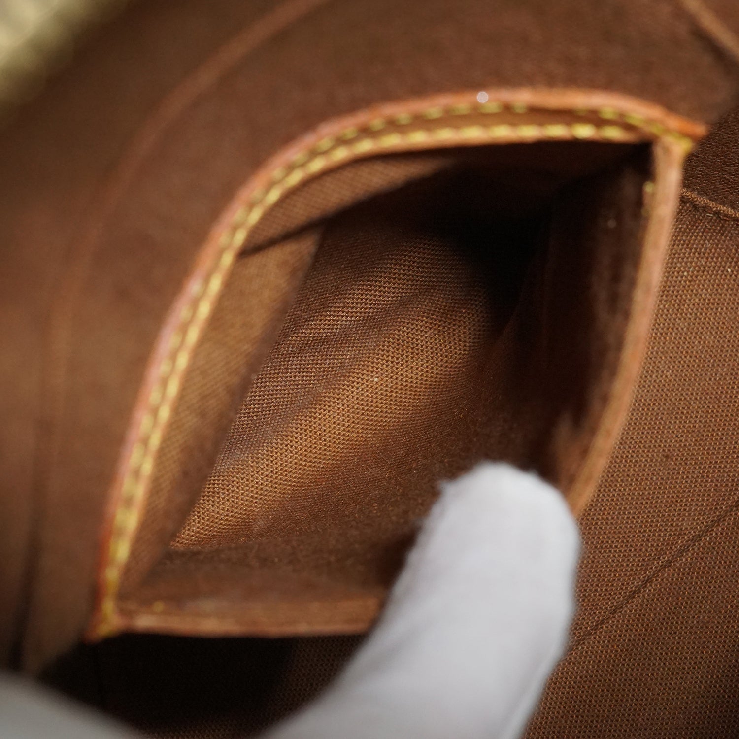 Peeling: Minor leather cracking on the top handles, slight pilling on the inside fabric