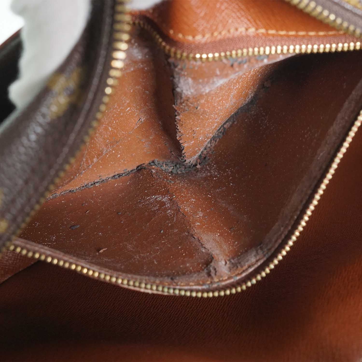 Peeling: Noticeable leather peeling on the front pocket and inside pocket