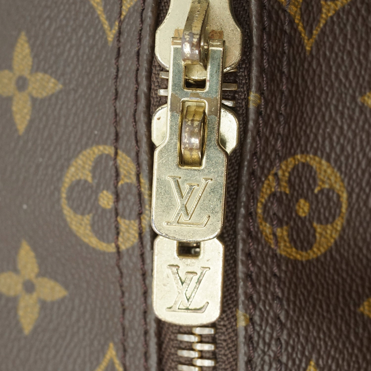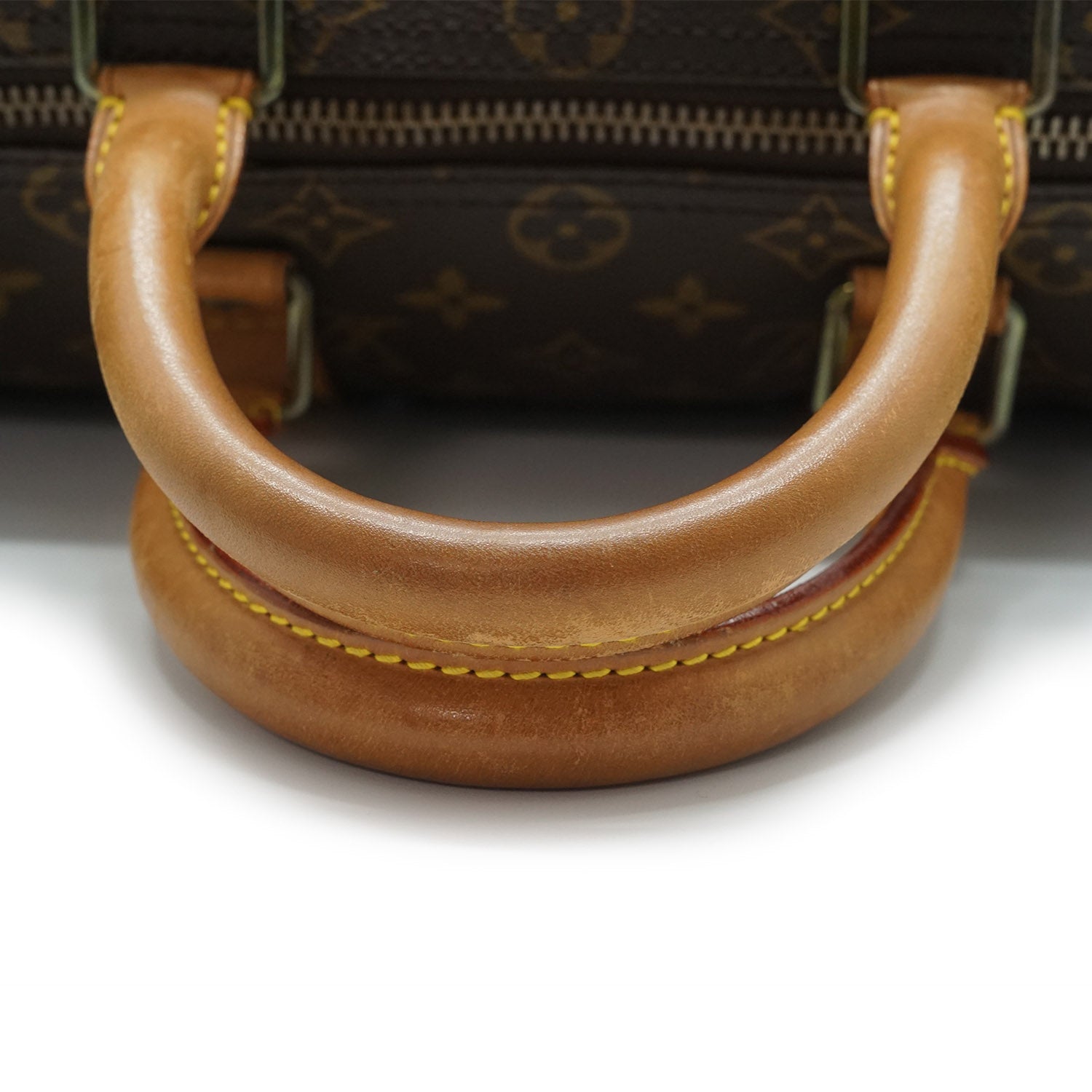 Worn: Some signs of wear overall, some loose threads on the top handle