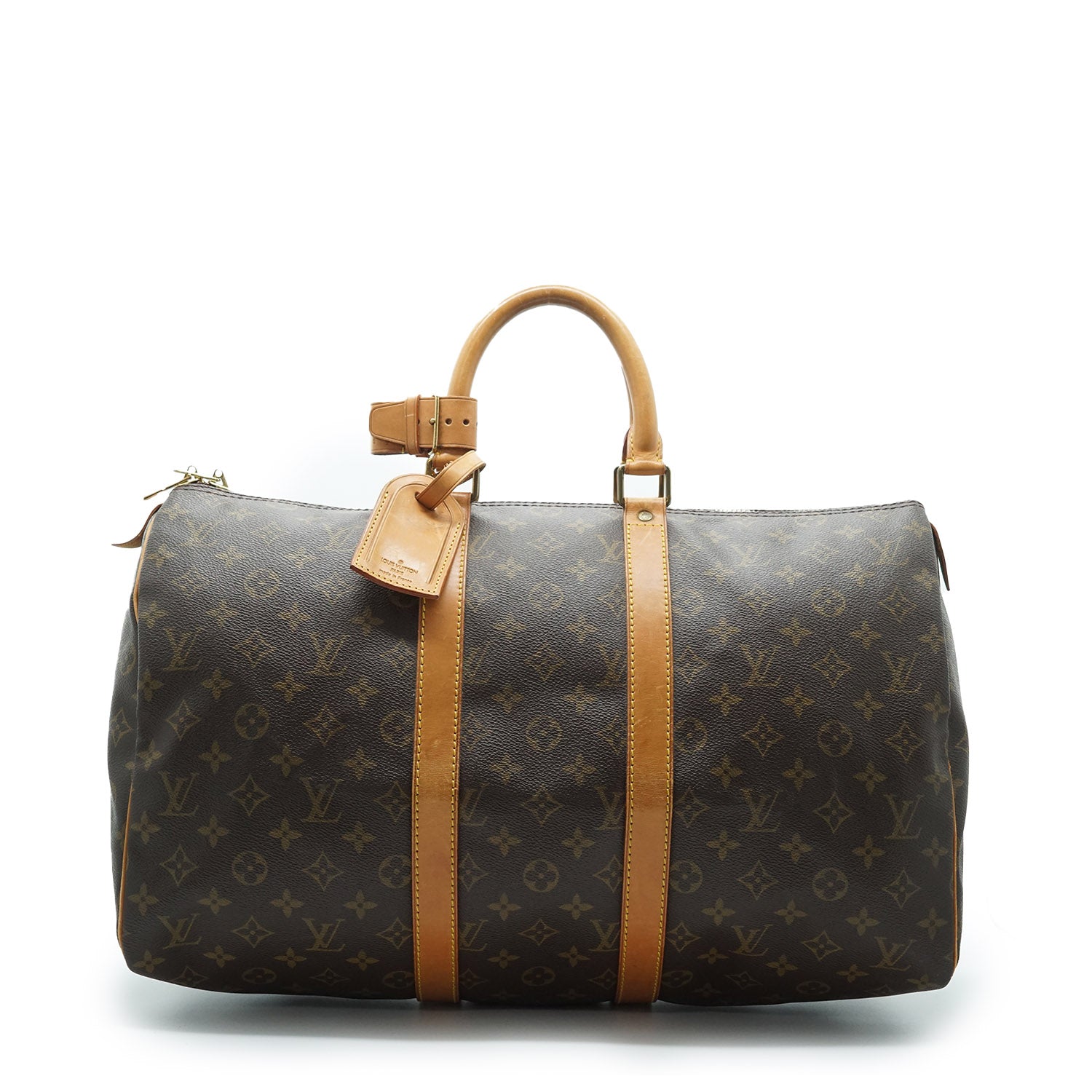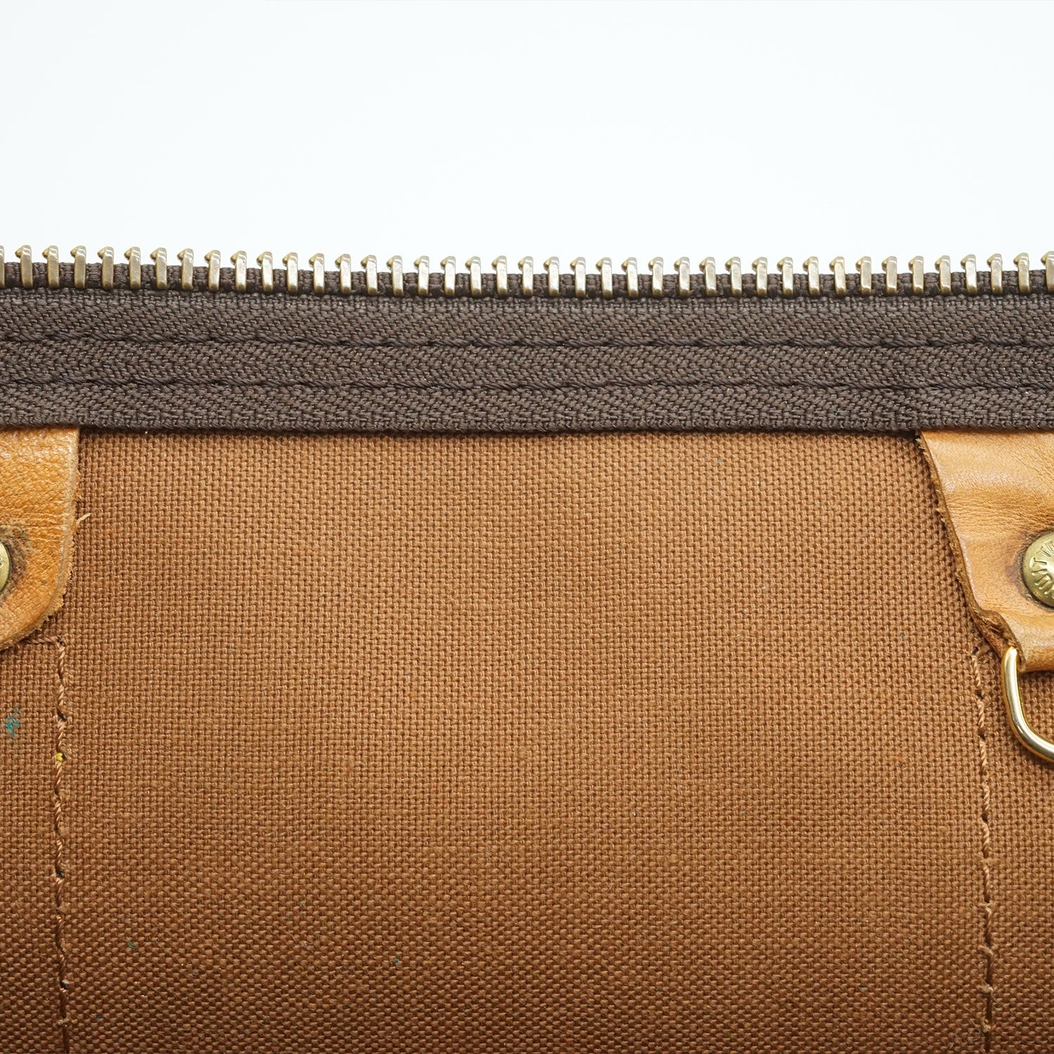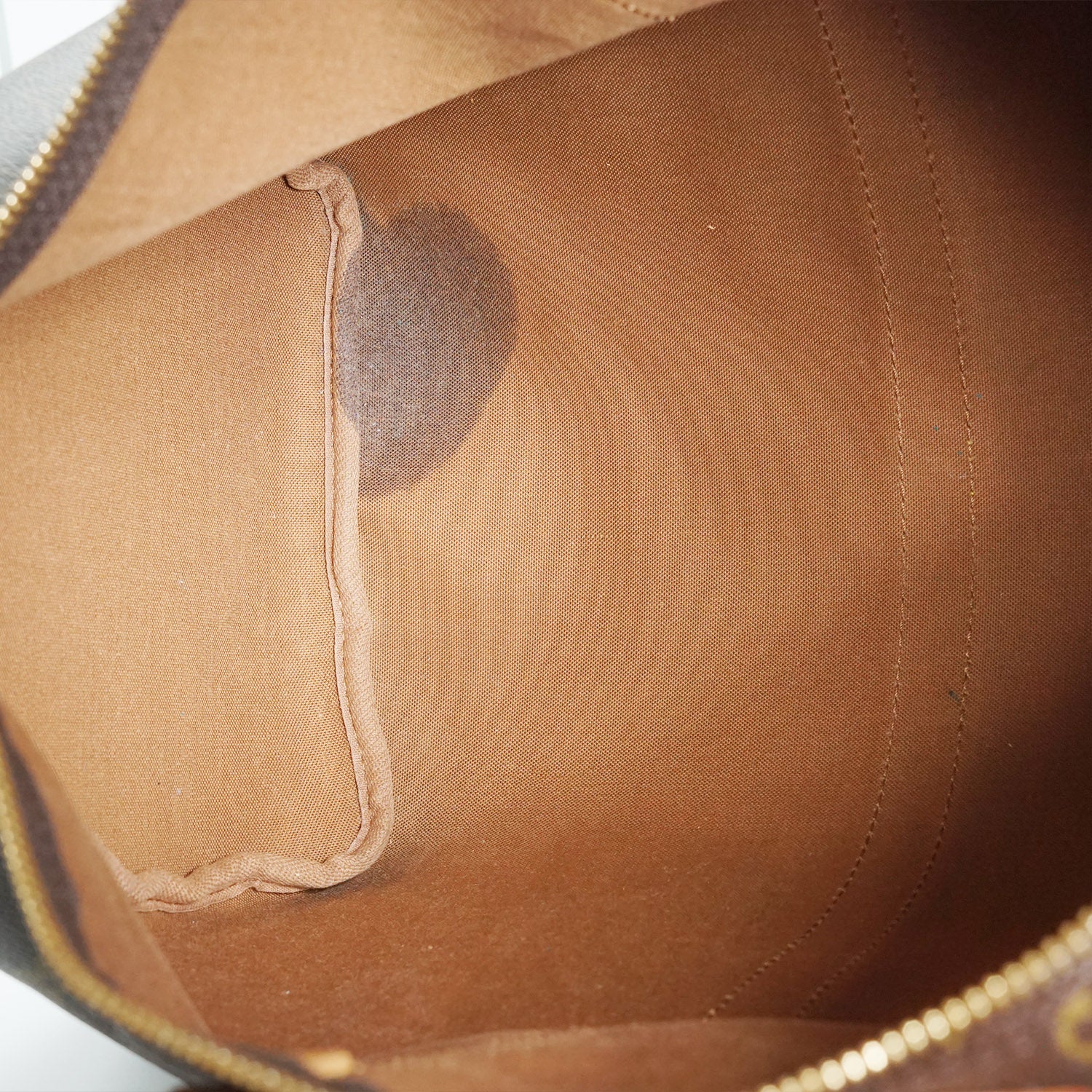 Discoloration: Some hardware tarnish, visible leather discoloration on the top handles