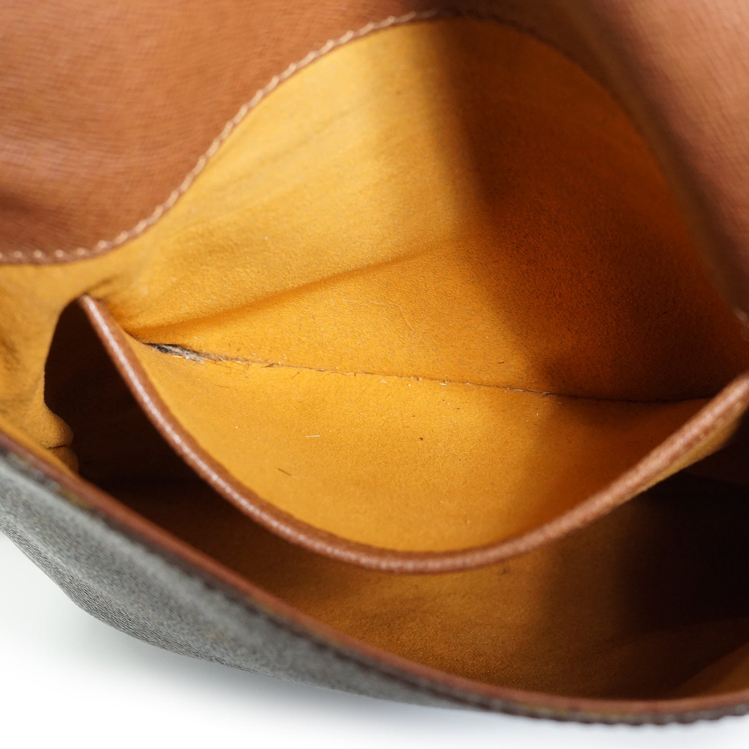 Stain: Some stains on the inside/inside pocket, some water stains on the leather parts