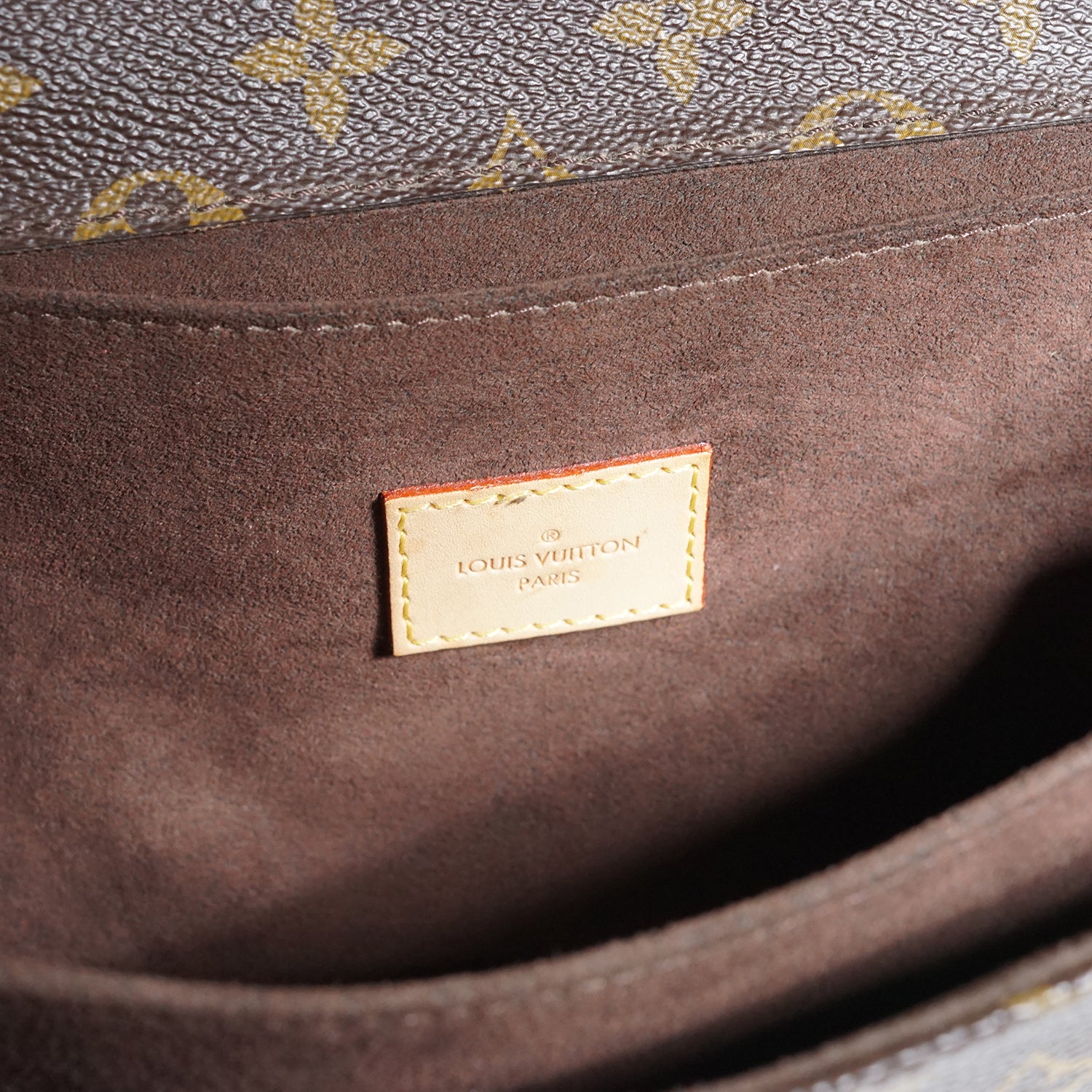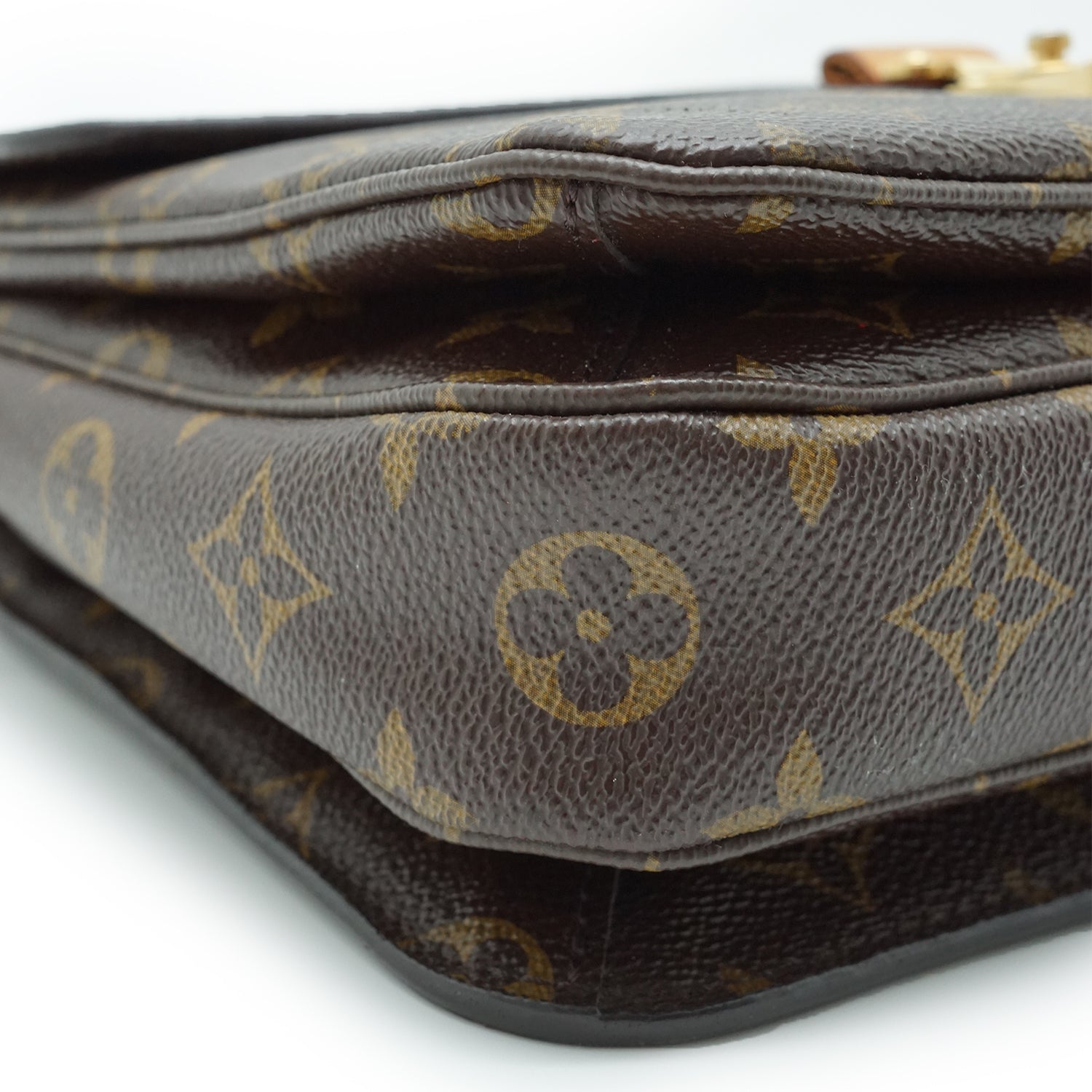 Discoloration: Slight hardware tarnish, some discoloration on the leather parts