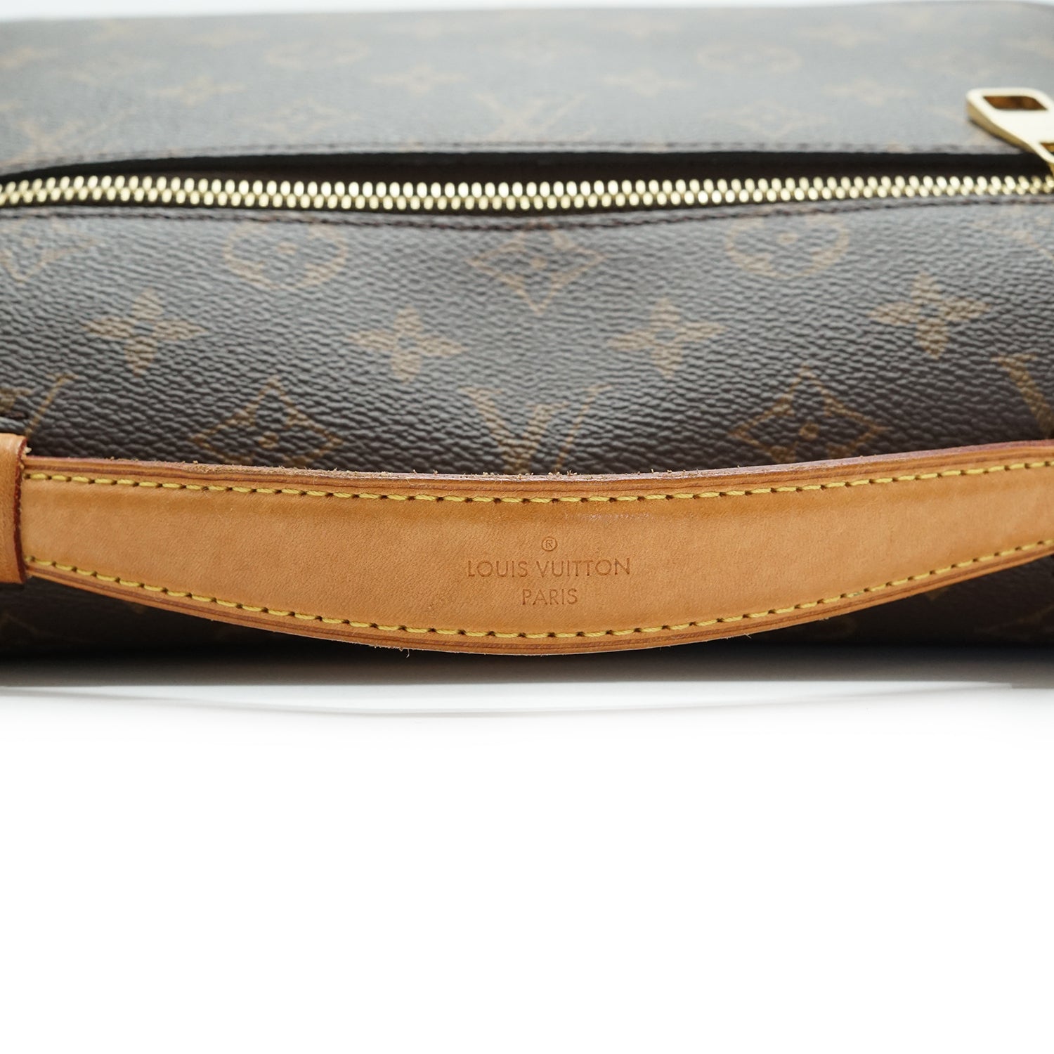 Discoloration: Slight hardware tarnish, minor discoloration on the leather parts/minor darkening due to hardware