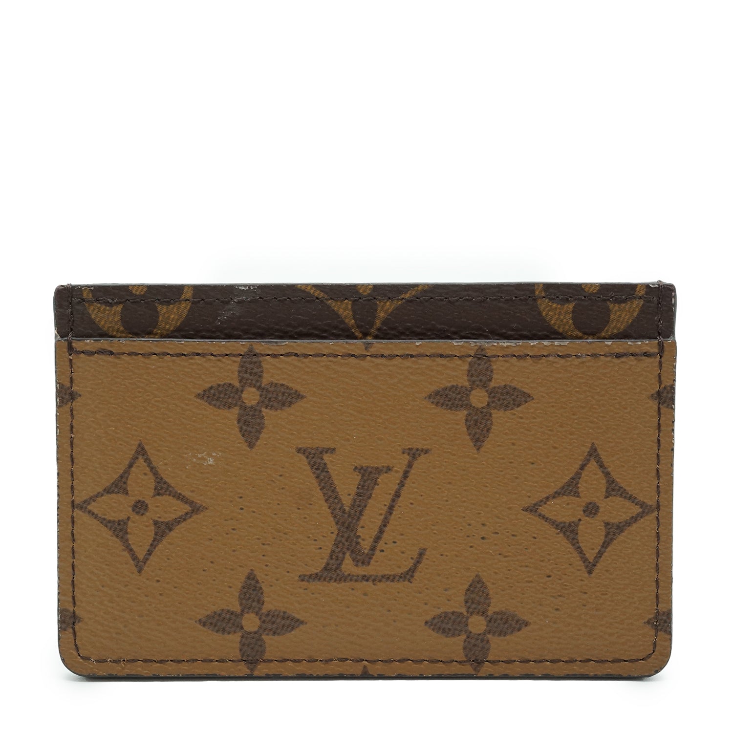 Monogram Reverse Porte-Cartes Brown Canvas, Leather