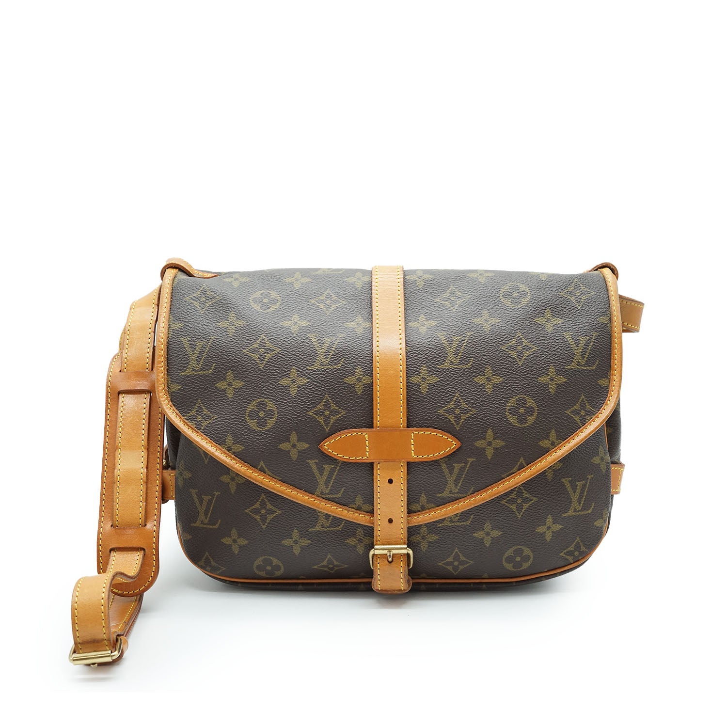 Monogram Saumur Shoulder Bag 30 Brown Canvas, Leather