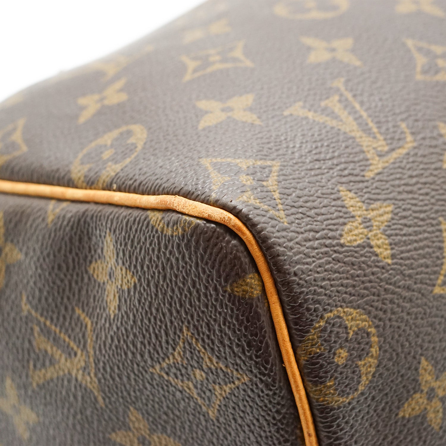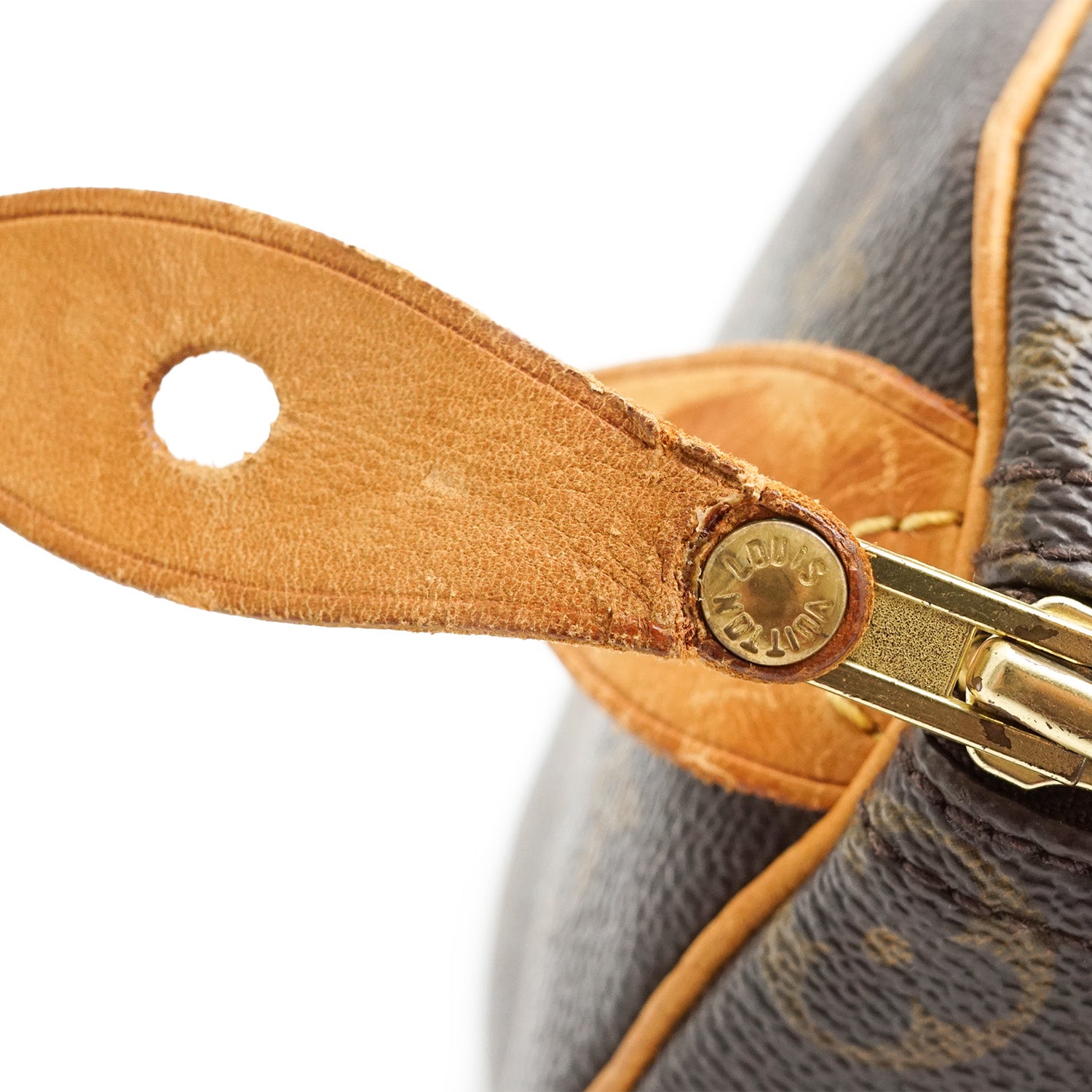 Peeling: Minor leather cracking and peeling on the top handle (loose threads)