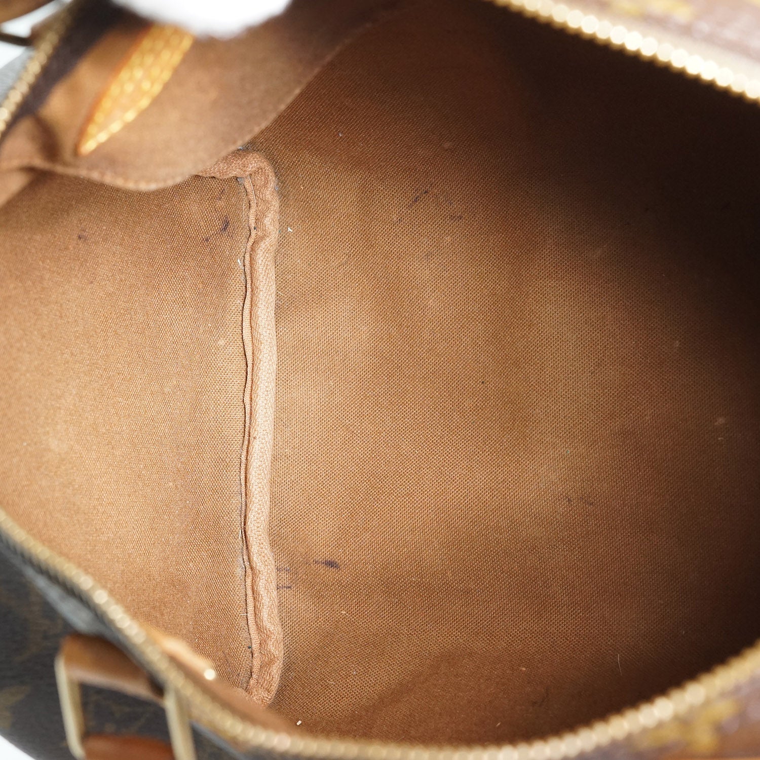 Discoloration: Hardware tarnish, some discoloration on the leather parts