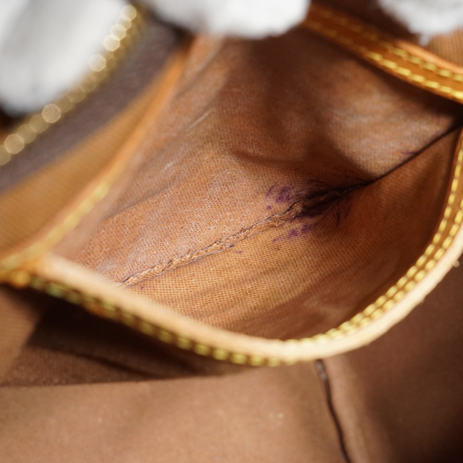 Scratch: Minor scratches on the outside canvas (back side) and leather parts
