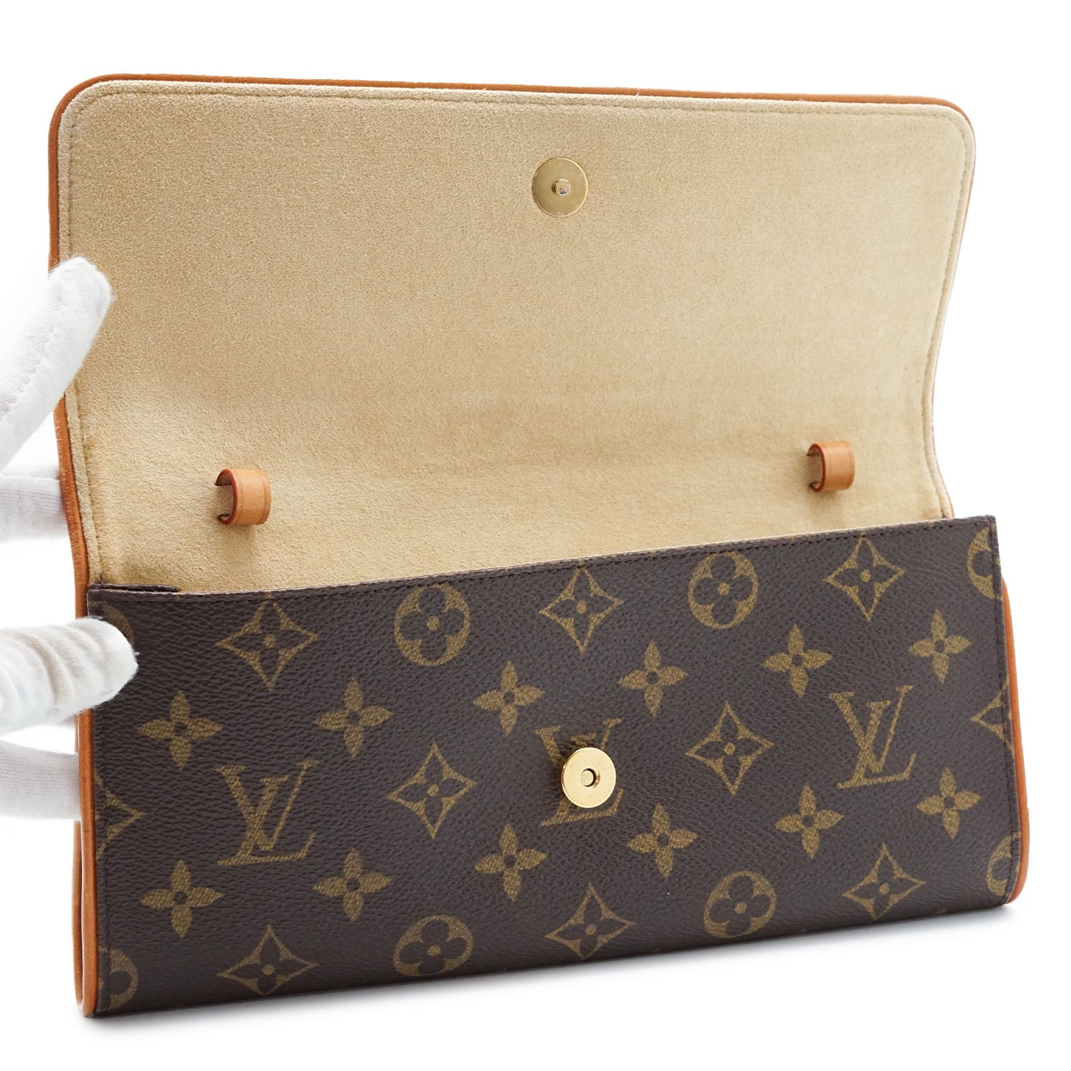Monogram Twin Pochette GM Brown Canvas, Leather