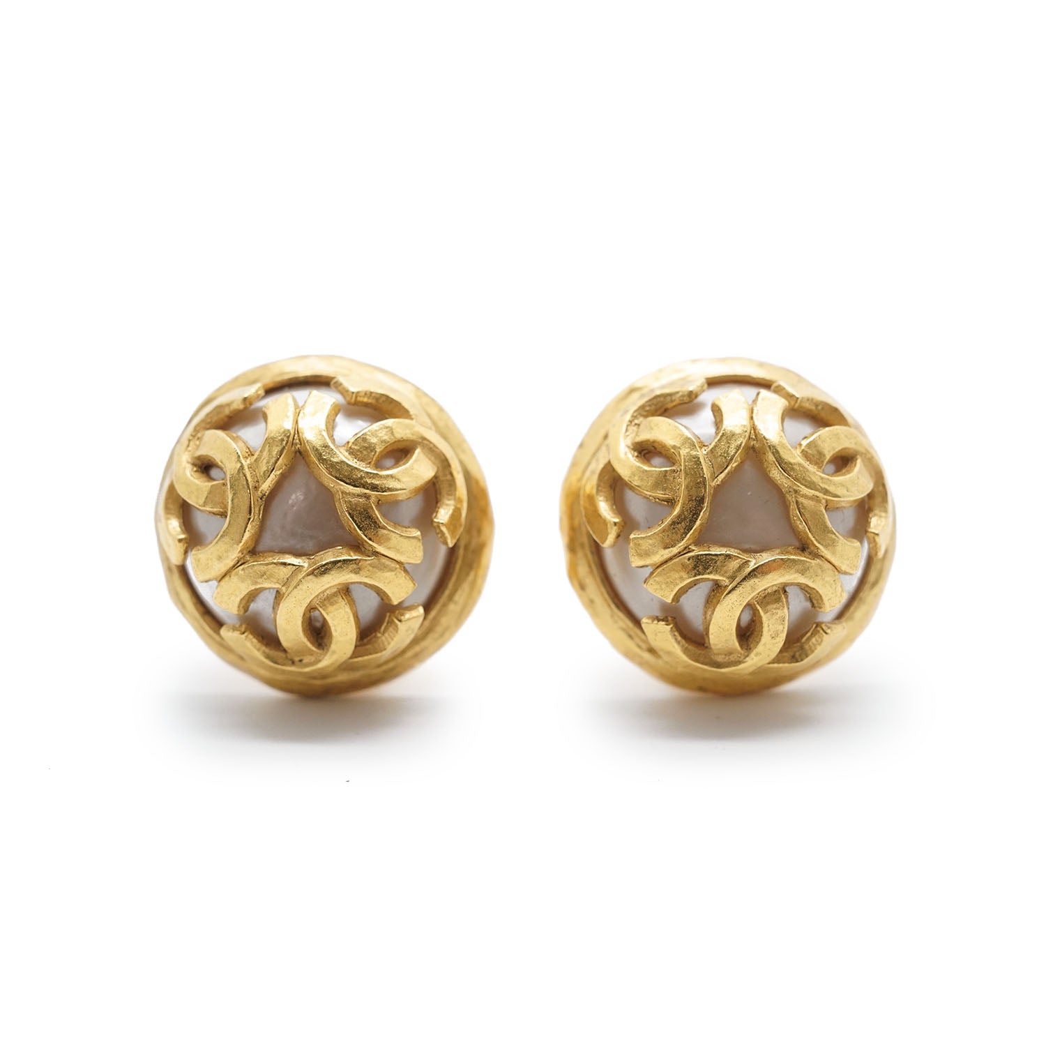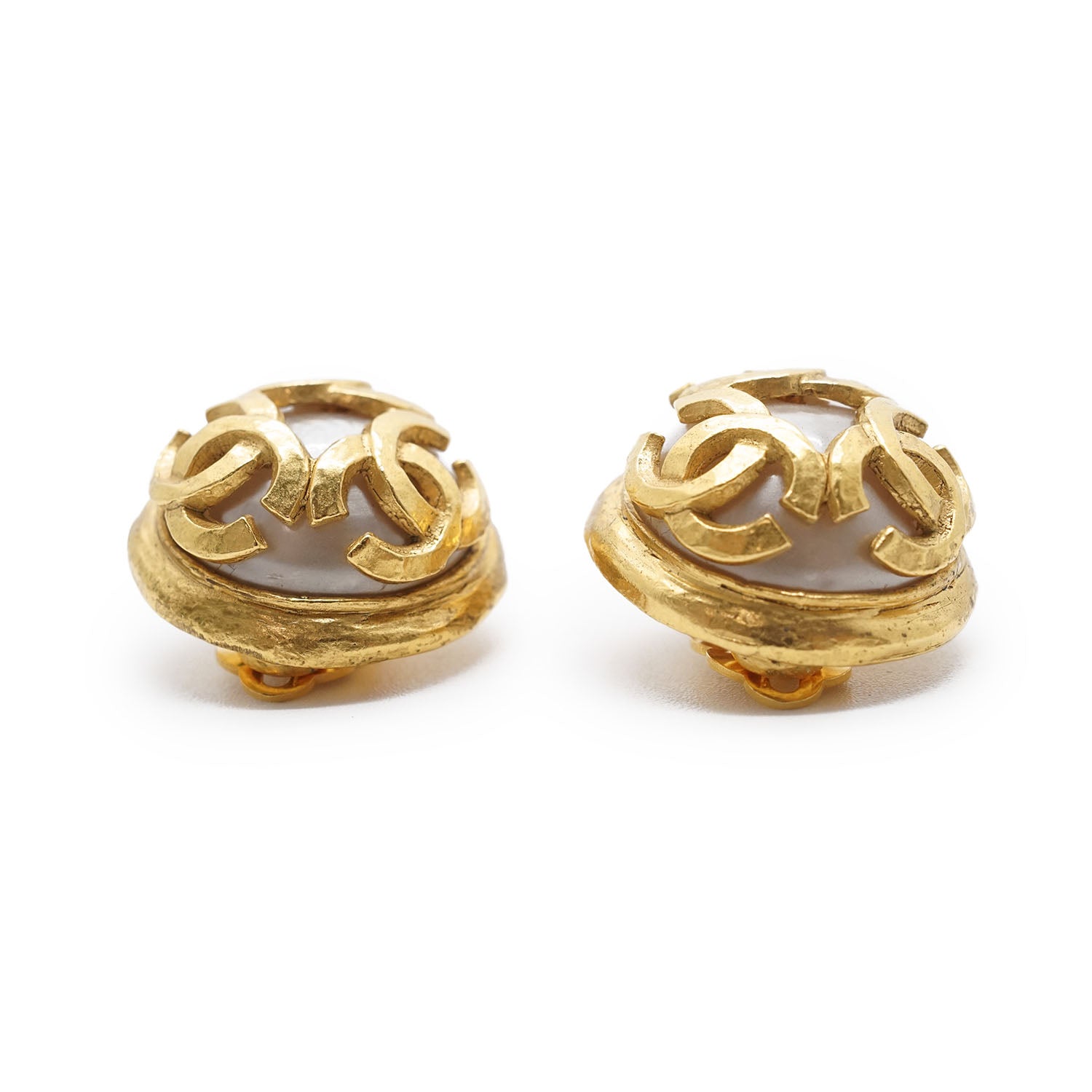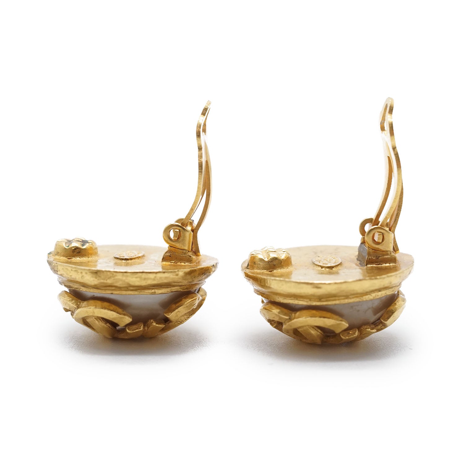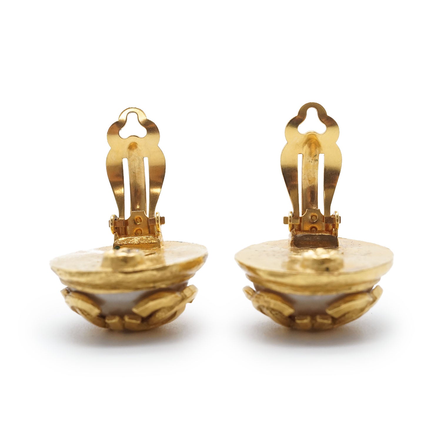Multiple CC Artificial Pearl Round Clip-On Earrings GP Gold Brass