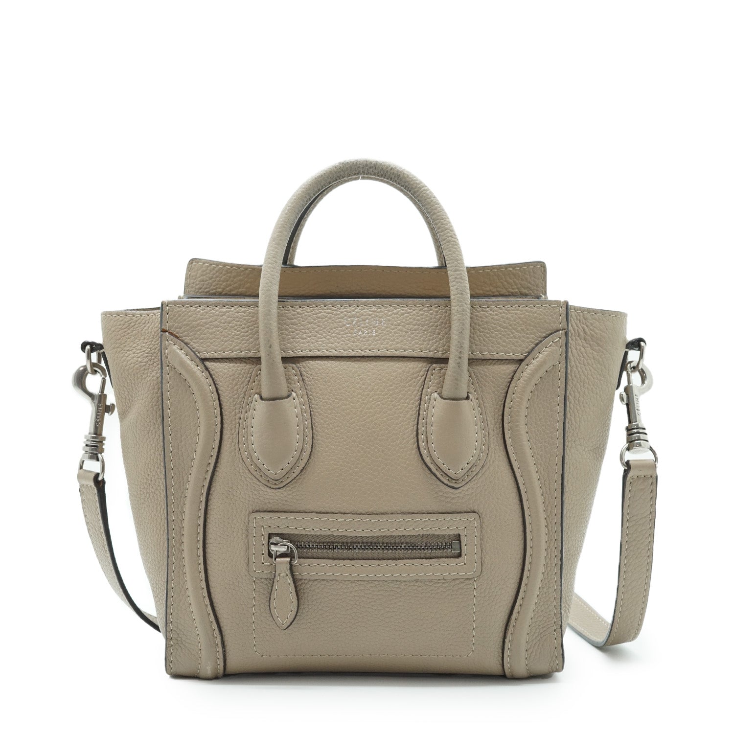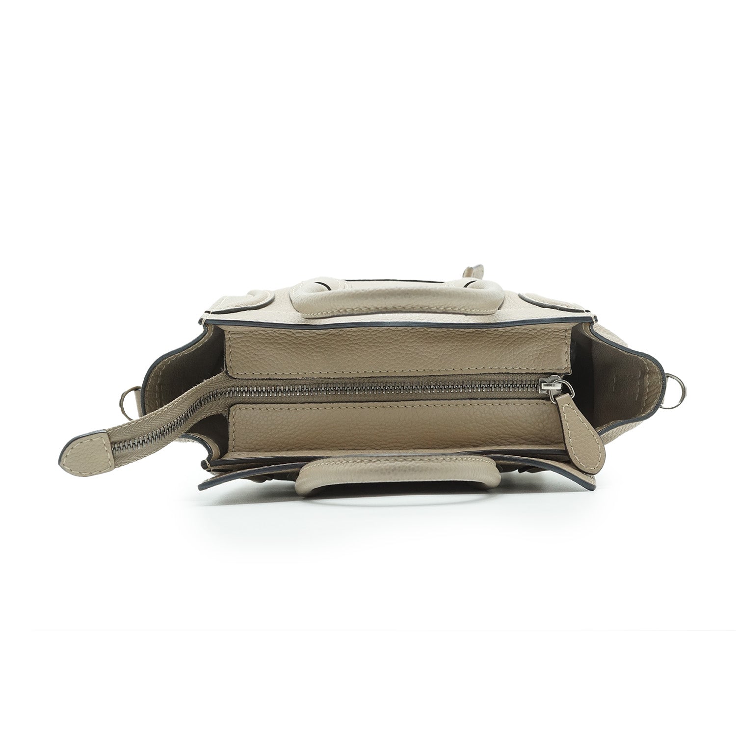 Nano Luggage Calfskin 2Way Handbag Beige Leather