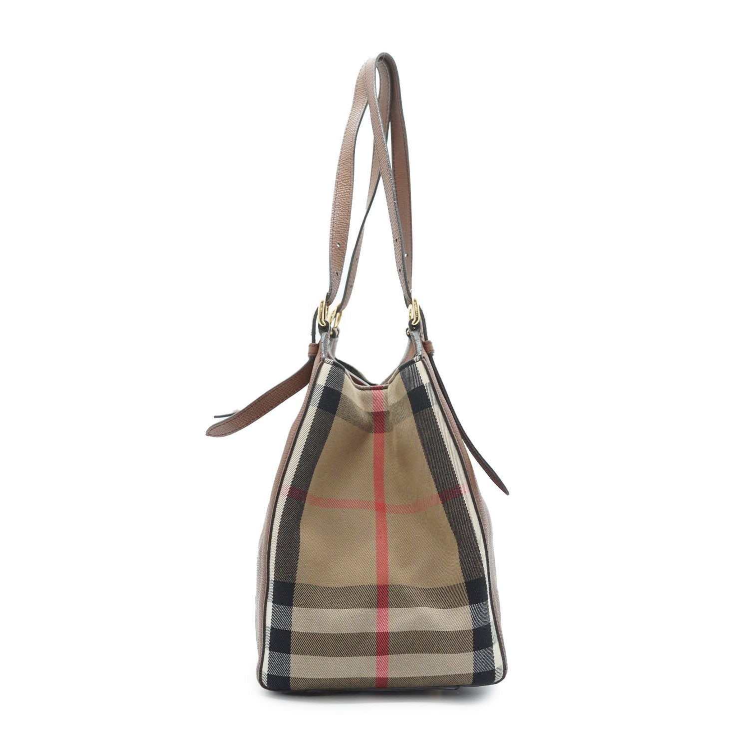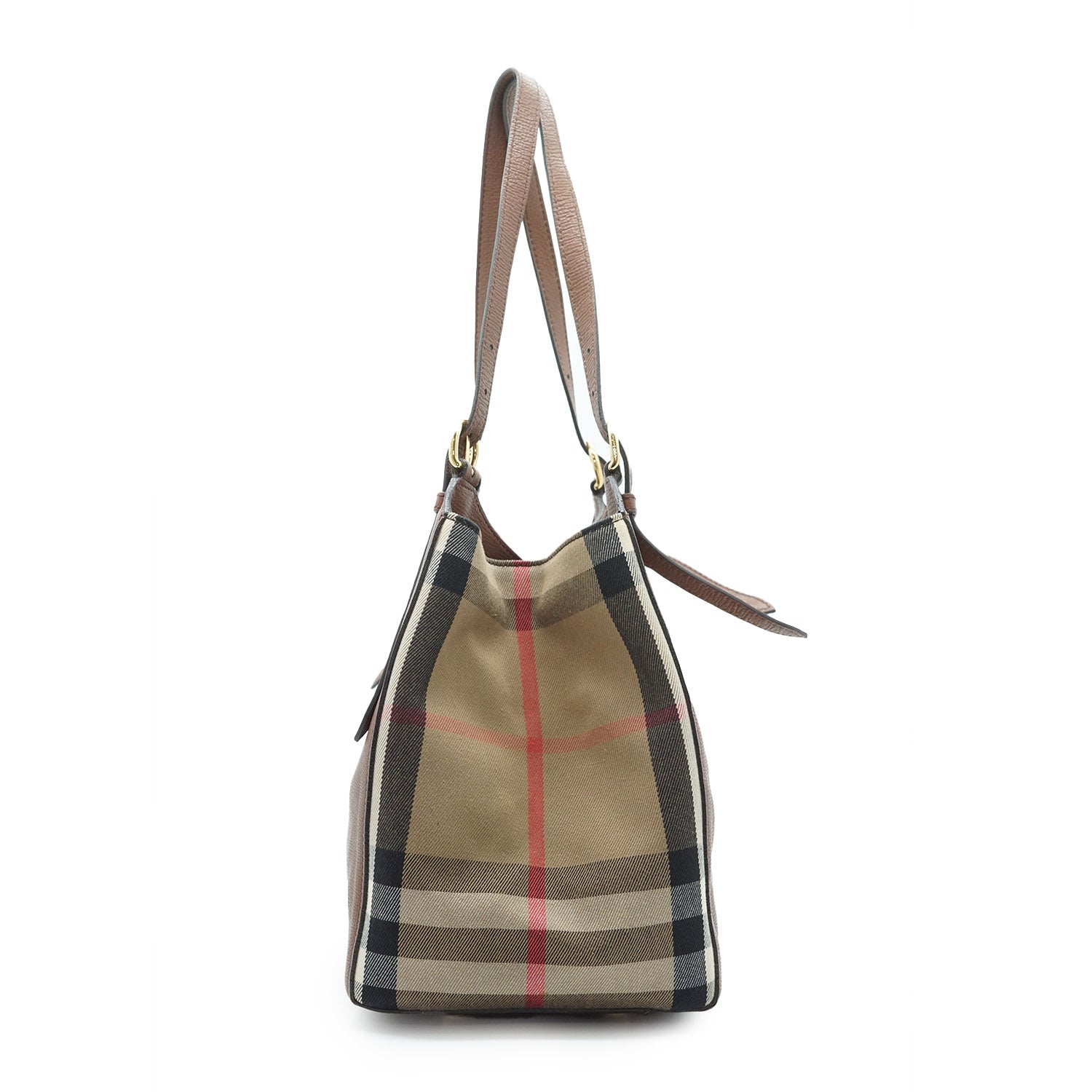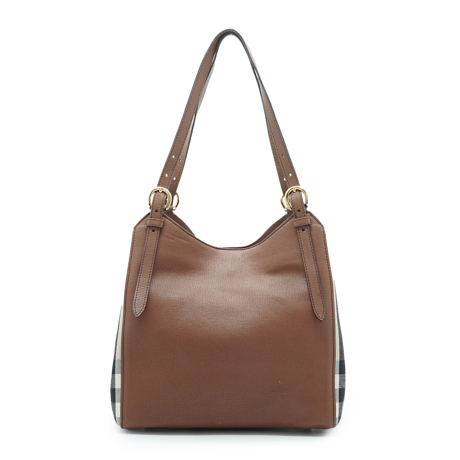 Nova Check Tote Bag Brown Canvas, Leather