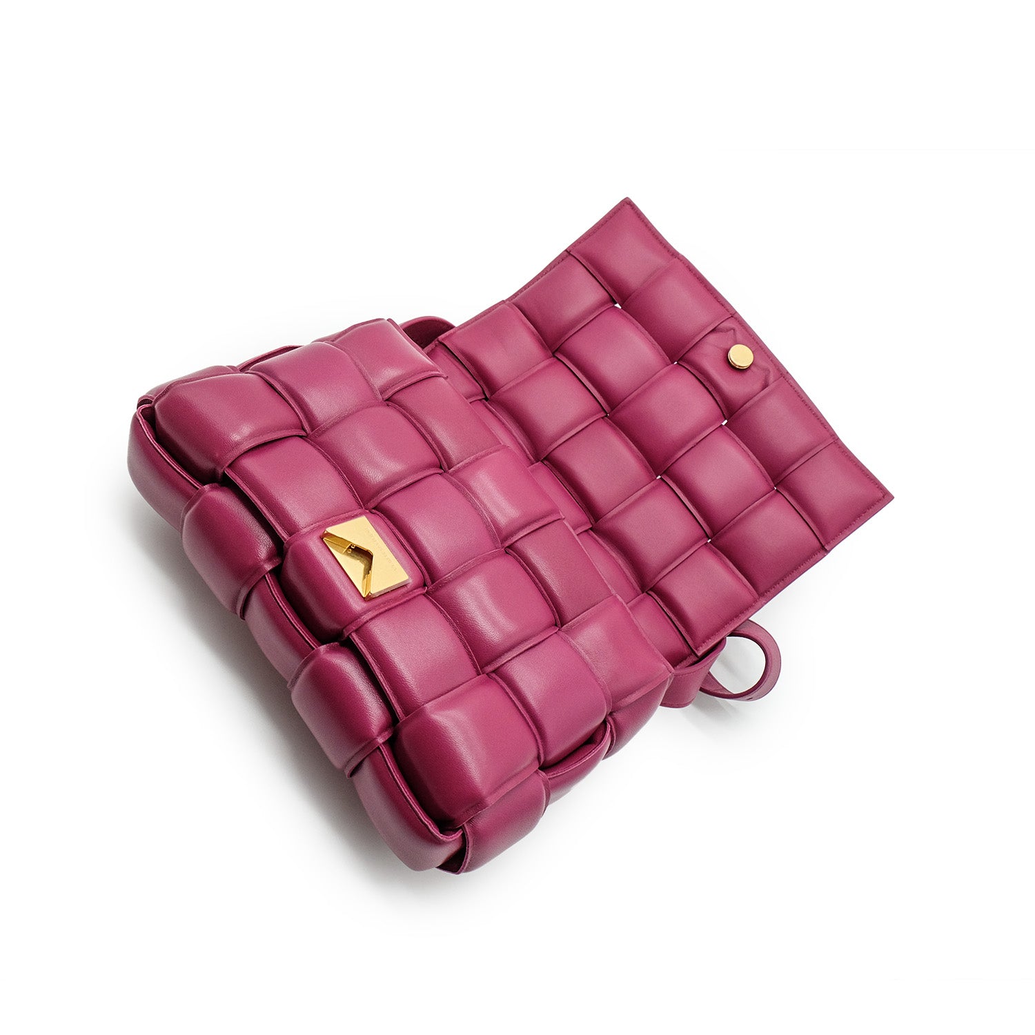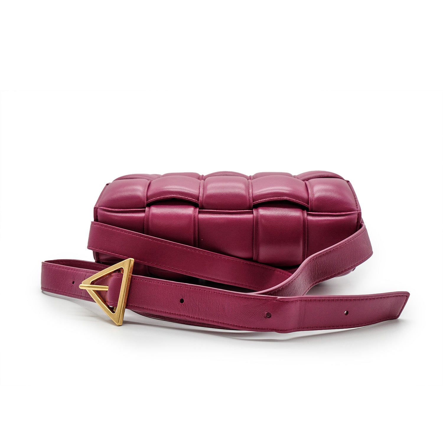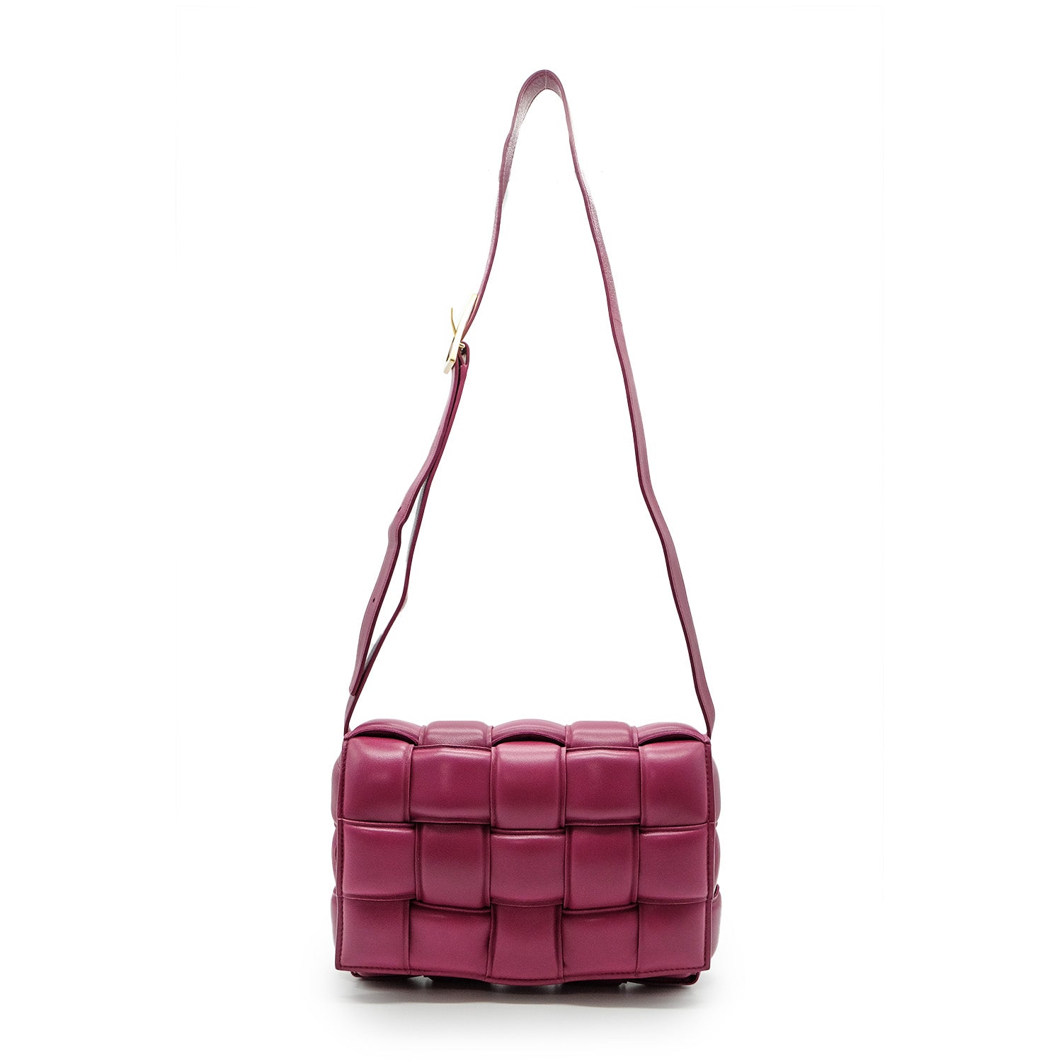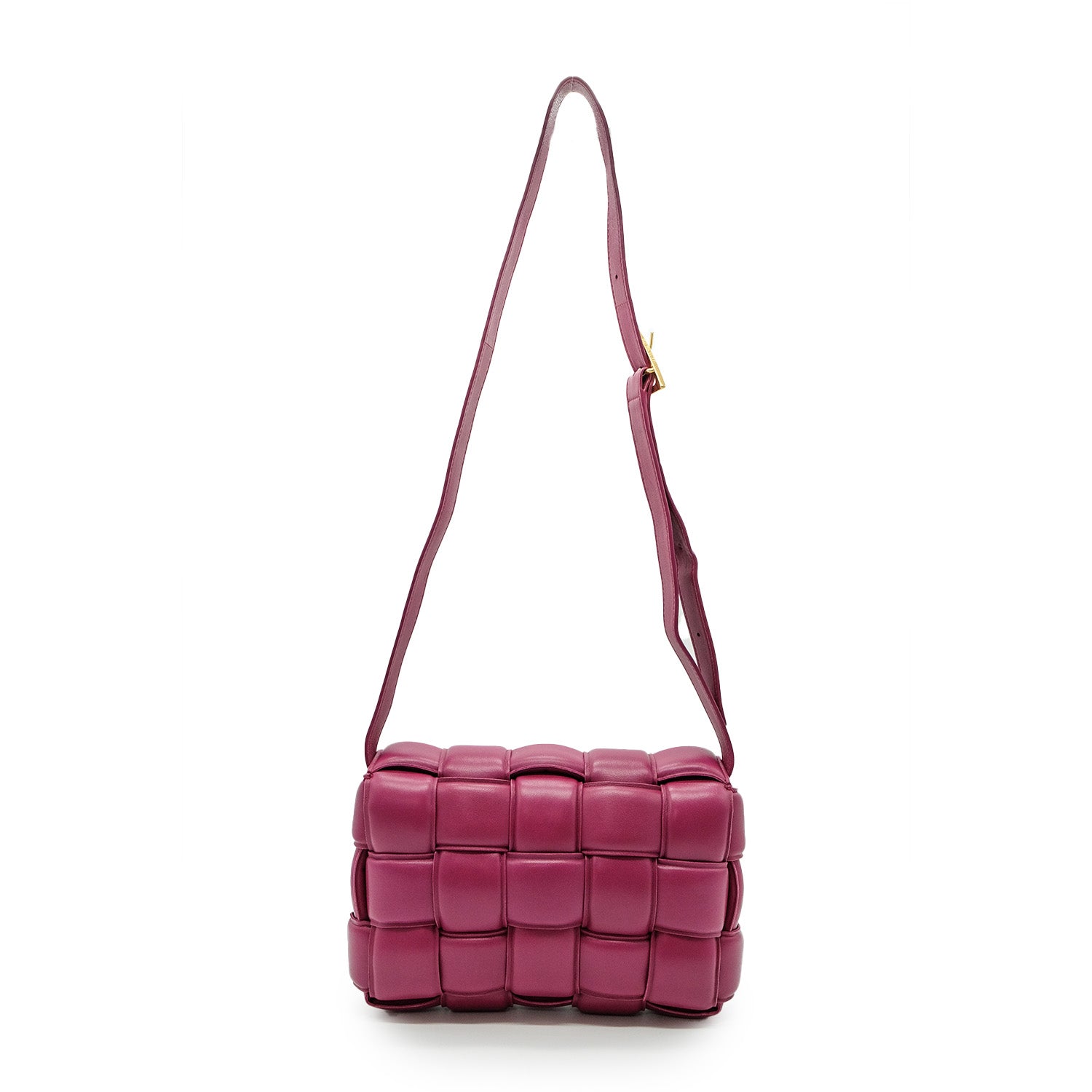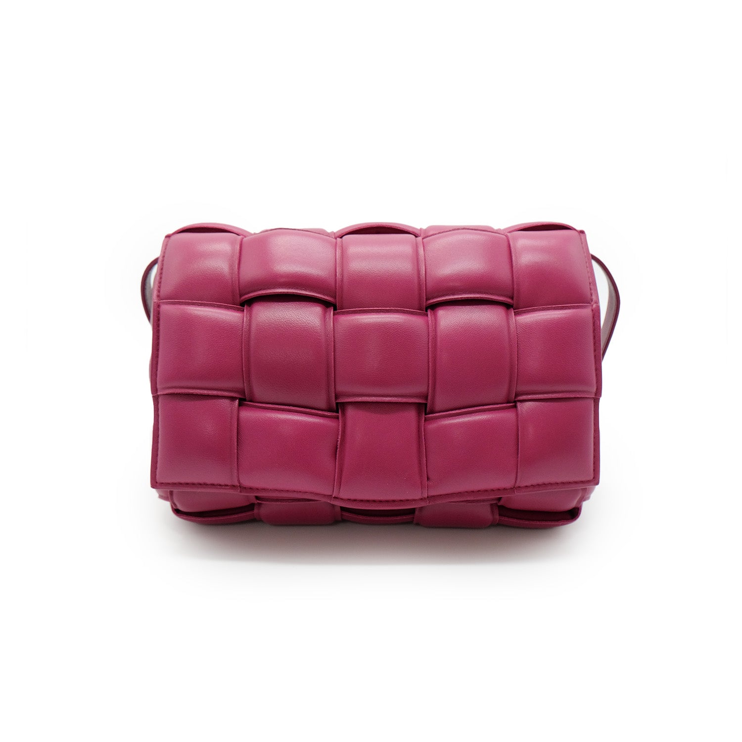 Padded Cassette Shoulder Bag Fuchsia Leather
