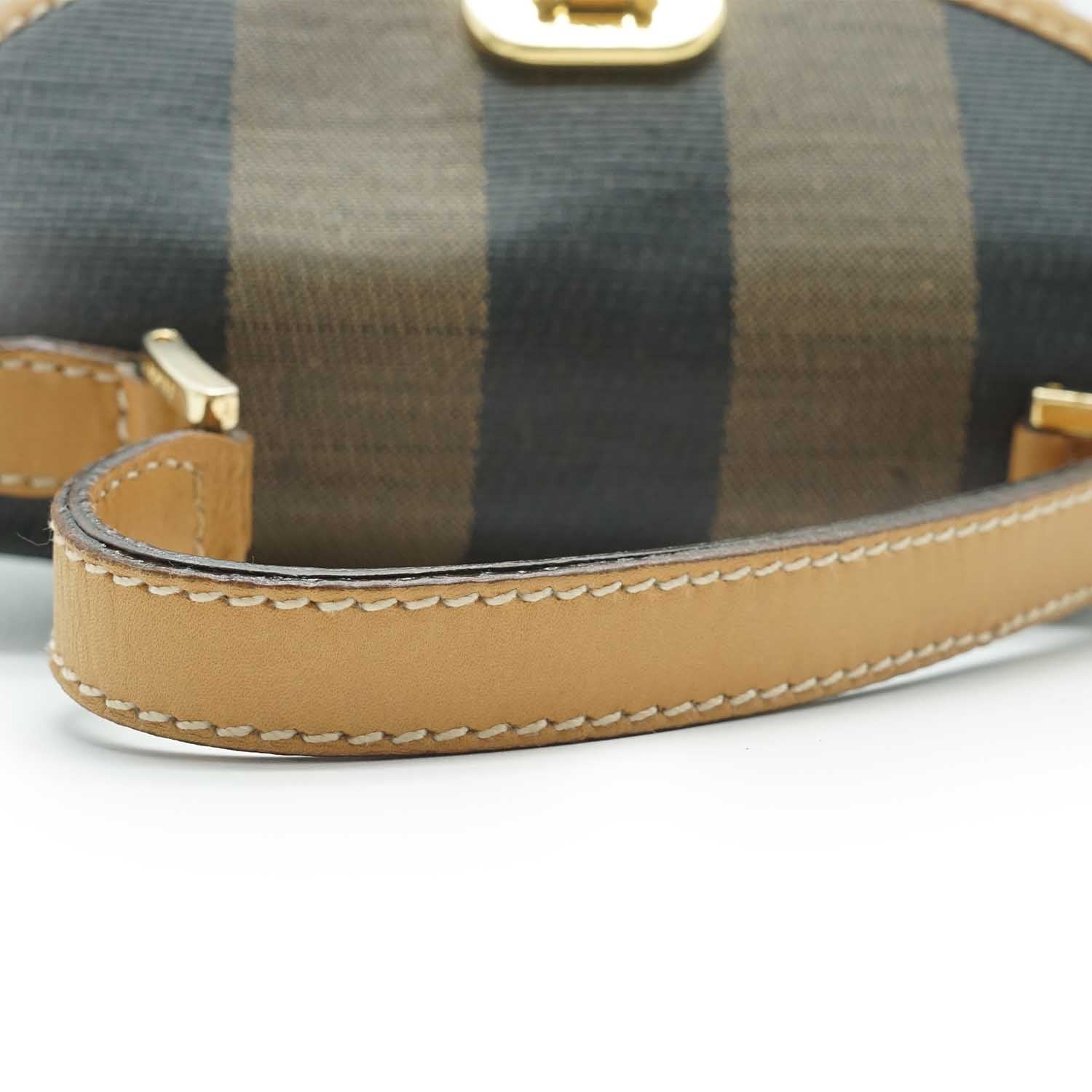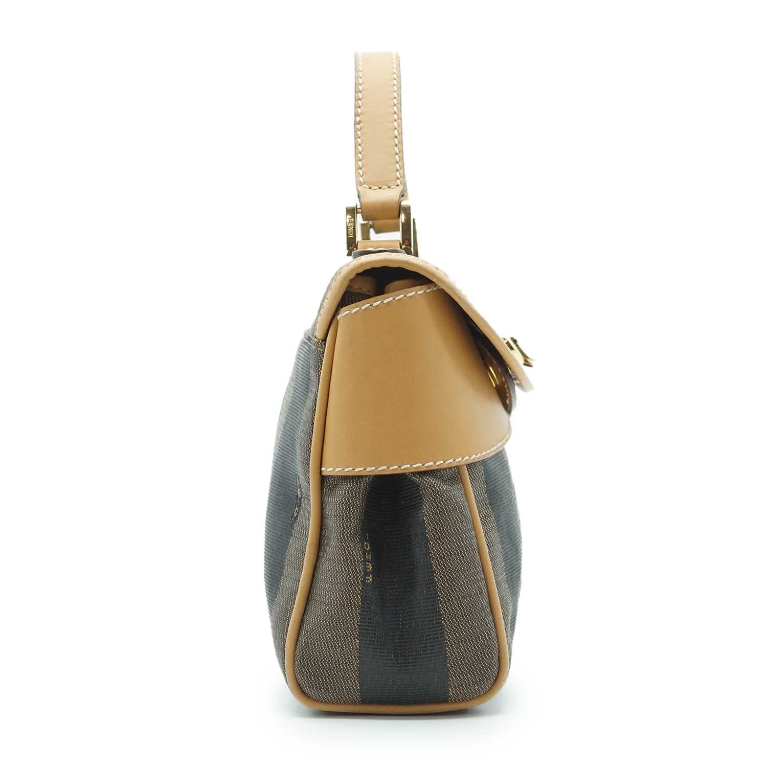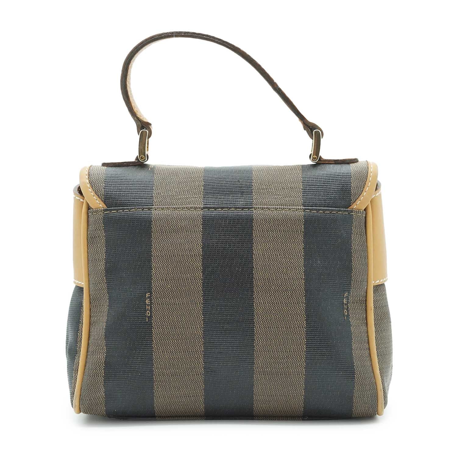 Pequin Mini Square Handbag Brown Canvas, Leather