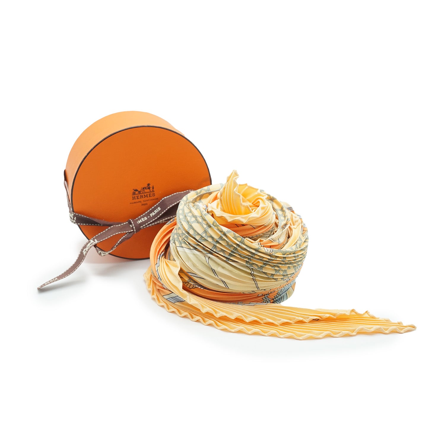 Silk Pleated Scarf 140 Les Voitures A Transformation by La Perriere Orange Silk