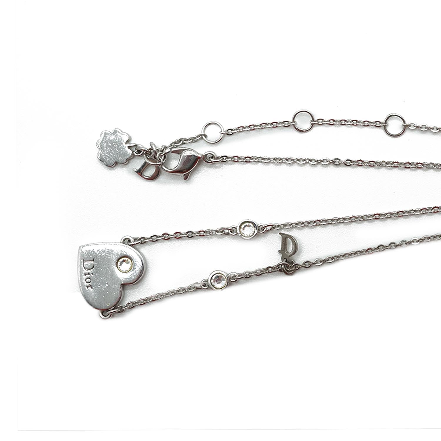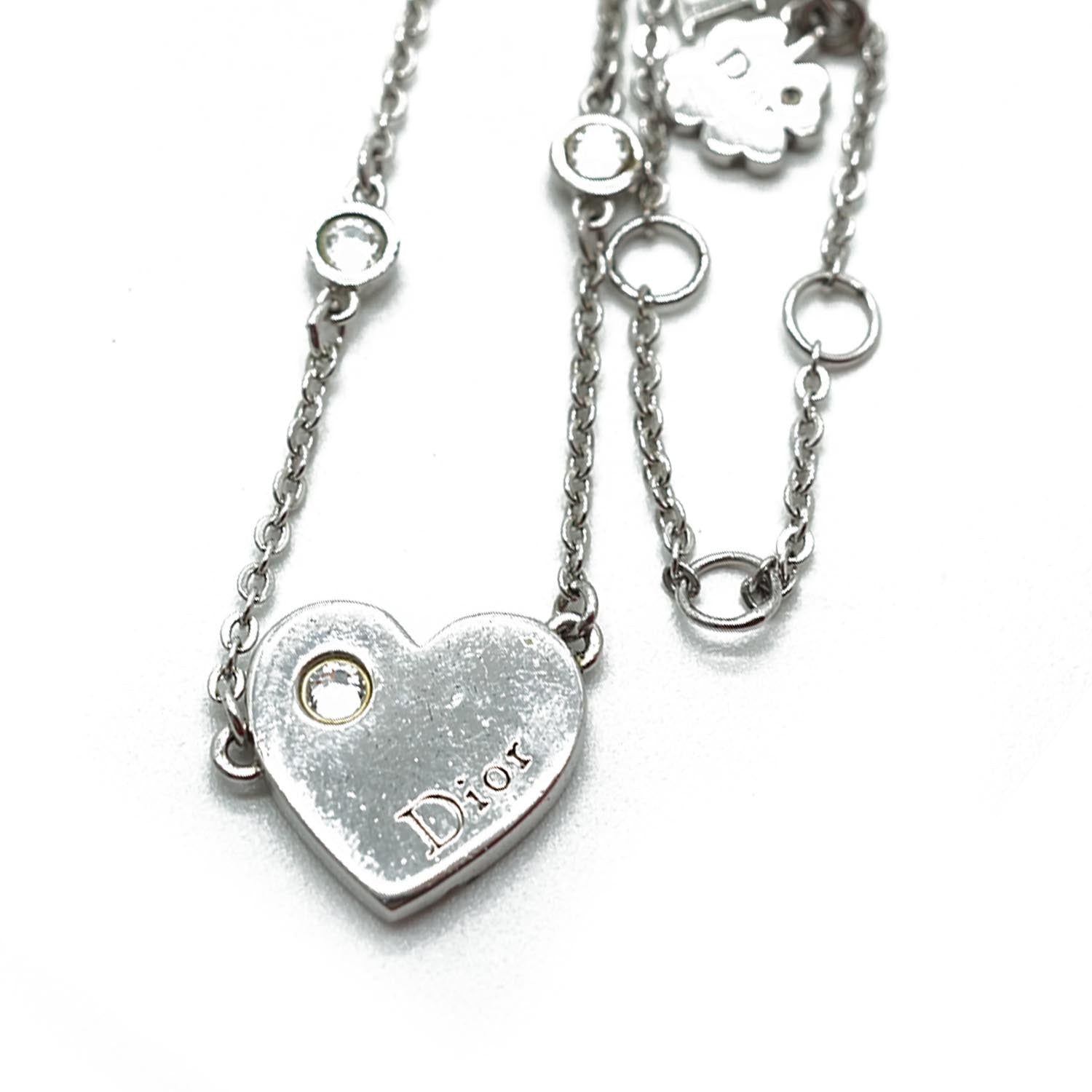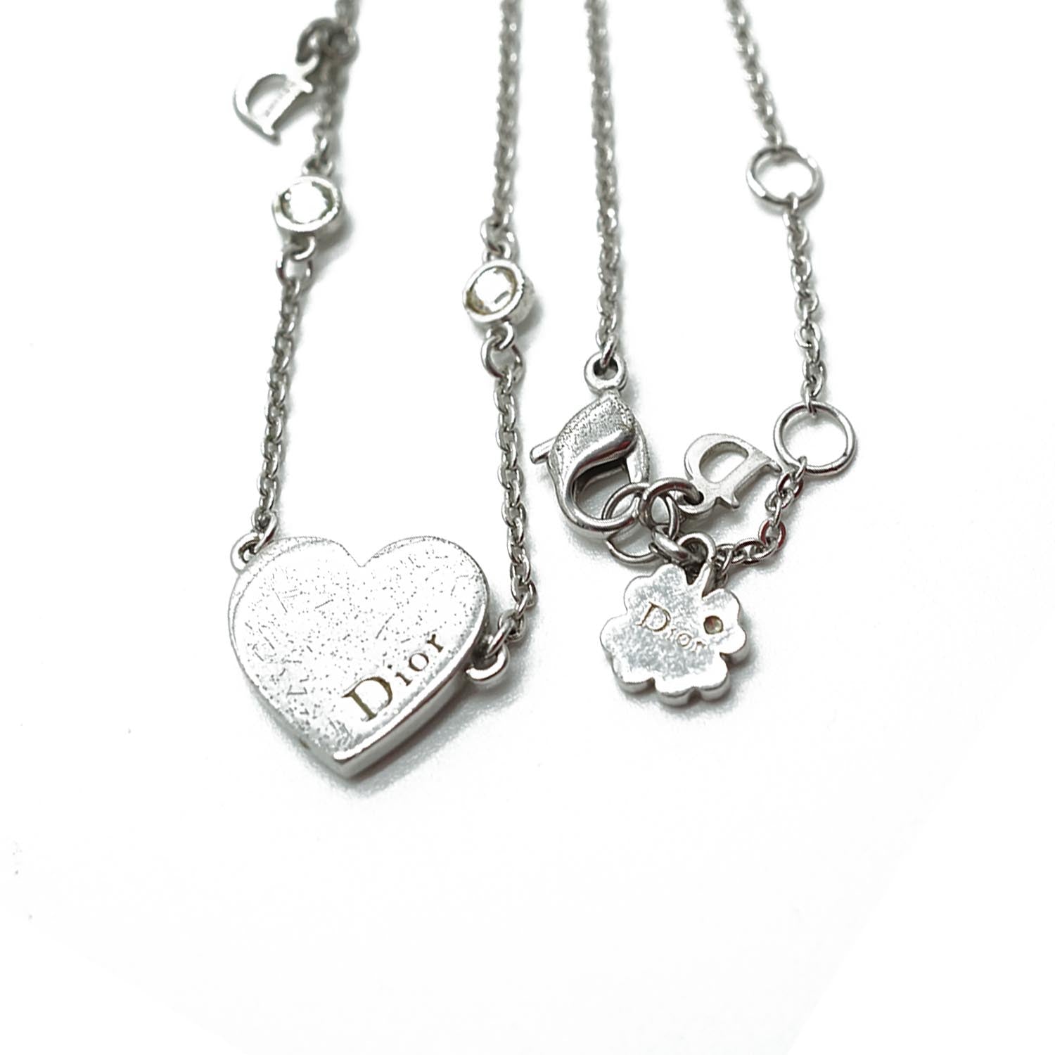 Silver Rhinestone Heart Pendant Necklace Silver Brass