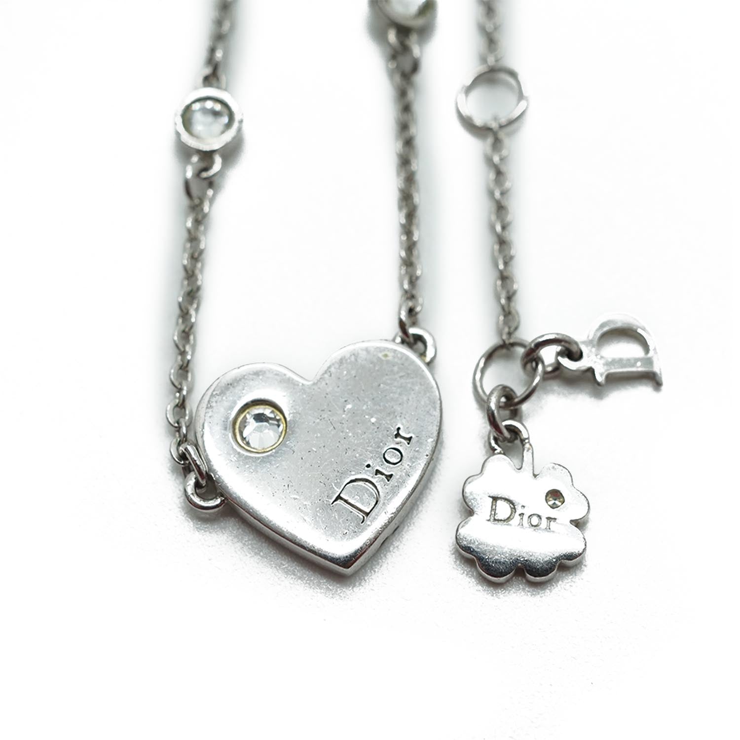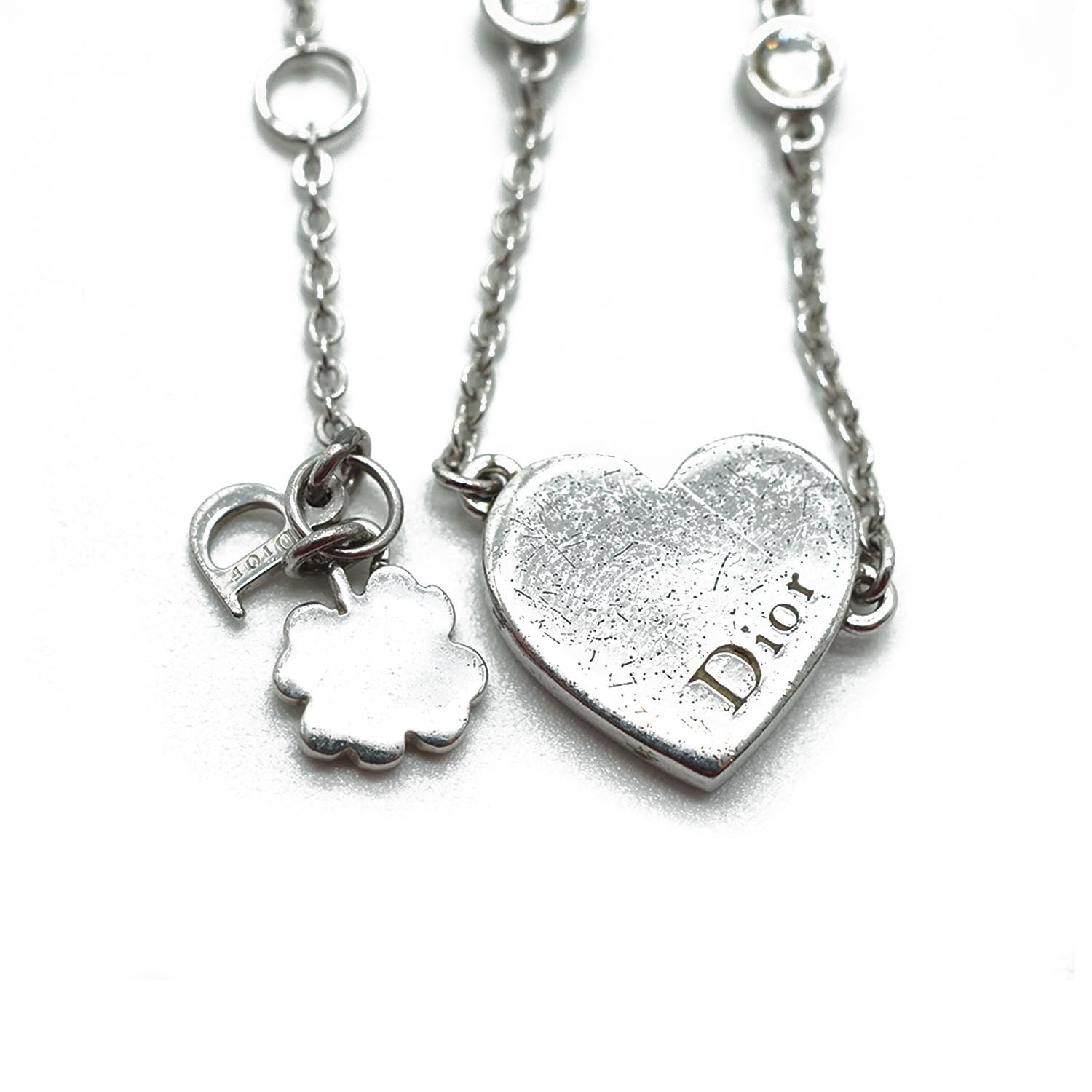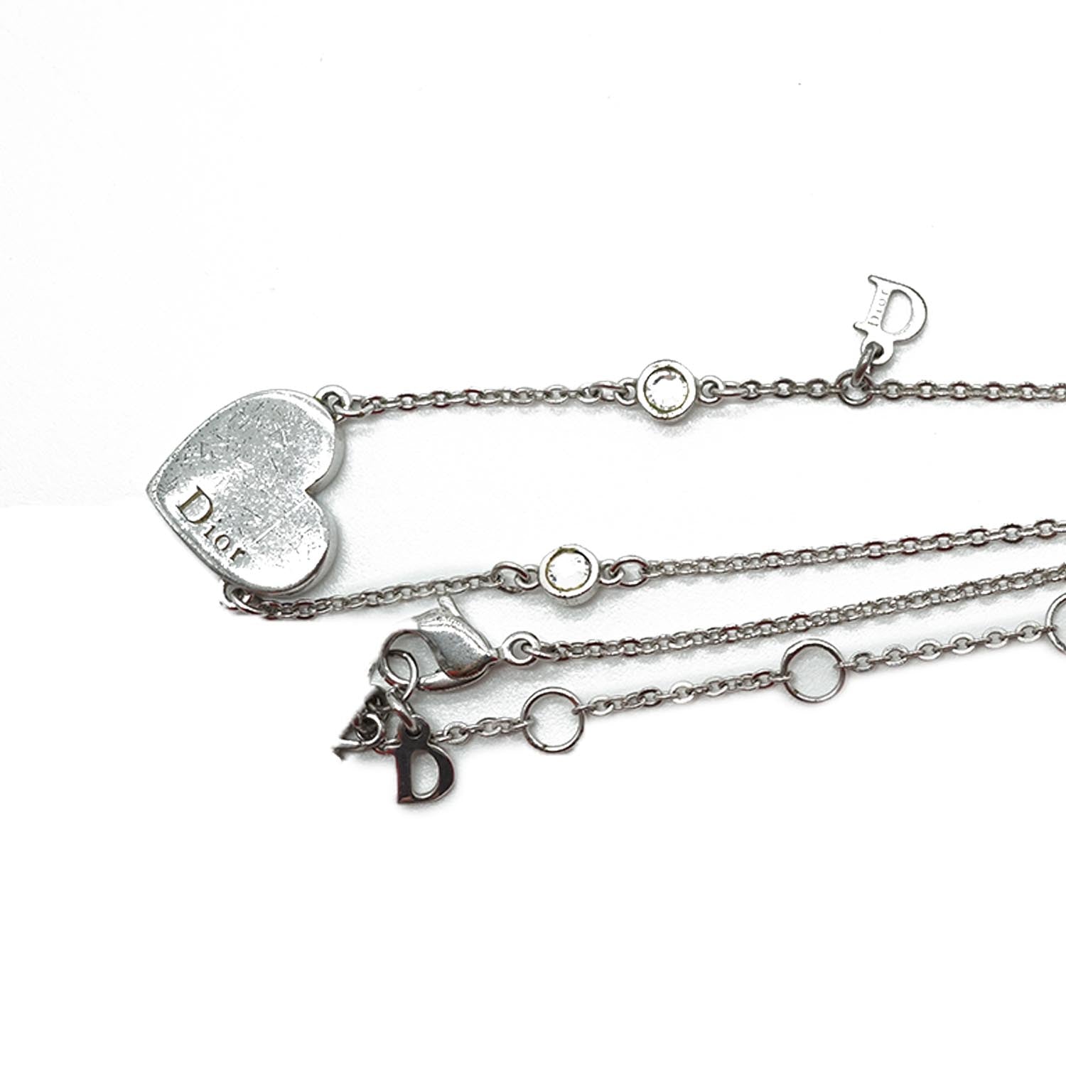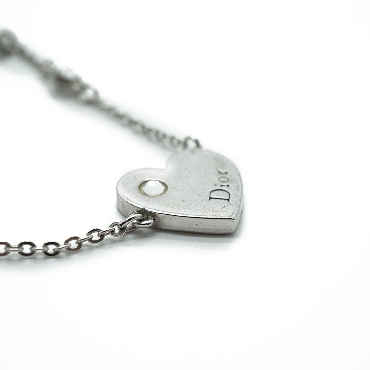 Silver Rhinestone Heart Pendant Necklace Silver Brass