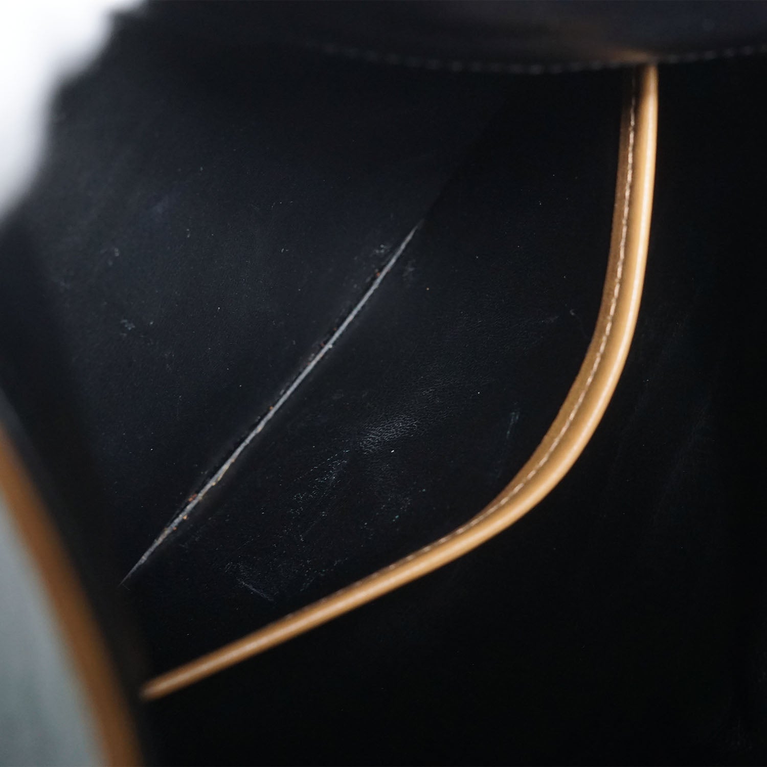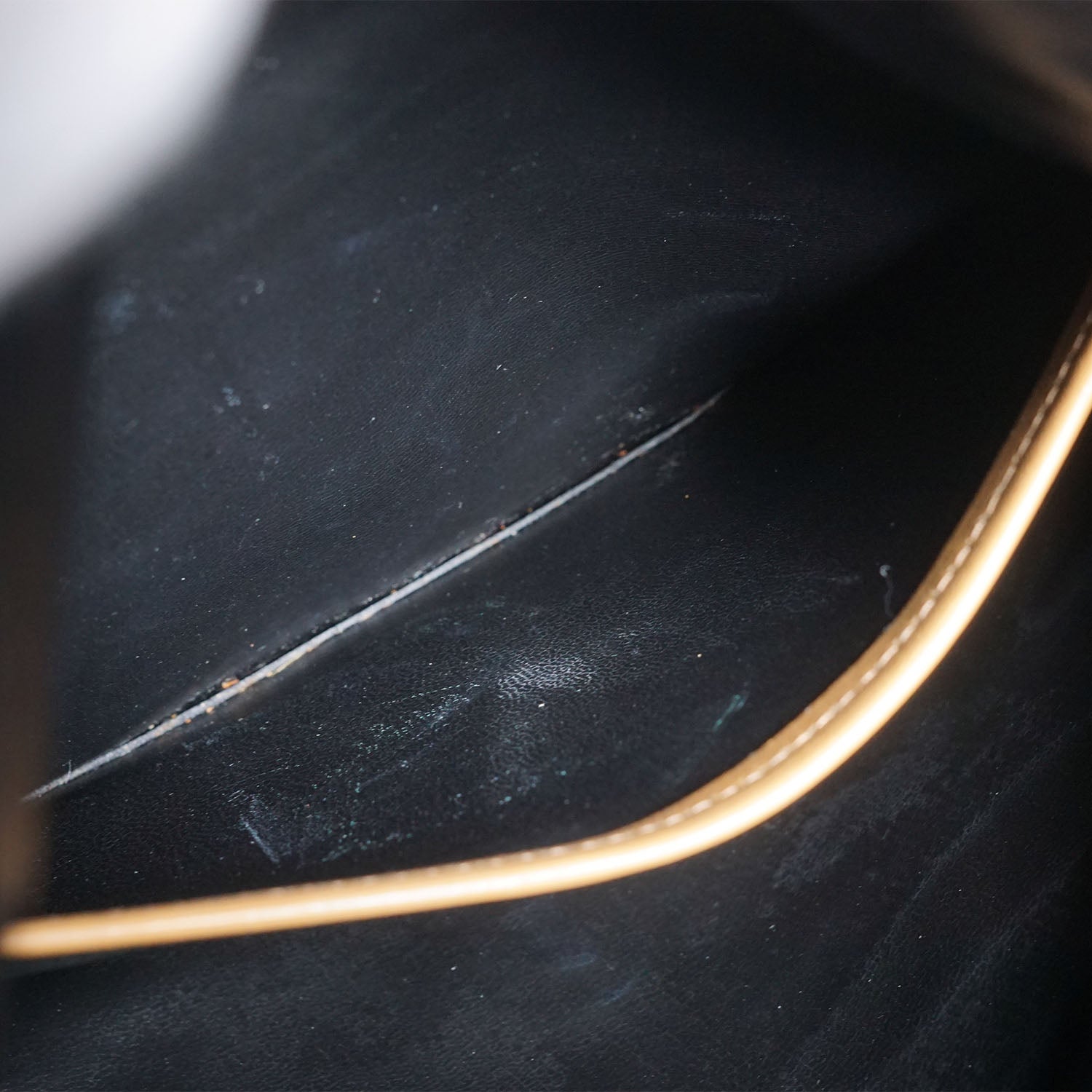 Stain: Some white spots on the front and throughout the inside, some stains on the brown leather parts (inside)